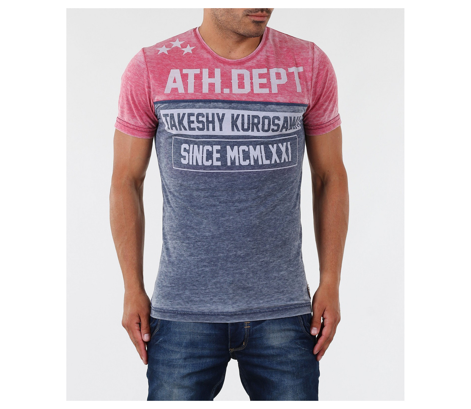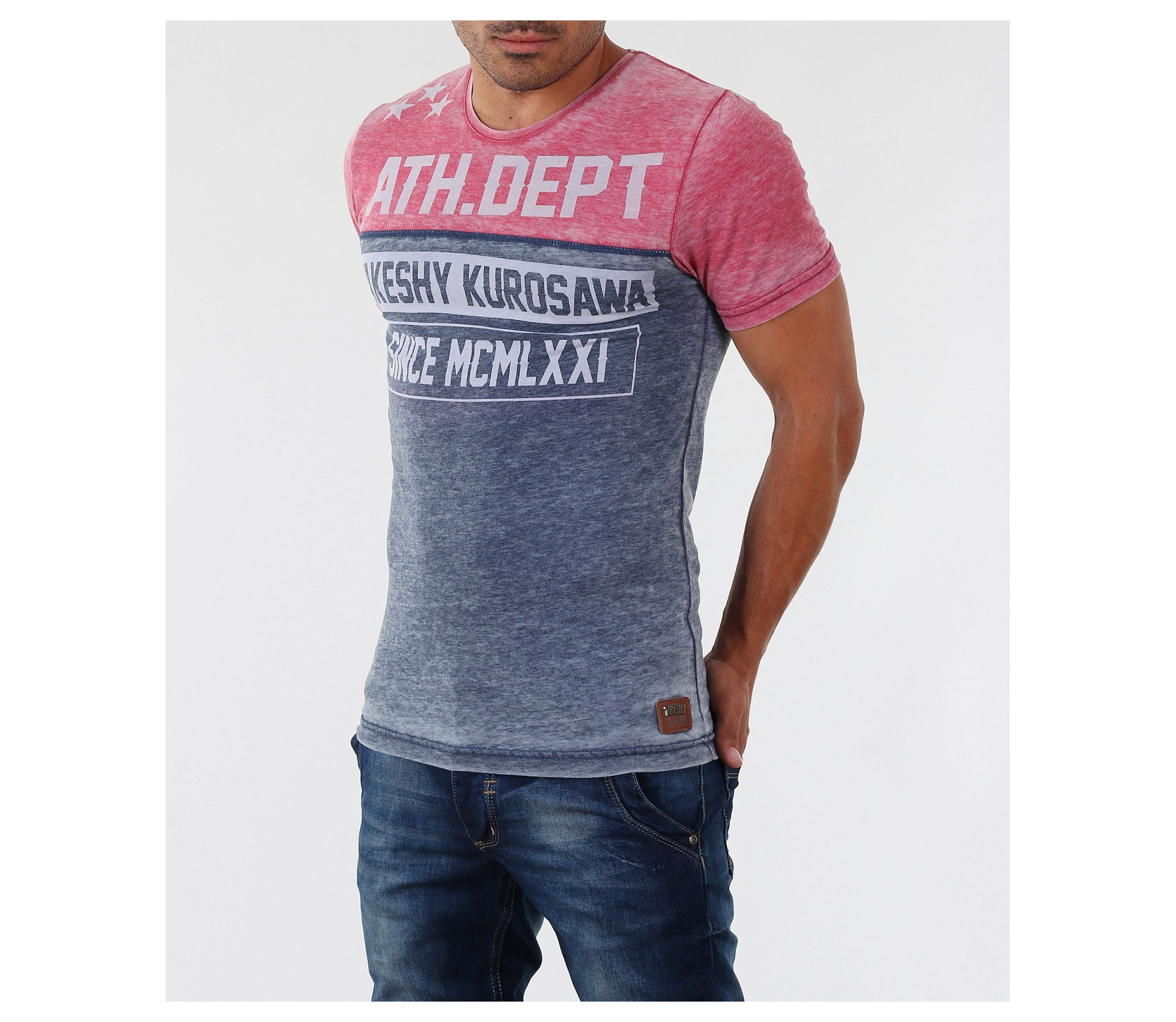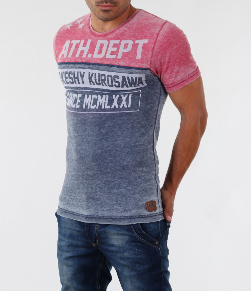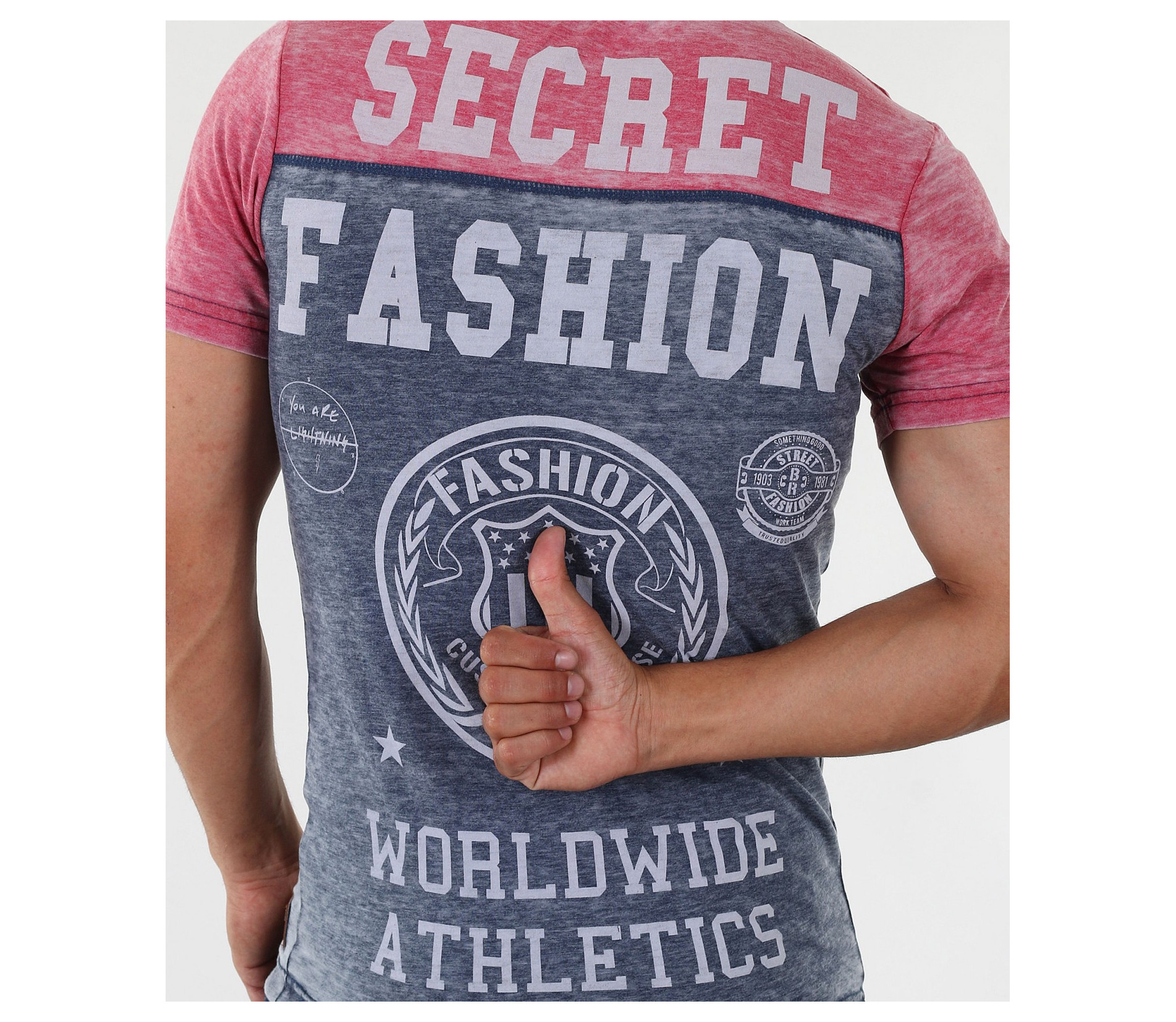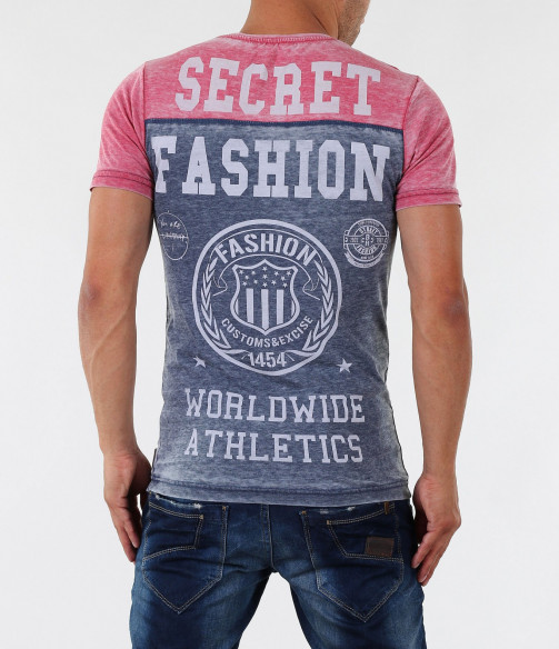 Описание на продукта: Това е едно различно и модерно предложение за Вас, мъже. Стилна тишъртка, съчетаваща два актуални цвята за сезона: сив и розов. Перфектна комбинация от цветове декорирана с бели надписи както в предната, така и в задната част. Уникален модел с вталена кройка и овално деколте. Дължината на модела е стандартна. Целия десен на тишърта е с избелял ефект, който перфектно завършва визията на модела. В комбинация с дънки, спортни кецове и стилен колан, превръщате обикновеното ежедневно облекло в по-цветена и стилна визия.