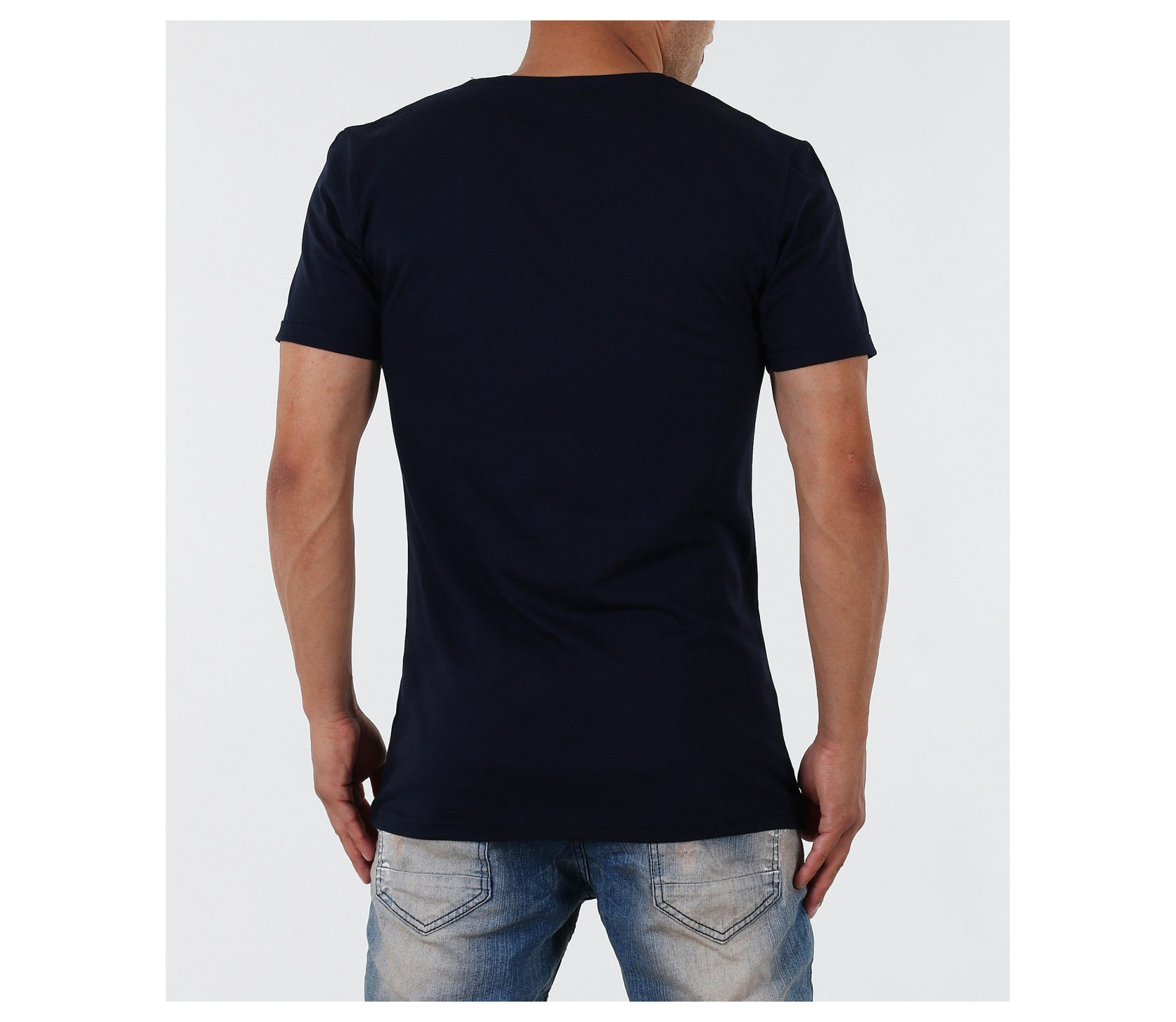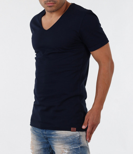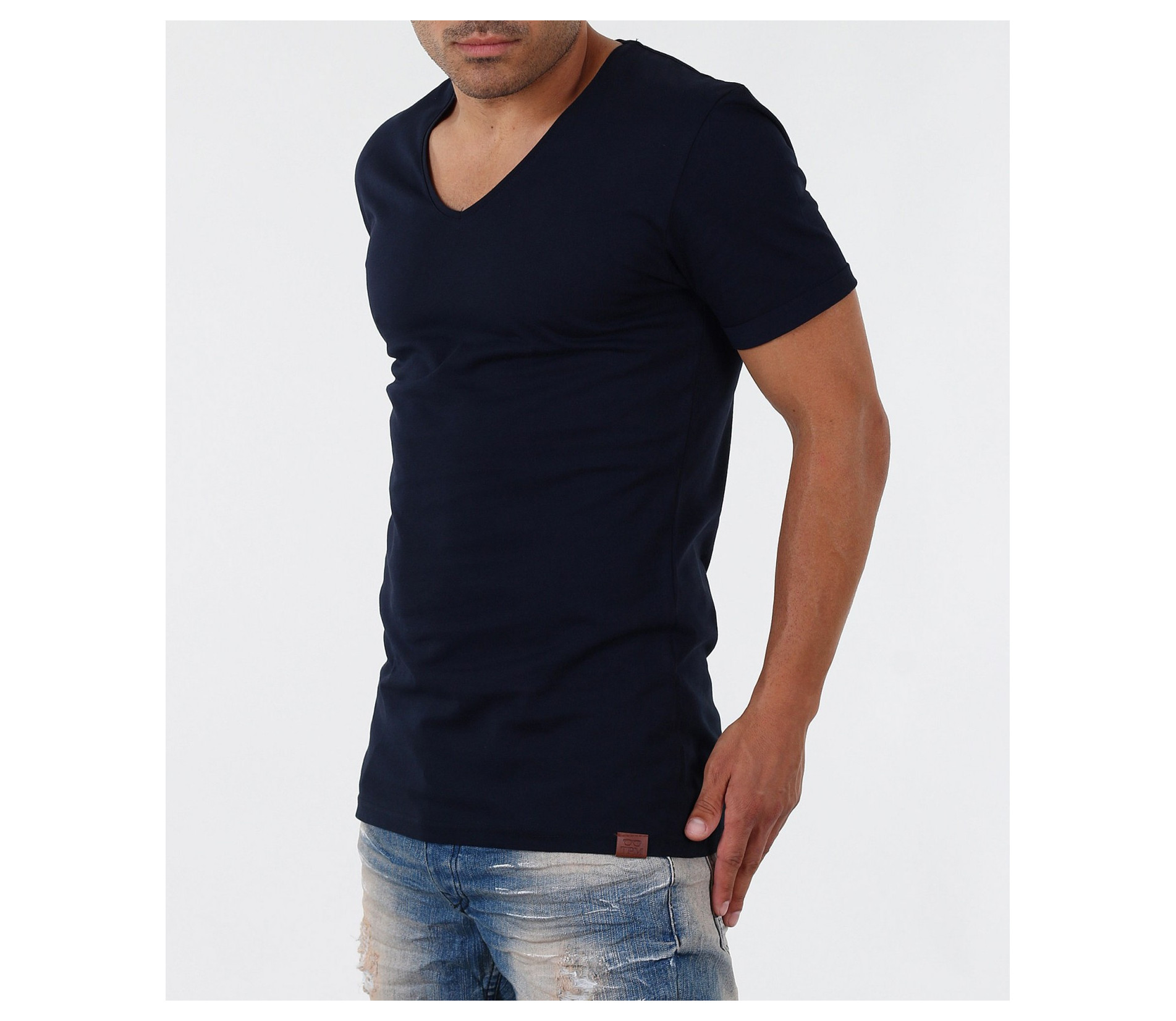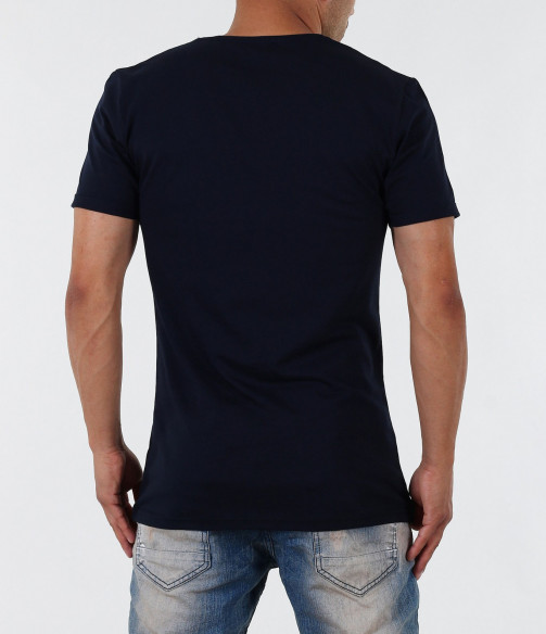Описание на продукта: Напълно изчистена мъжка тениска в тъмно син цвят. Този модел тениска е задължителна част към всеки мъжки гардероб. Перфектно се съчетава с къси и дълги дънки, с цветни панталони и спортни обувки. Кройката е вталена, а деколтето е с V-образна форма, което придава елегантност и стил. Ако обичате комфортна, а същевременно с това сте почитател на семплата и елегантна визия, тази тениска е точно за вас.