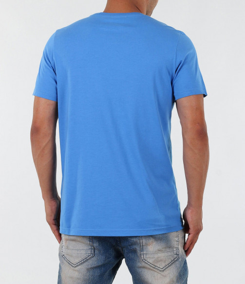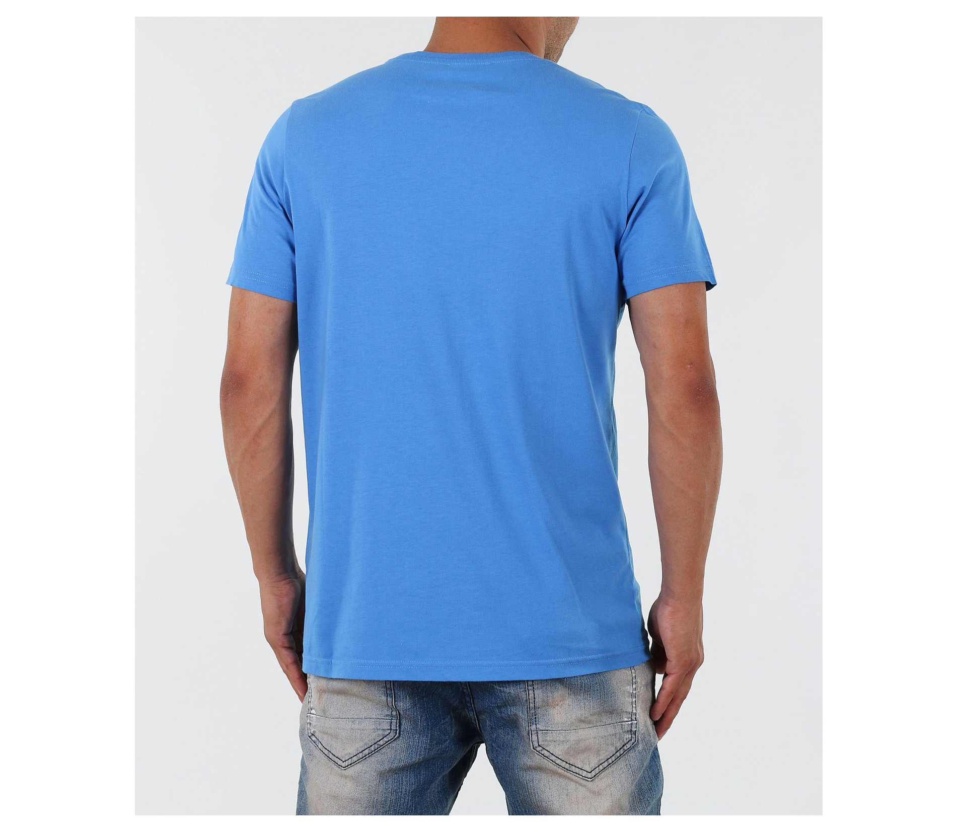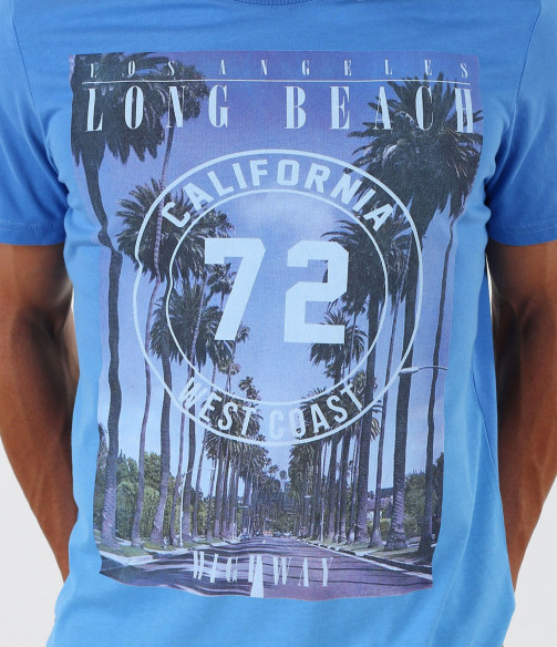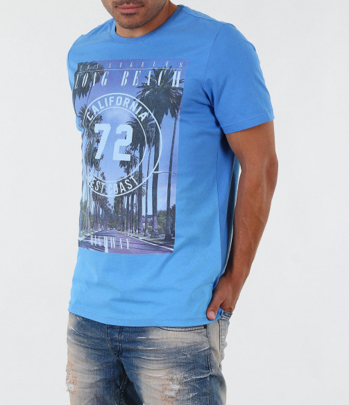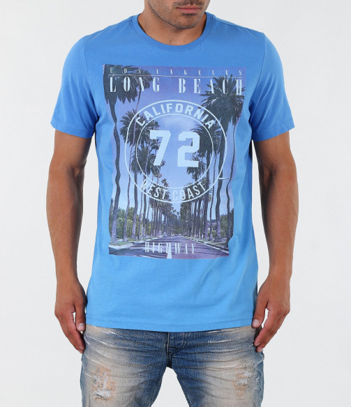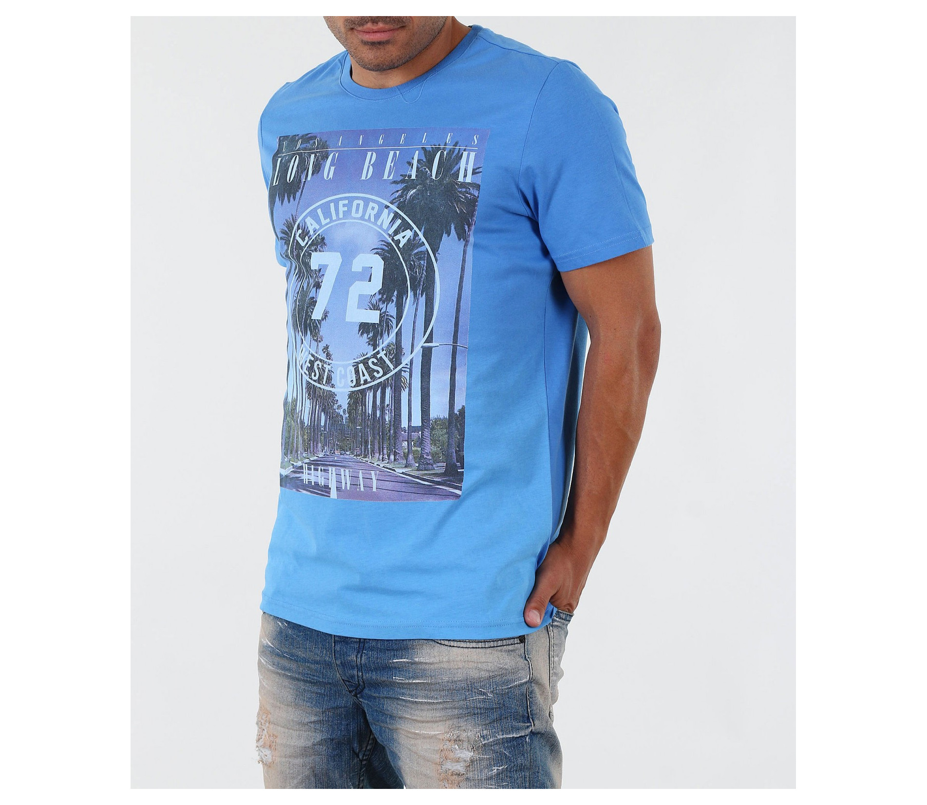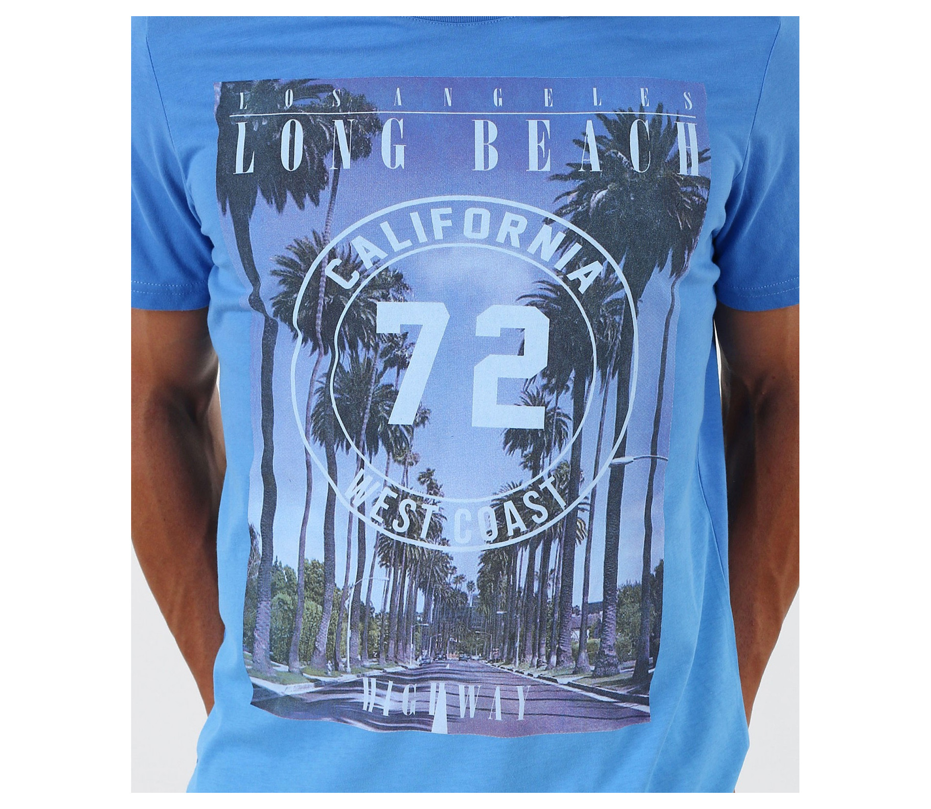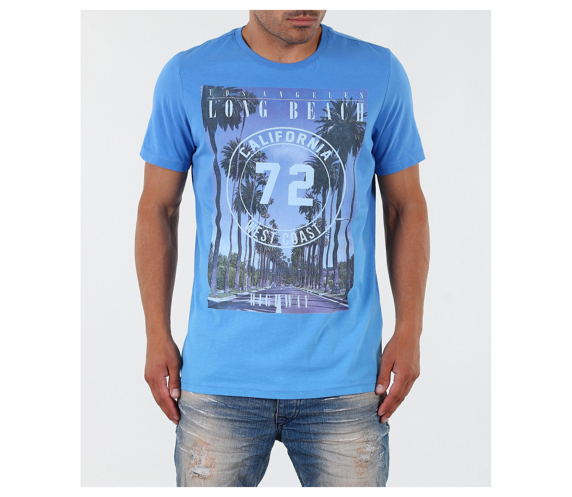 Описание на продукта: Свежа мъжка тениска с интересна апликация. В предната част е поставена свежа лятна щампа декорирана с бели надписи. Гърбът на модела е напълно изчистен, с което акцента пада върху лицето на модела. Изключително лека материя с вталена кройка и овално деколте. Дължината на тишърта е стандартна. В кобинация с къси или дълги дънки, чифт актуални кецове и небрежен аксесоар, получавате идеалната визия към която се стремите.