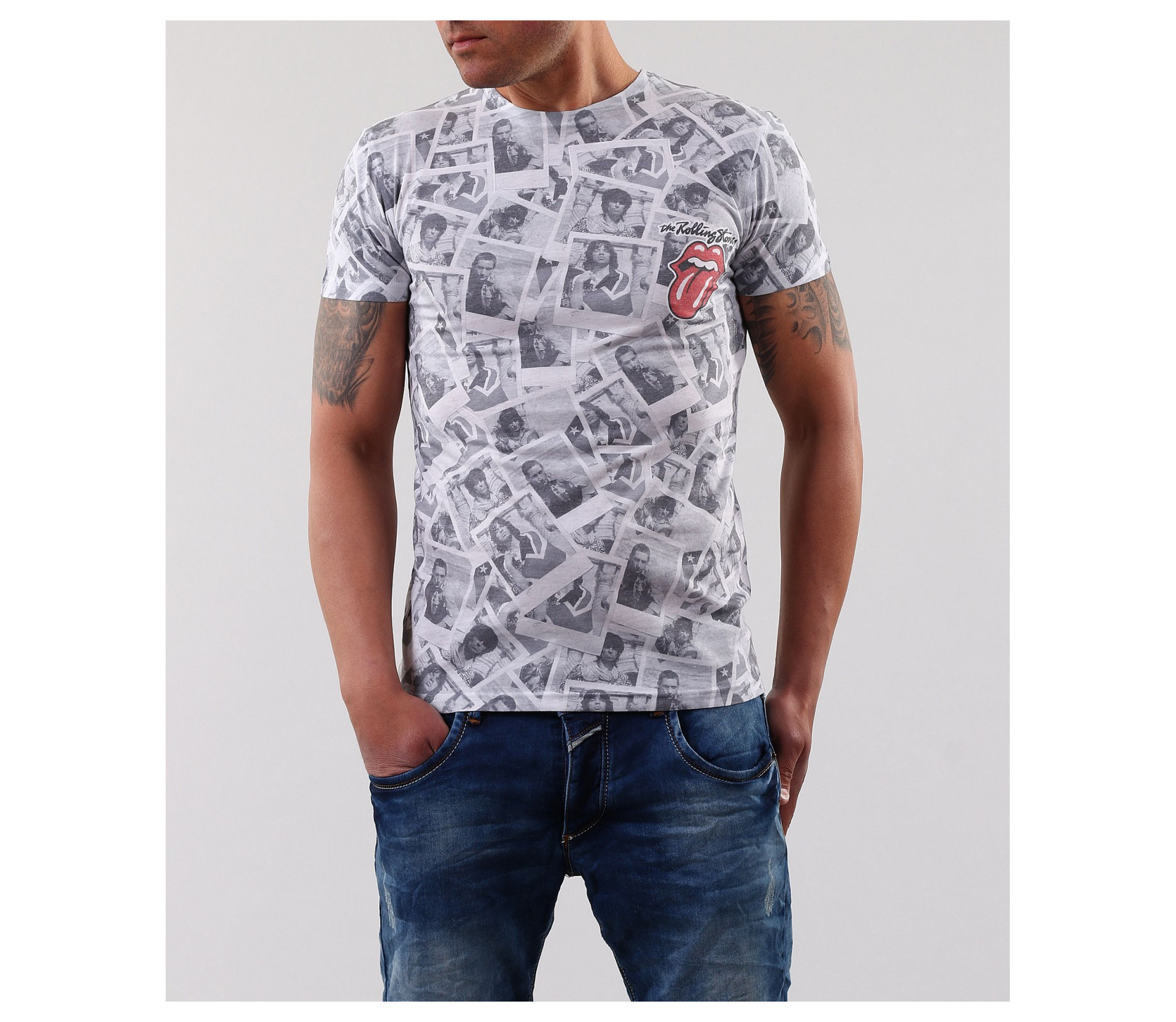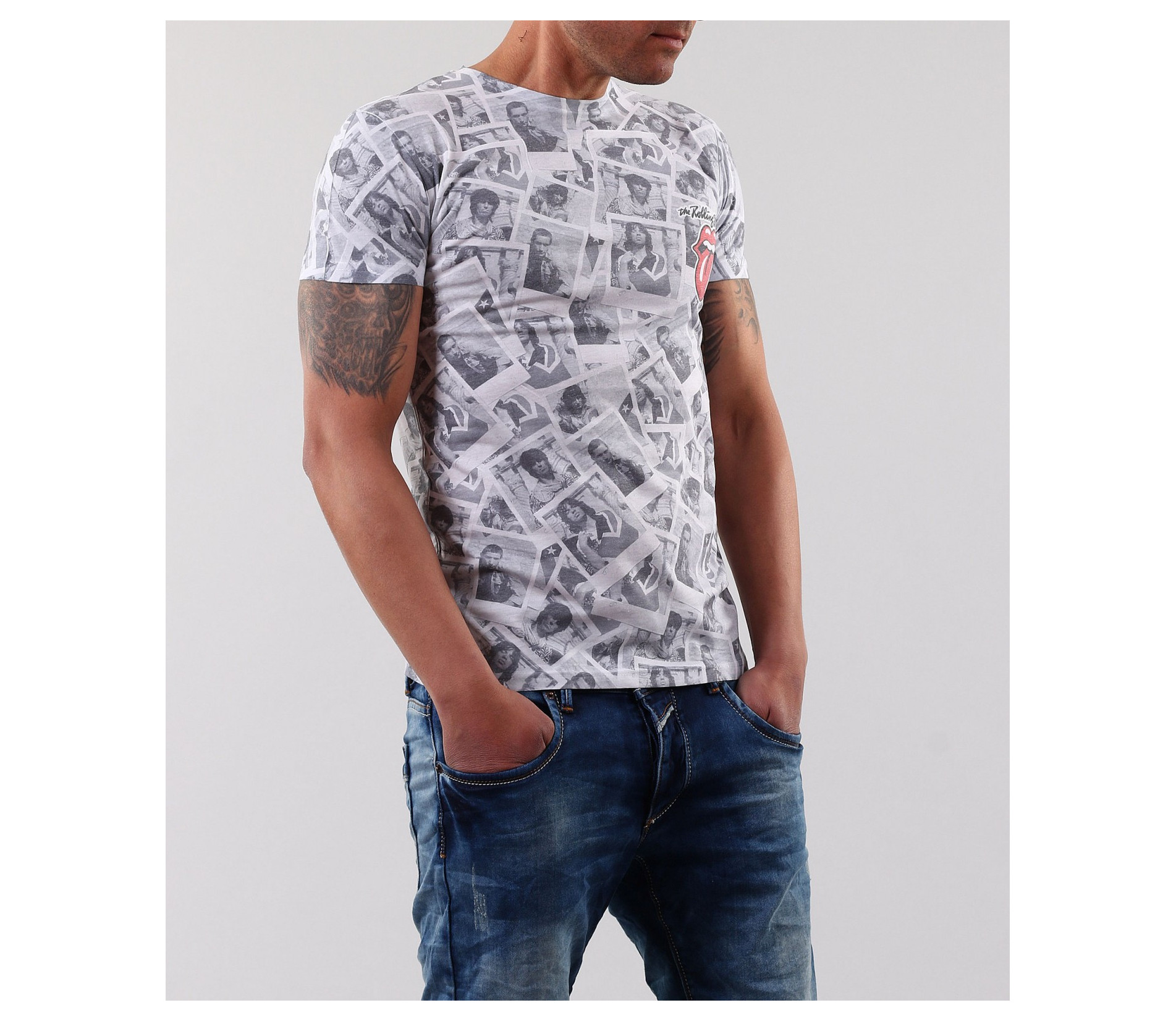 Описание на продукта: Ето едно по-различно предложение от нас. Супер актуална черно-бяла тениска с интересен принт. По цялата дължина на модела хаотично са поставени ретро снимки. Като акцент на тениска се пада малка щампа в лявата част на гърдите. Над него има лек ненатрапчив надпис The Rolling Stones. Много различен модел, който ясно се откроява от масовото. Съчетана със спортни дънки, червени обувки или аксесоар, този тишърт се превръща в любимото Ви допълнение за сезон 2015г. Освен супер визия, тази тениска Ви осигурява комфорта който търсите, заради изработката си от висококачествени материали: 70%полиестер, 30%памук.