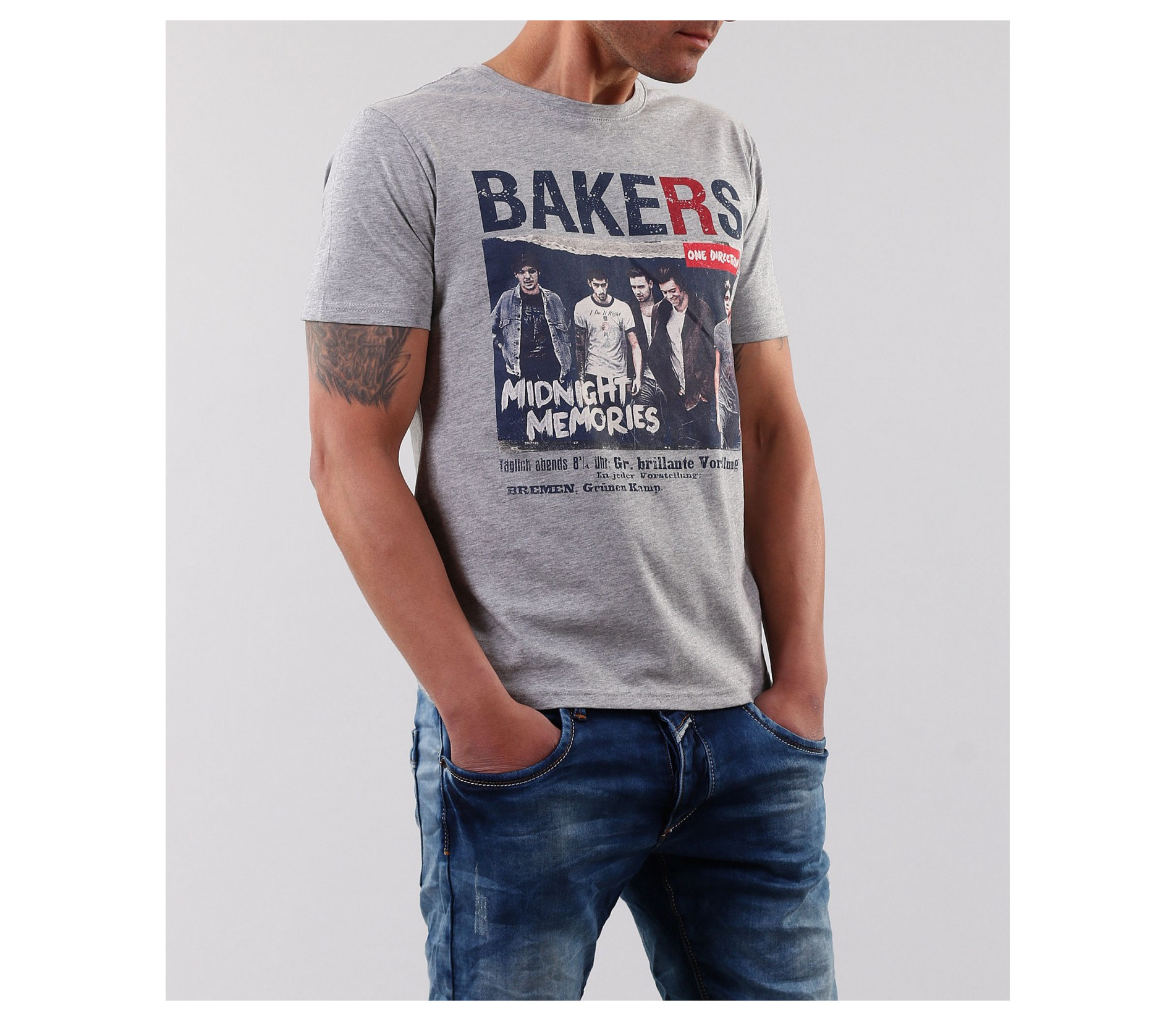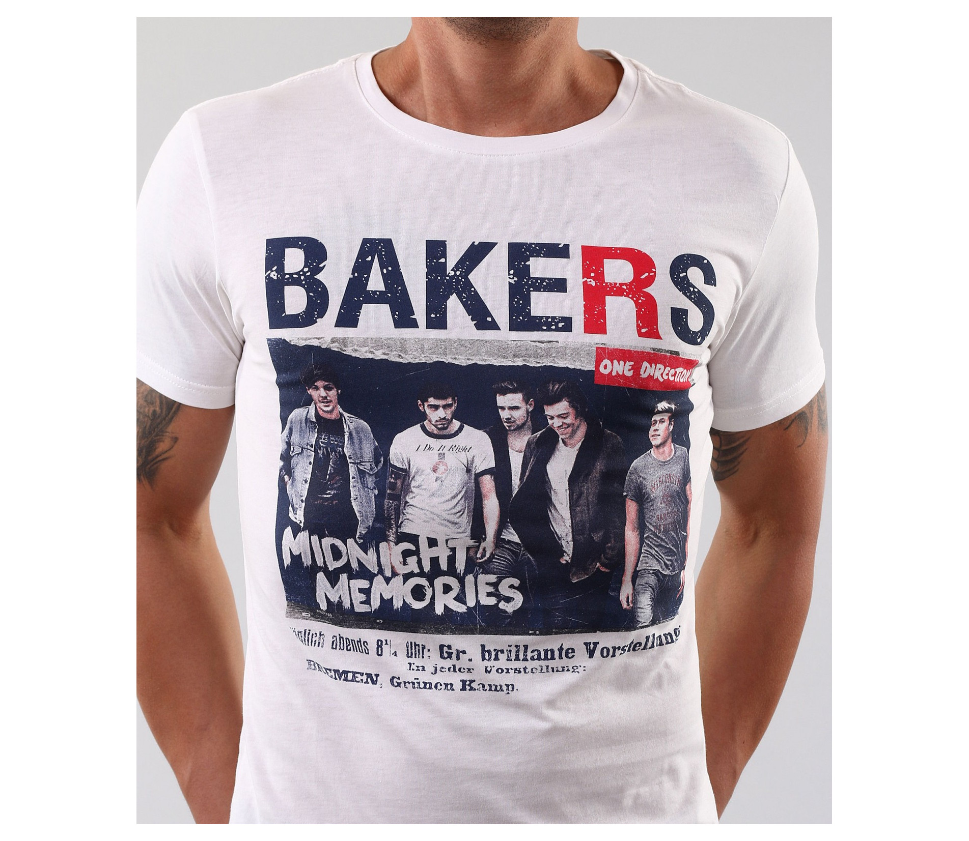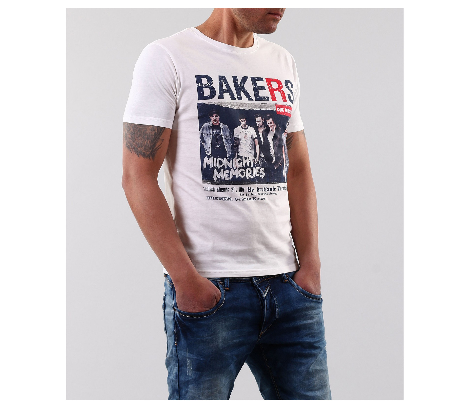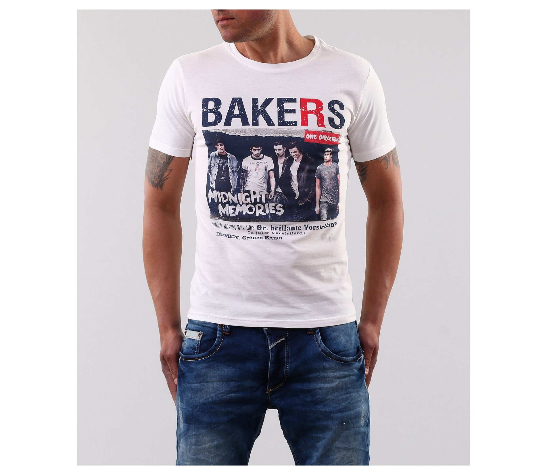 Описание на продукта: Това е един страхотен модел мъжка тениска, която не е излишна в никой гардероб. Подходяща е както за тези от Вас, които са почитатели на по-спортния стил на обличане, така и на тези които предпочитат по елегантния. В областта на гърдите е поставена цветна щампа, на която е изобразена boy банда. Около апликацията са поставени ненатрапчиви надписи, които завършват визията на тениската. Кройката на модела е вталена, деколтето е овално, а дължината е стандартна. Освен страхотна визия, тази тениска Ви дава и комфорт, заради изработката си от 100% памук. С това гарантираме 100% качествто на продукта!