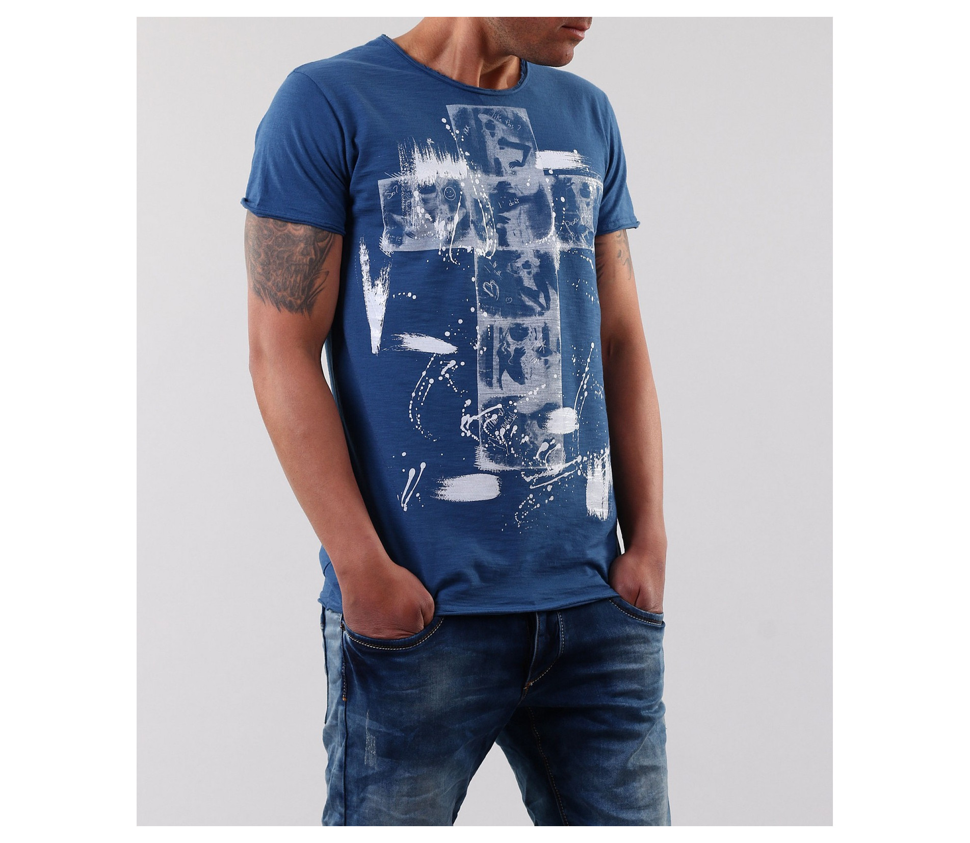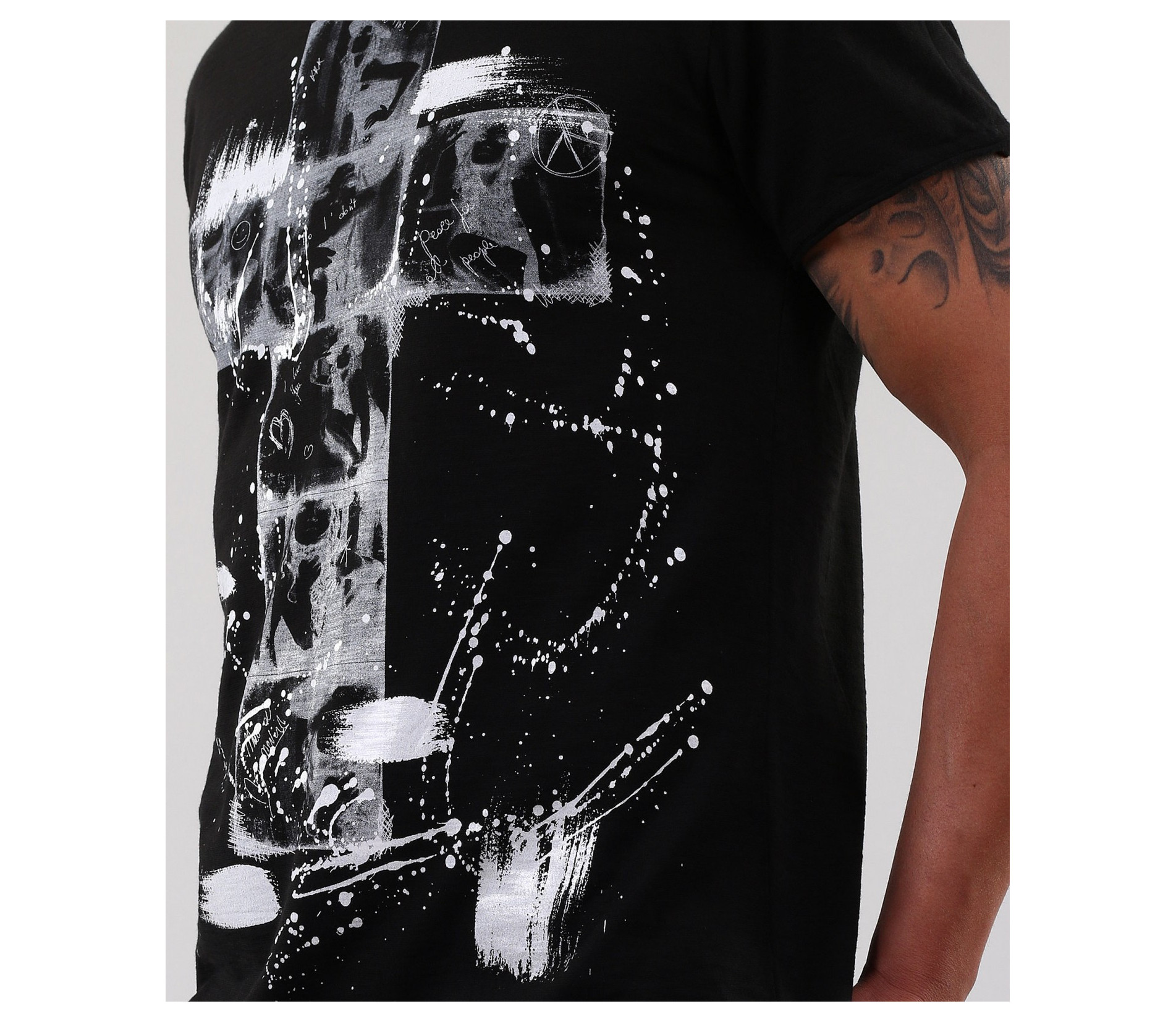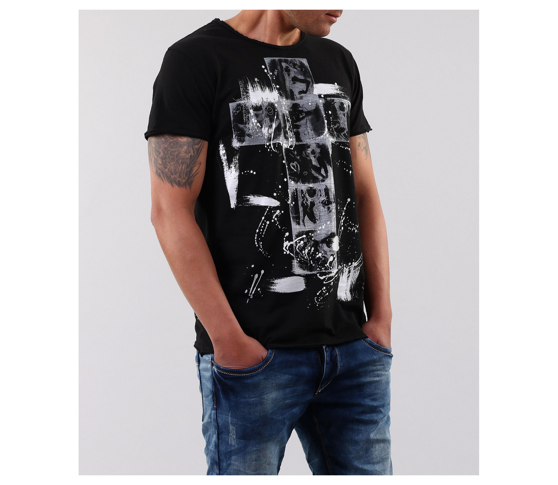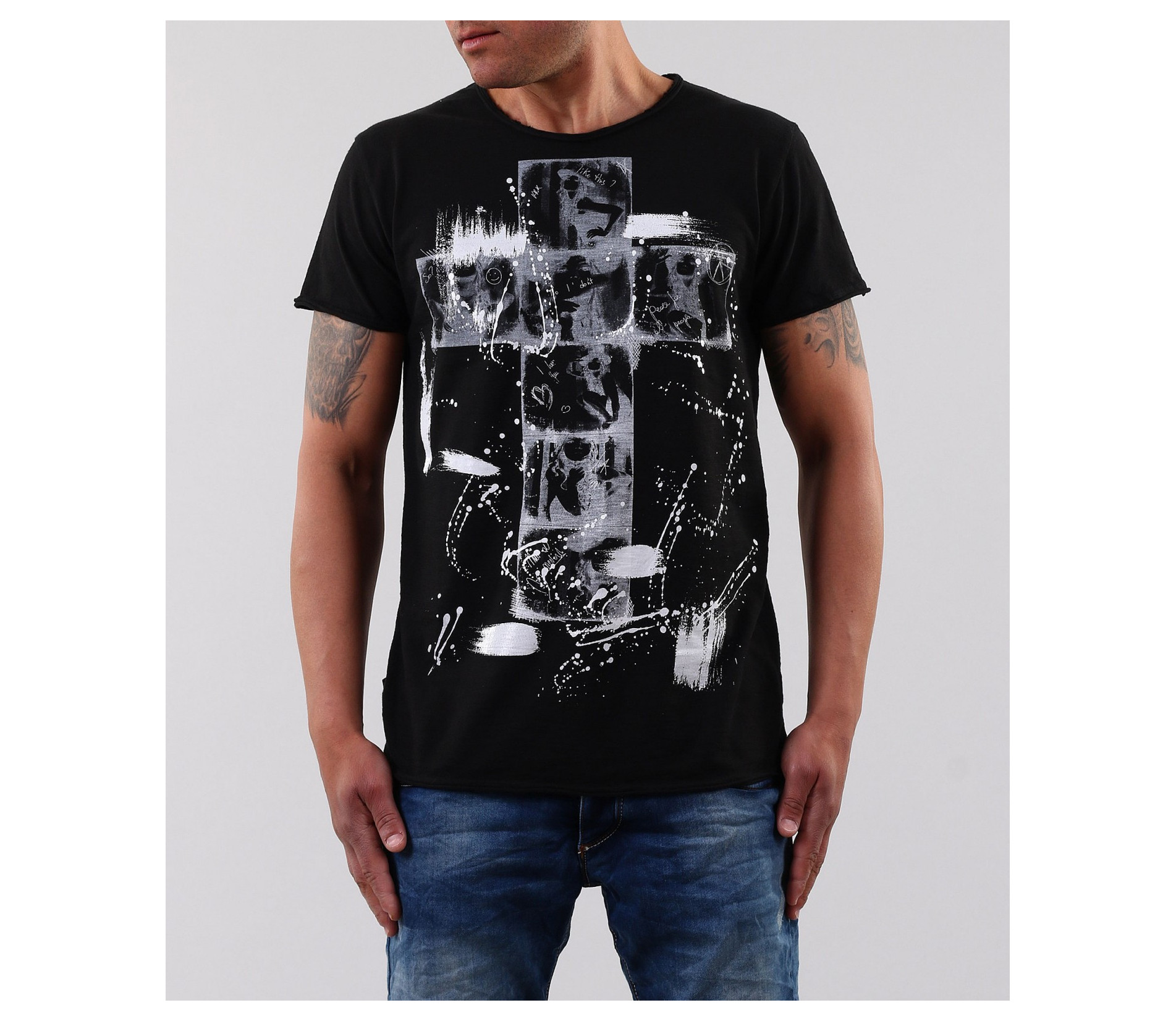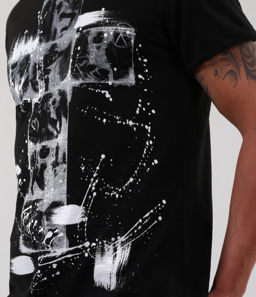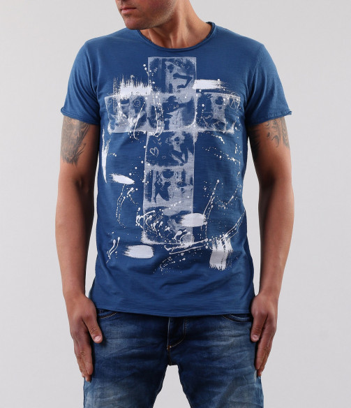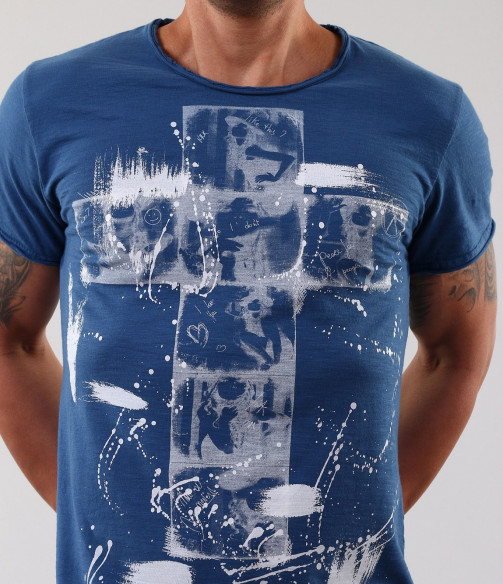 Описание на продукта: Страхотно ново предложение за пролет/лято 2015г. Мъжка тениска с апликация на кръст и небрежно поставени пръски около него. Гърбът на тениската е напълно изчистен, за да може акцента да пада върху предната част. Кройката на модела е леко вталена, а деколтето е овално. Също дребен акцент са и шевовете в долната част, ръкавите и деколтето. в съчетание със спортно-елеганти дънки, спортно сако и кецове, получавате уникалена куул визия, която няма как да остане незабелязана. Тази тениска Ви осигурява и комфорт, заради перфкетната си изработка от 100% висококачествен памук.