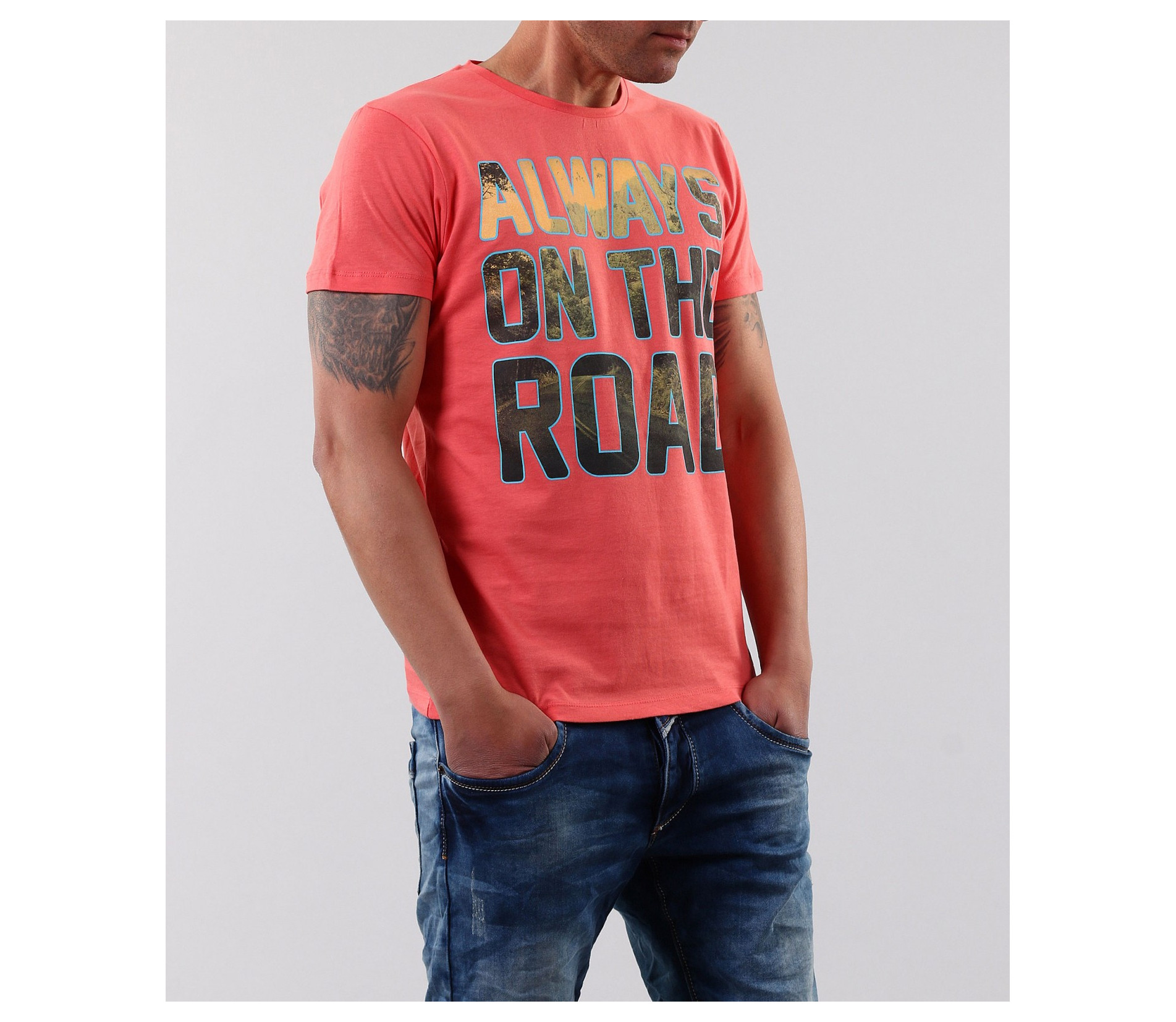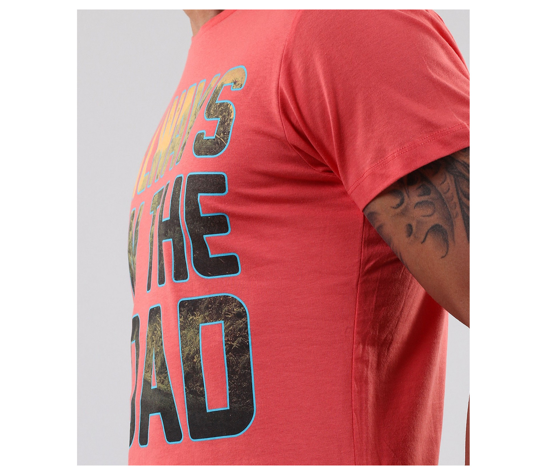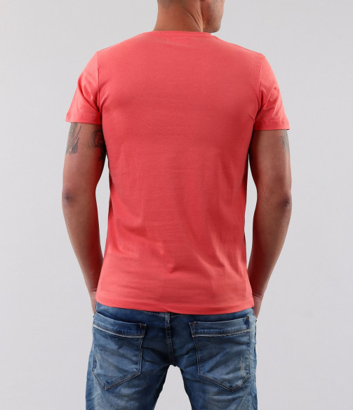 Описание на продукта: Едно по-смело предложение за Вас, мъже. Мъжка розова тениска с цветни надписи. В областта на гърба тениската е напълно изчистена, като акцента пада върху лицето на модела. В предната част има надпис в свежи цветове. Кройката на моделът е вталена, а деколтето е овално. В съчетание със спортно-елегантни дънки и кецове, в нюансите на щампата, се получава страхотна комбинация. Смело може да я комбинирате и с други цветове, за да получите страхотна куул визия, подходяща за всеки случай. Тениската е изработена от 100% чист памук, с което Ви гарантираме качеството на продукта.