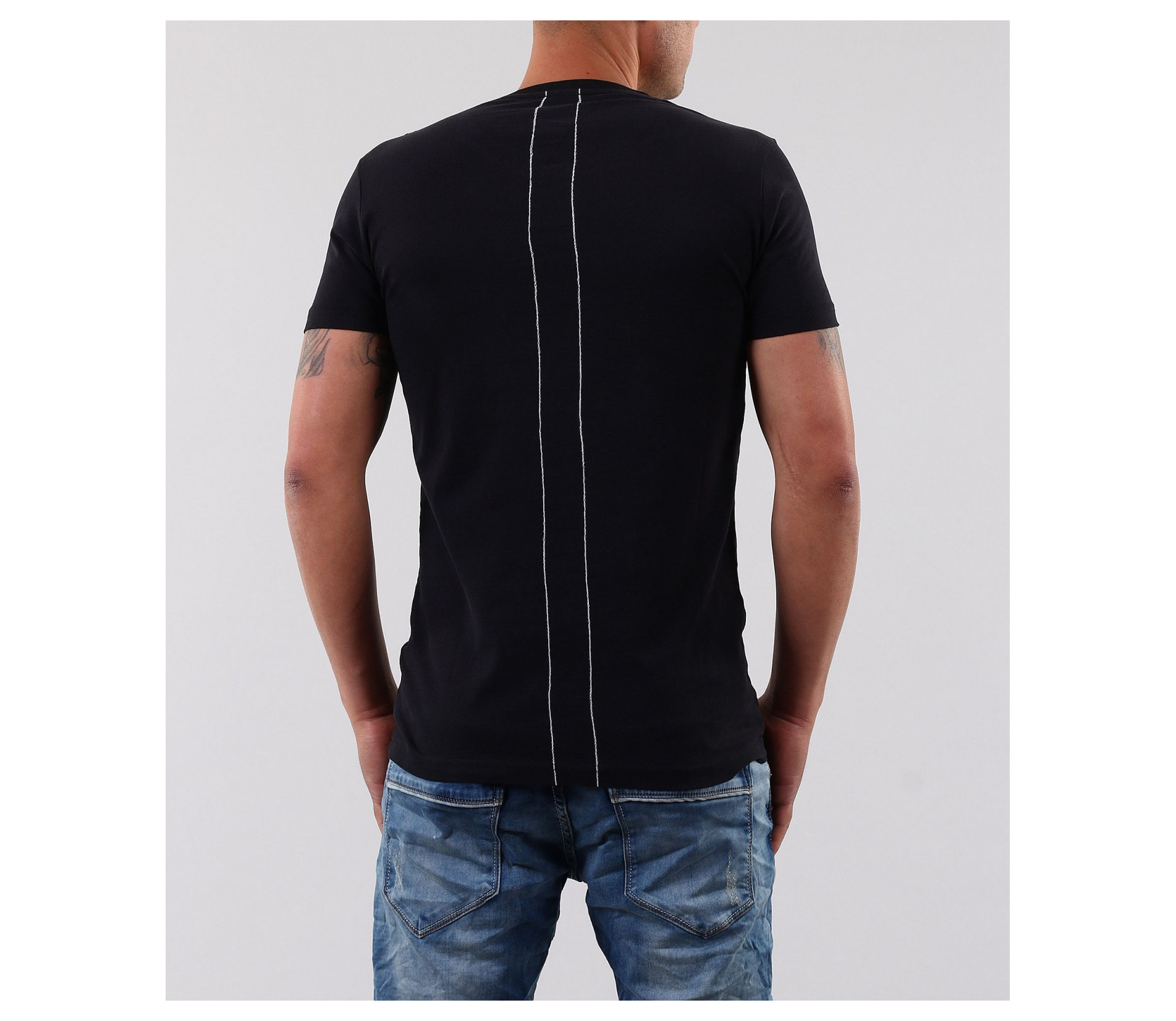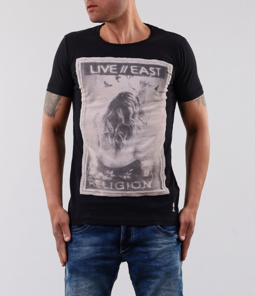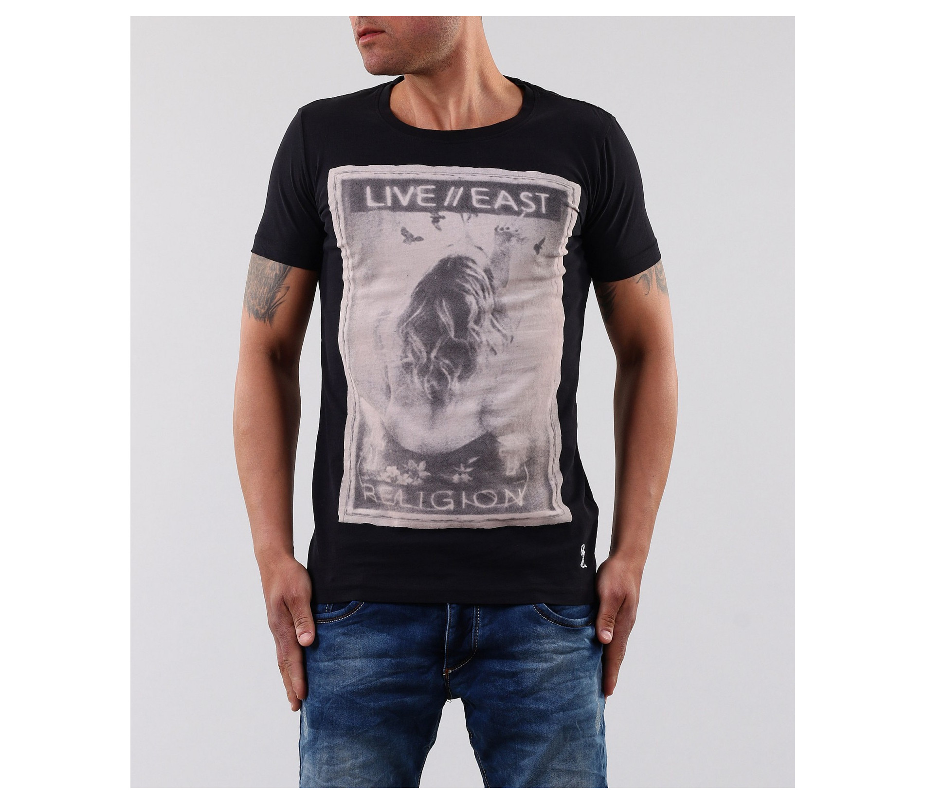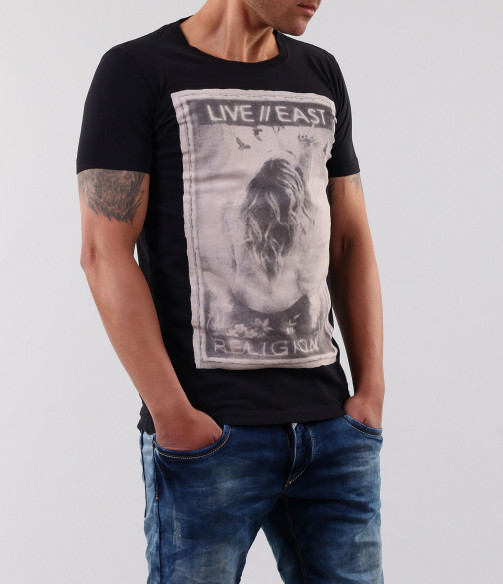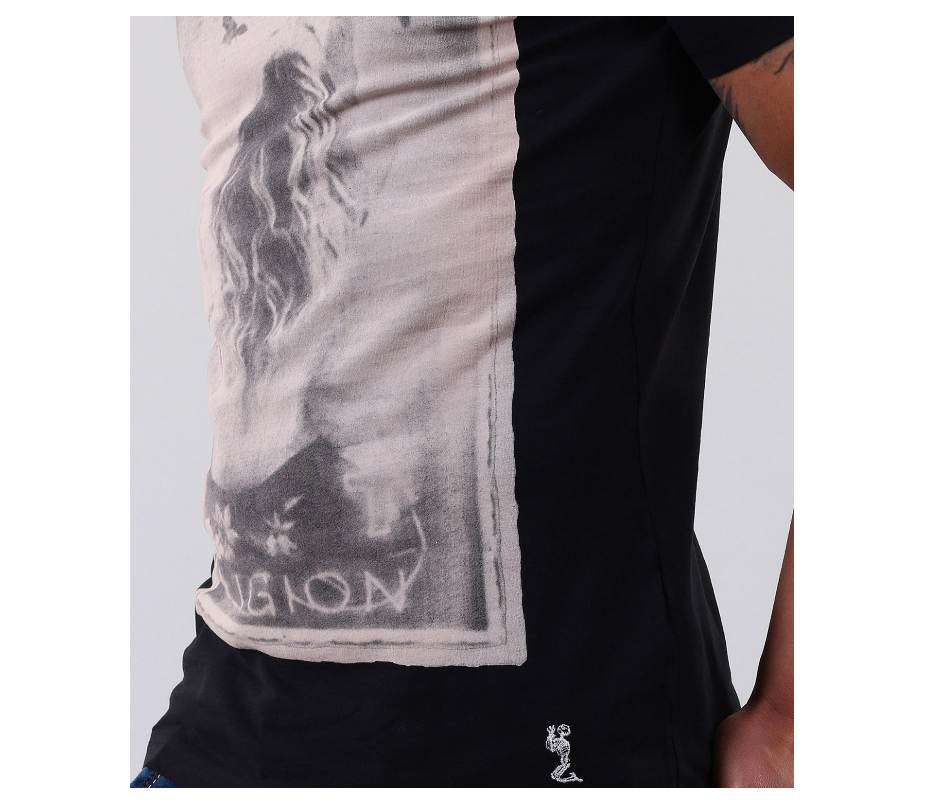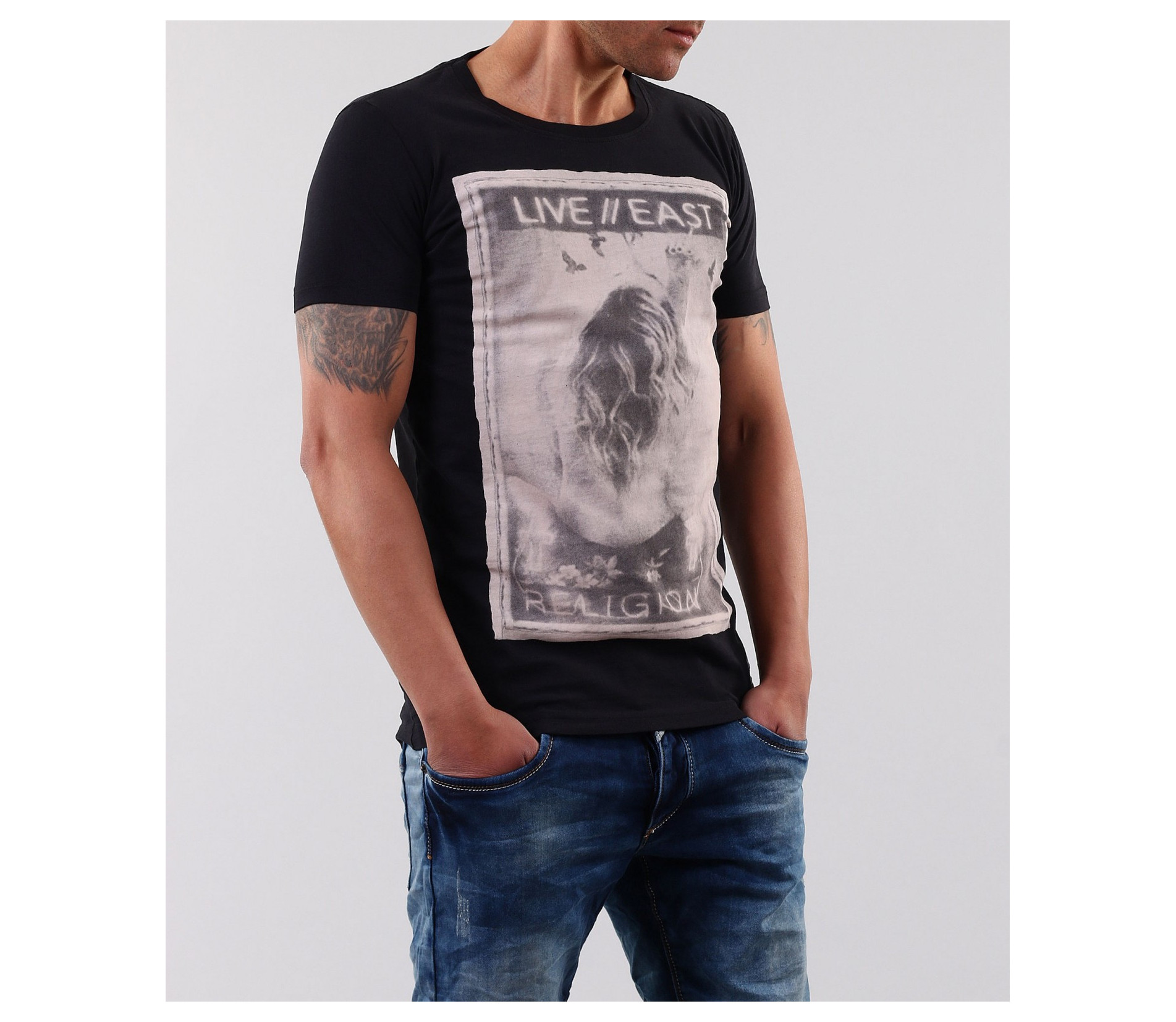 Описание на продукта: Мъжка стилна тениска с принт в предната част. В областта на гърдите е поставена щампа женски образ, декориран с интересни флорални мотиви и блед надпис. Гърбът на тениската е изчистен, и като акцент са поставени два бели шева по цялата дължина. В предната долна част е бродиран малък скелет. Кройката на моделът е вталена с овално деколте. Тениската идеално се съчетава със спортно-елеганти дънки и панталони, кецове и аксесоари по Ваш вкус. Освен страхотна визия тази тениска Ви осигурява и комфорт гарантиран от 100% висококачествен парен памук, от който е изработена. Лесно и смело съчетавате този тишърт с ирока гама от жветове и модели за постигане на куул излъчване.