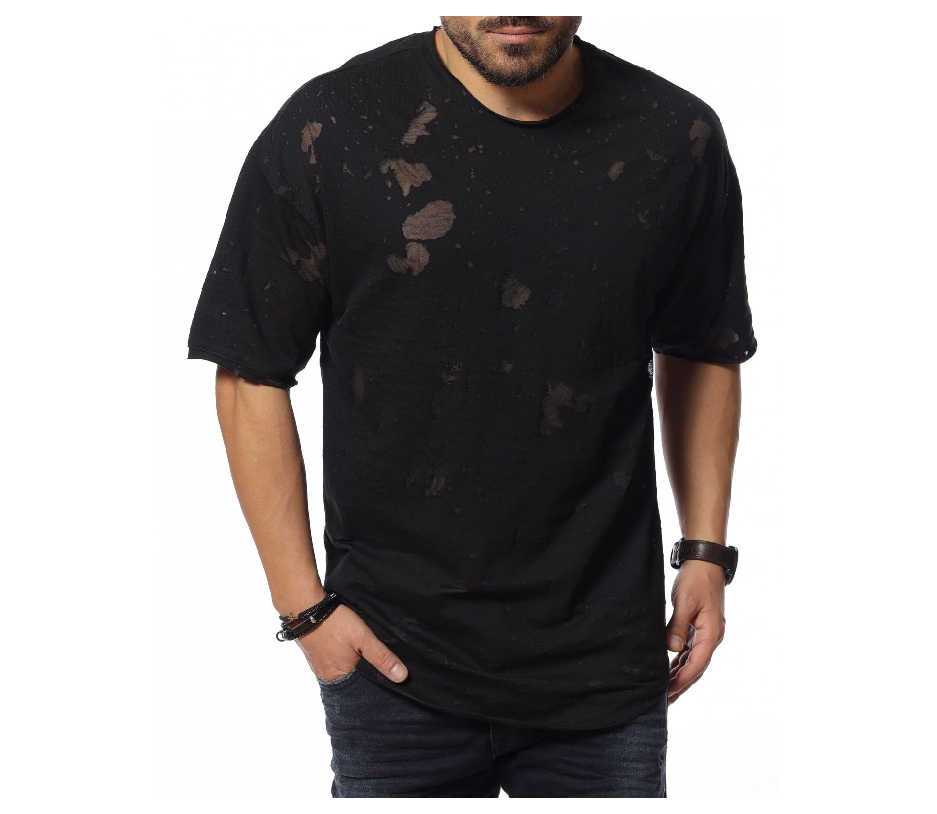 Описание на продукта: Накъсана едноцветна тениска, с която ще изглеждате забележително. Изработена е от 100% памук, а широката кройка я прави свободна и удобна за носене. На гърба има удебелен шев, който е добавен като акцент. Индивидуалният дизайн преотривате в основата, като се прокрадват по-фини части, под формата на кръгове. Oversize линията изгражда този неподправен имидж, към който се стремят всички почитатели на модните предложения за този сезон. Стайлингът е небрежен и може да я комбинирате с дънки през по-топлите дни. Иновативния начин за декорация, използван тук е вдъхновен от топ трендовете за лято 2021г.