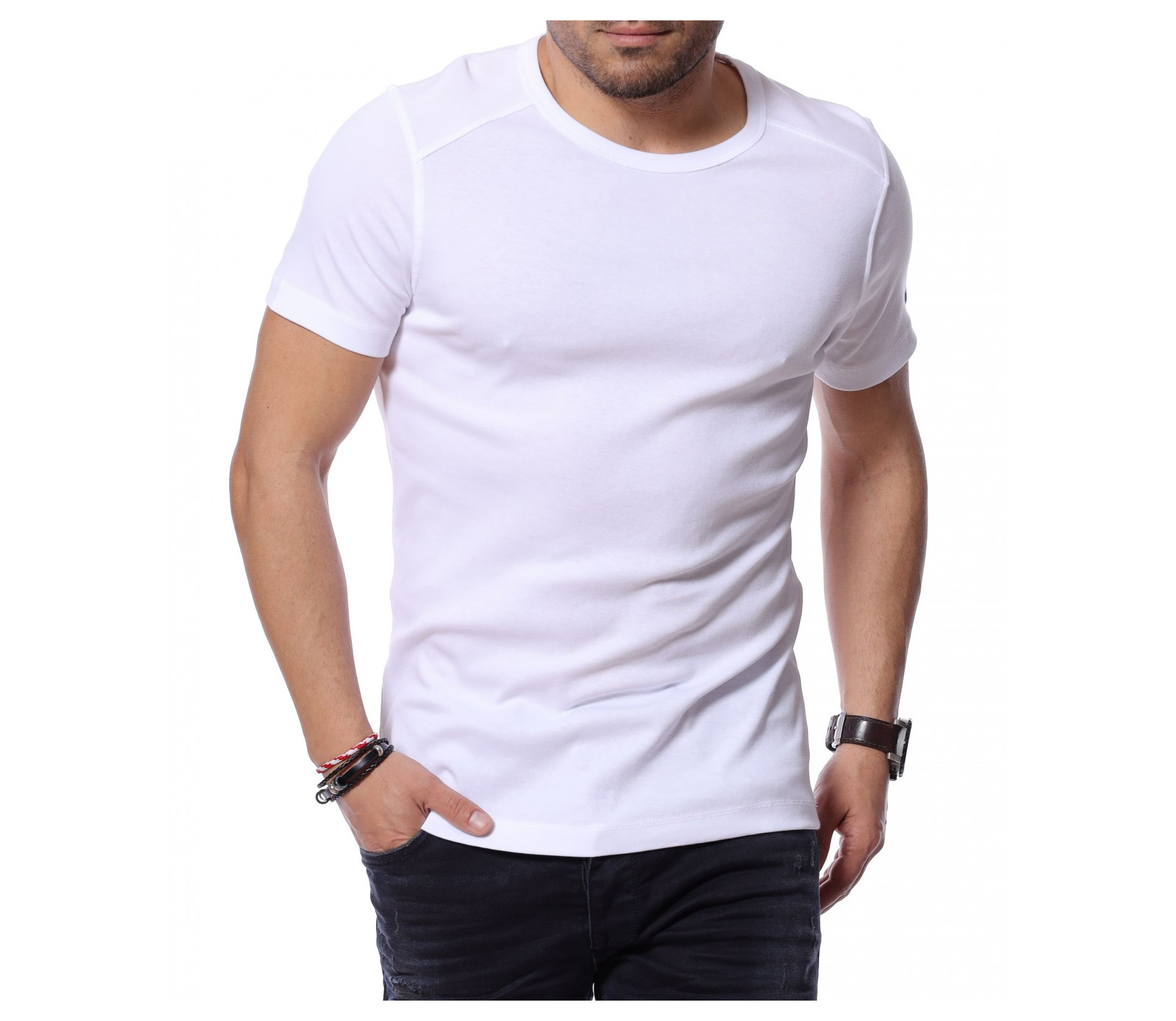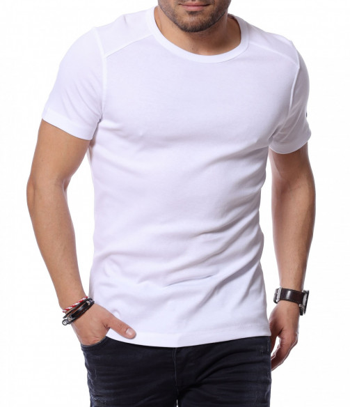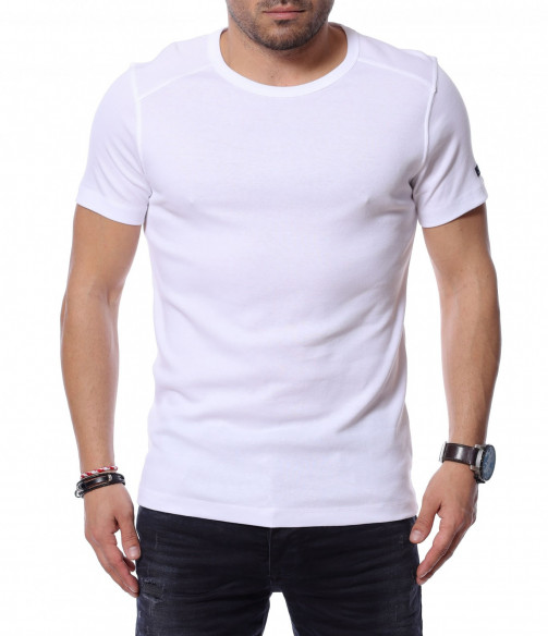 Подготвили сме ви напълно изчистена ежедневна тениска с удебелени шевове в областта на раменете. Добавена е малка и семпла емблема на лявото рамо. Кройката е вталена по тялото, а меката памучна материя я прави напълно комфортна. Дължината е стандартна, покриваща колана. Тя е задължителна част от вашият гардероб и подхожда на всеки аутфит. Като завършек може да добавите подходящи обувки и аксесоари по избор.