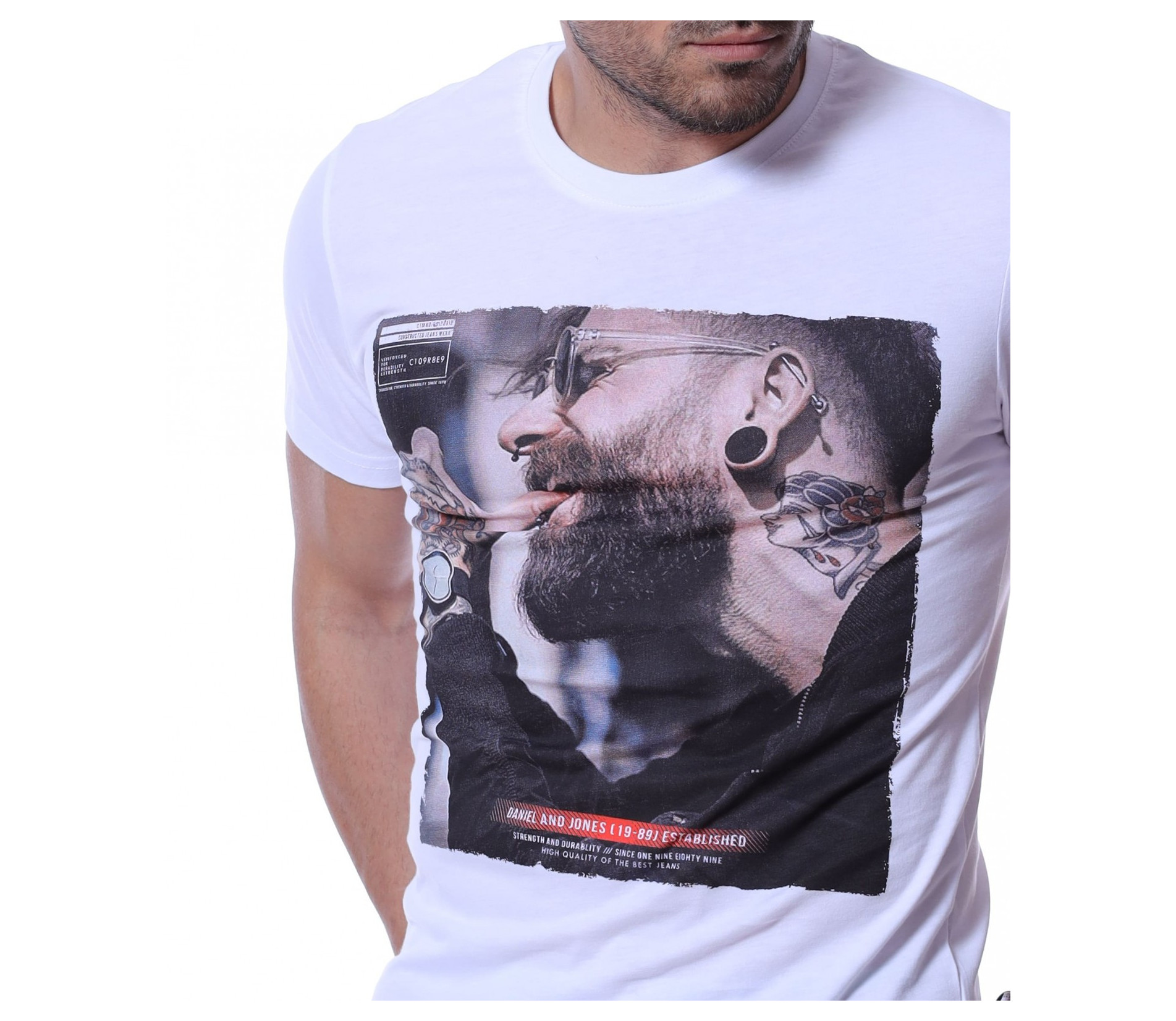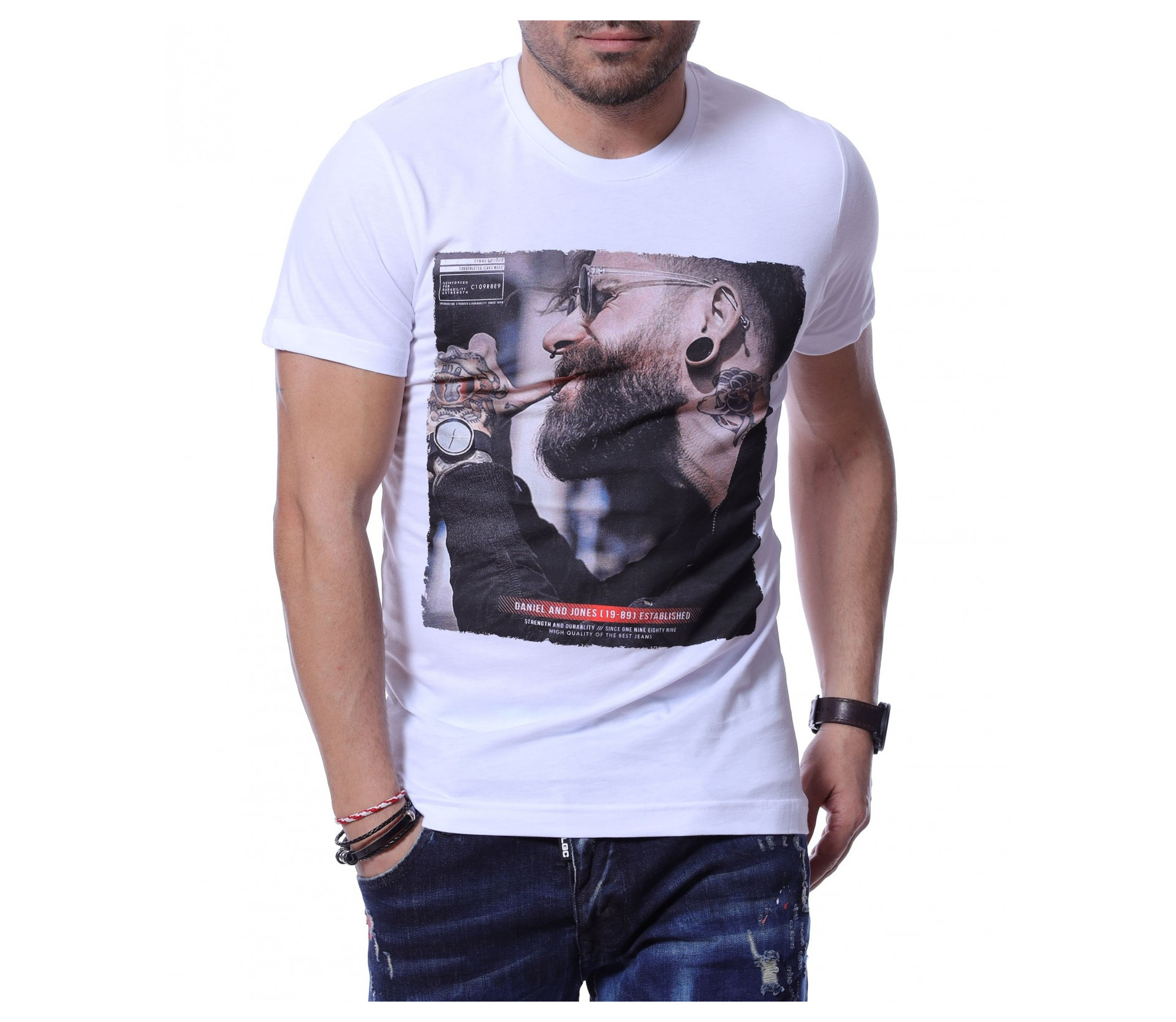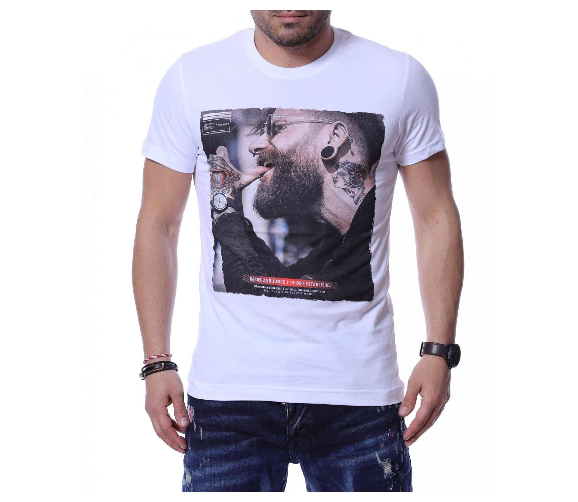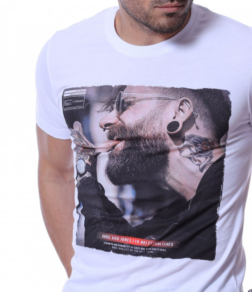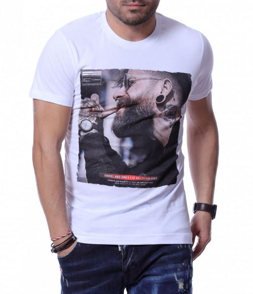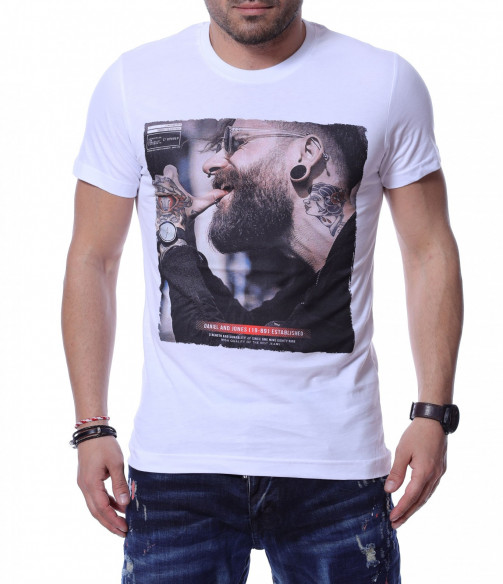 Тениска с авангардна щампа 12219 - Бял