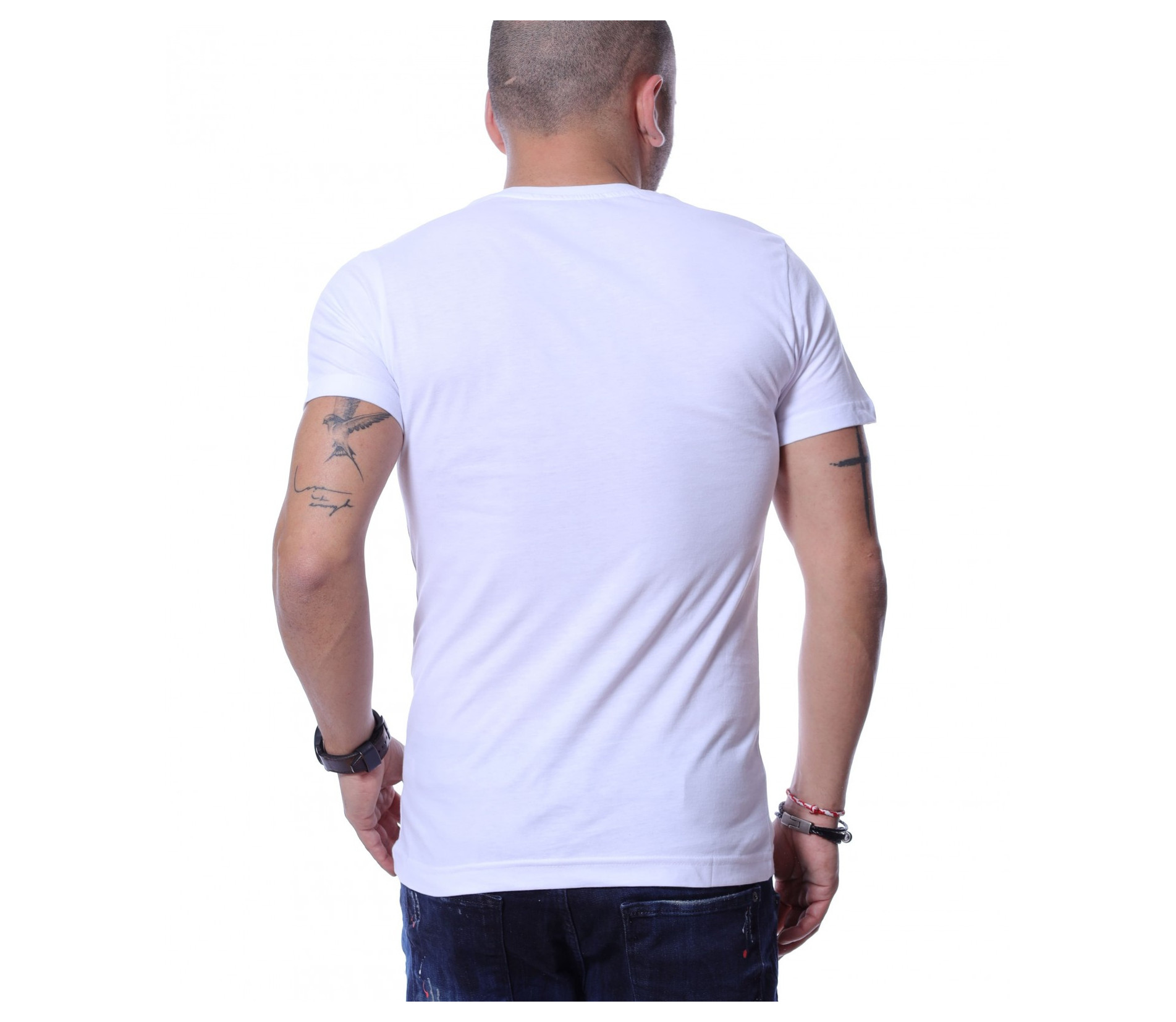 Новото ни предложение - свежа и различна мъжка едноцветна тениска с къс ръкав, впечатляваща със своята авангардна щампа. Тя е поставена в предната част и е центрирана по средата. Дължината е стандартна, а кройката приляга идеално по тялото. Подходяща за ежедневието и изработена от 100% памучна материя за вашият всекидневен комфорт. Експериментирайте или заложете на традиционните дънки и кецове.