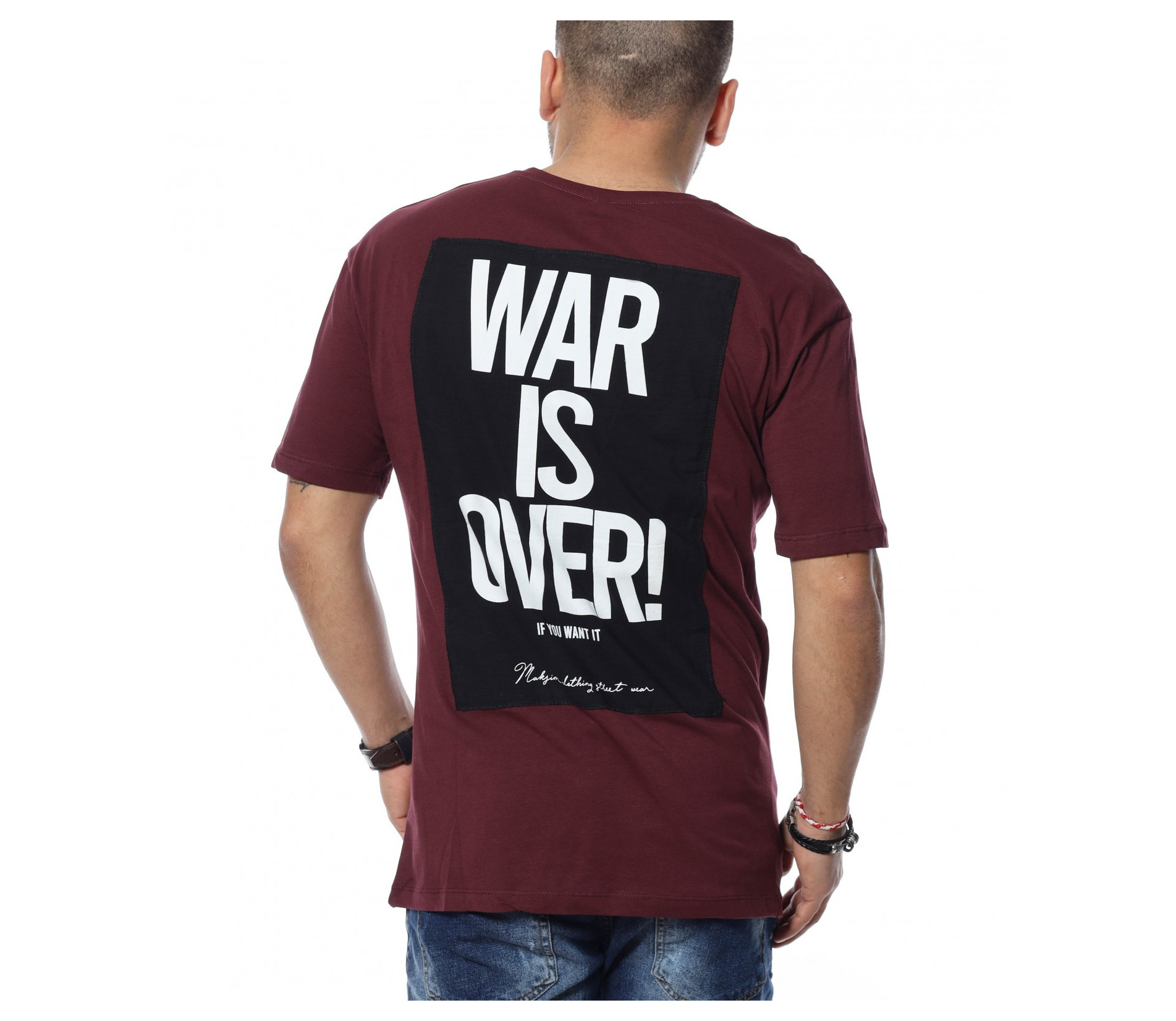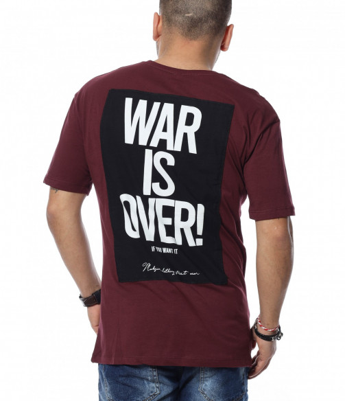 Тениските намират голямо приложение в ежедневието ни, затова сме ви подготвили открояващ се модел. Основата е едноцветна, в предната част е разположен забележителен шрифт на четири реда, а в задната част откриваме забележим надпис \"war is over\". Кройката е стандартна, следваща линиите на тялото и покриваща коланът, а меката памучна материя придава на тялото незаменим комфорт. Дизайнът позволява шиироко приложение и може да комбинирате с кецове и дънки.