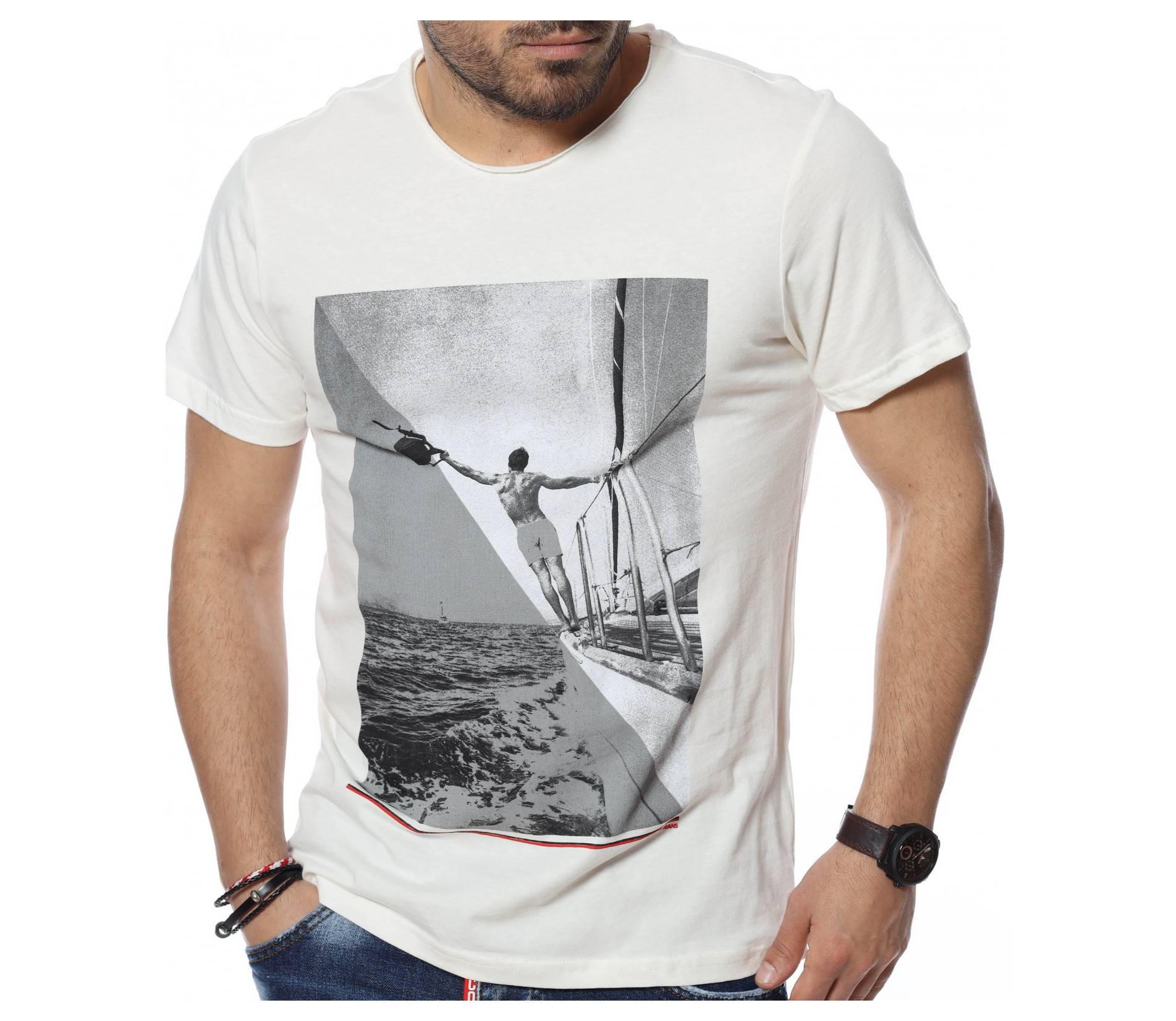 Представяме ви нов модел за пролетно-летният сезон тениска с голяма щампа, която е позиционирана в предната, централна част. Кройката приляга перфектно на тялото, а меката памучна материя я прави изключително комфортна и удобна. Гърбът е напълно изчистен от декорации, а дължината е стандартна, покриваща коланът. Дизайнът позволява широко приложение и придава стилно излъчване. Комбинирайте с кецове и дънки.