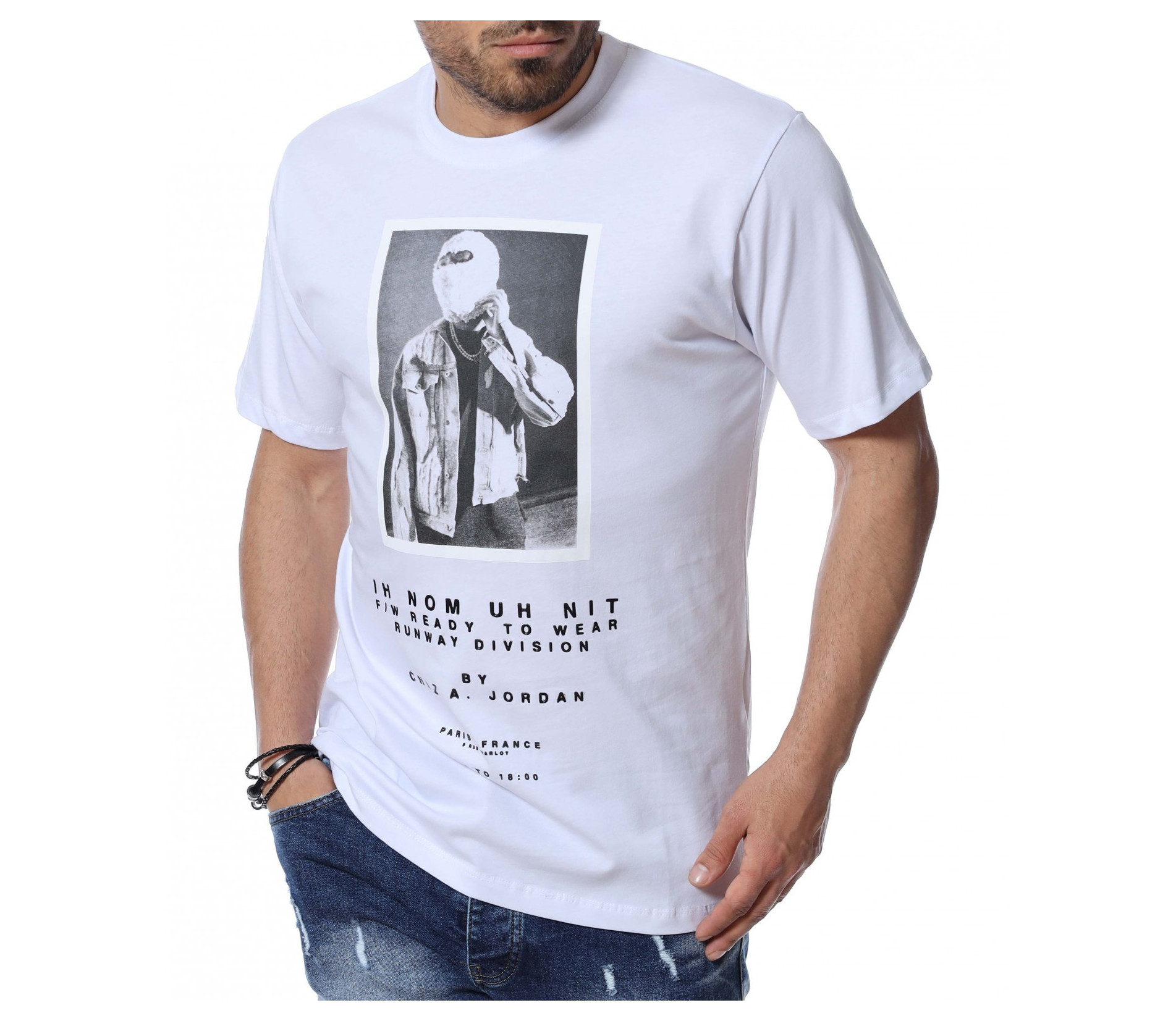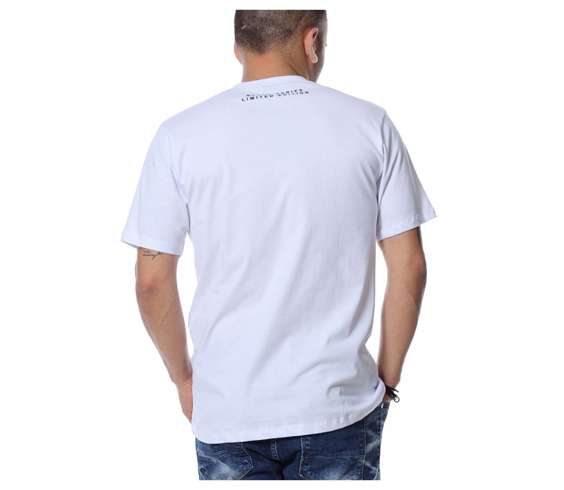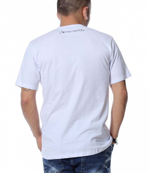 Тениските винаги са били и ще бъдат на мода и са предпочитани както за неофициални, така и за официални поводи. За предстоящите летни месеци, ви представяме, открояващ се от класическите модели, мъжка тениска с щампа и надписи. Основата на блузата е едноцветна, а в предната част е разположена щампа, придружена от дребен шрифт, пренесен и в задната част на деколтето. Материята, от която е изработен моделът ще ви придаде незаменим комфорт и лекота на движение. Кройката е адаптираща се към тялото и достатъчно просторна, без да изглежда широка. Комбинирайте с кецове, дънки и създайте вашият неповторим стайлинг.