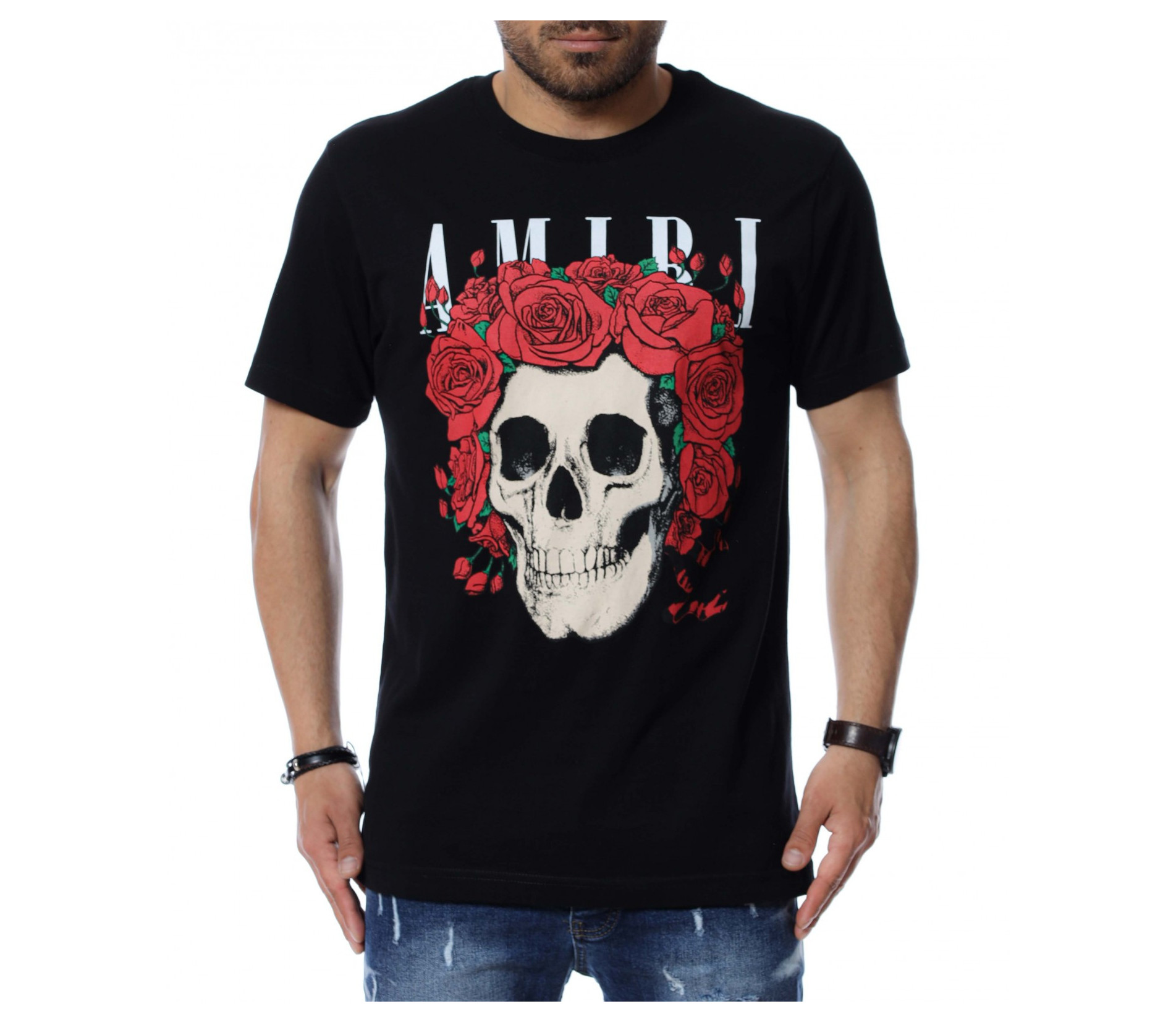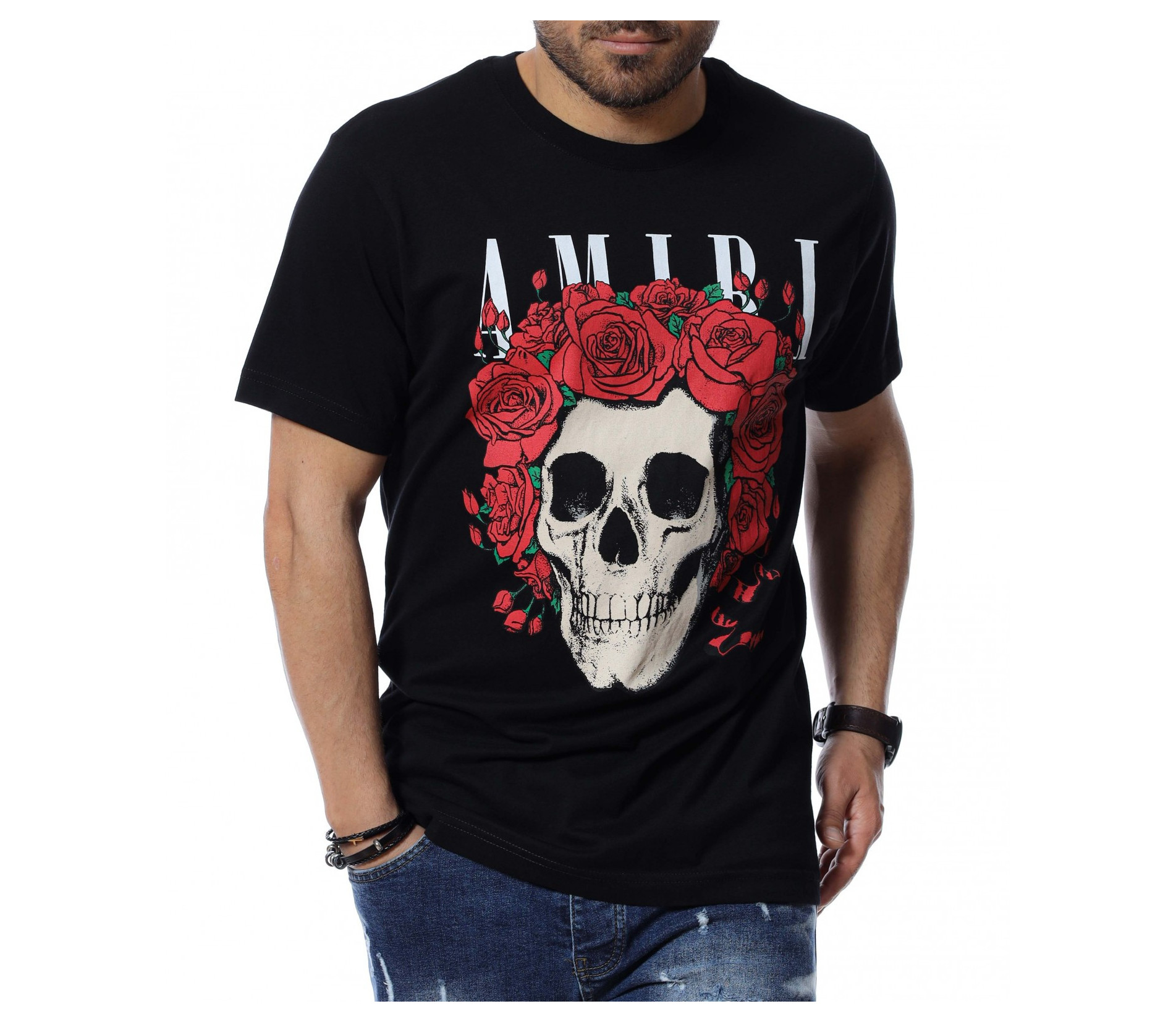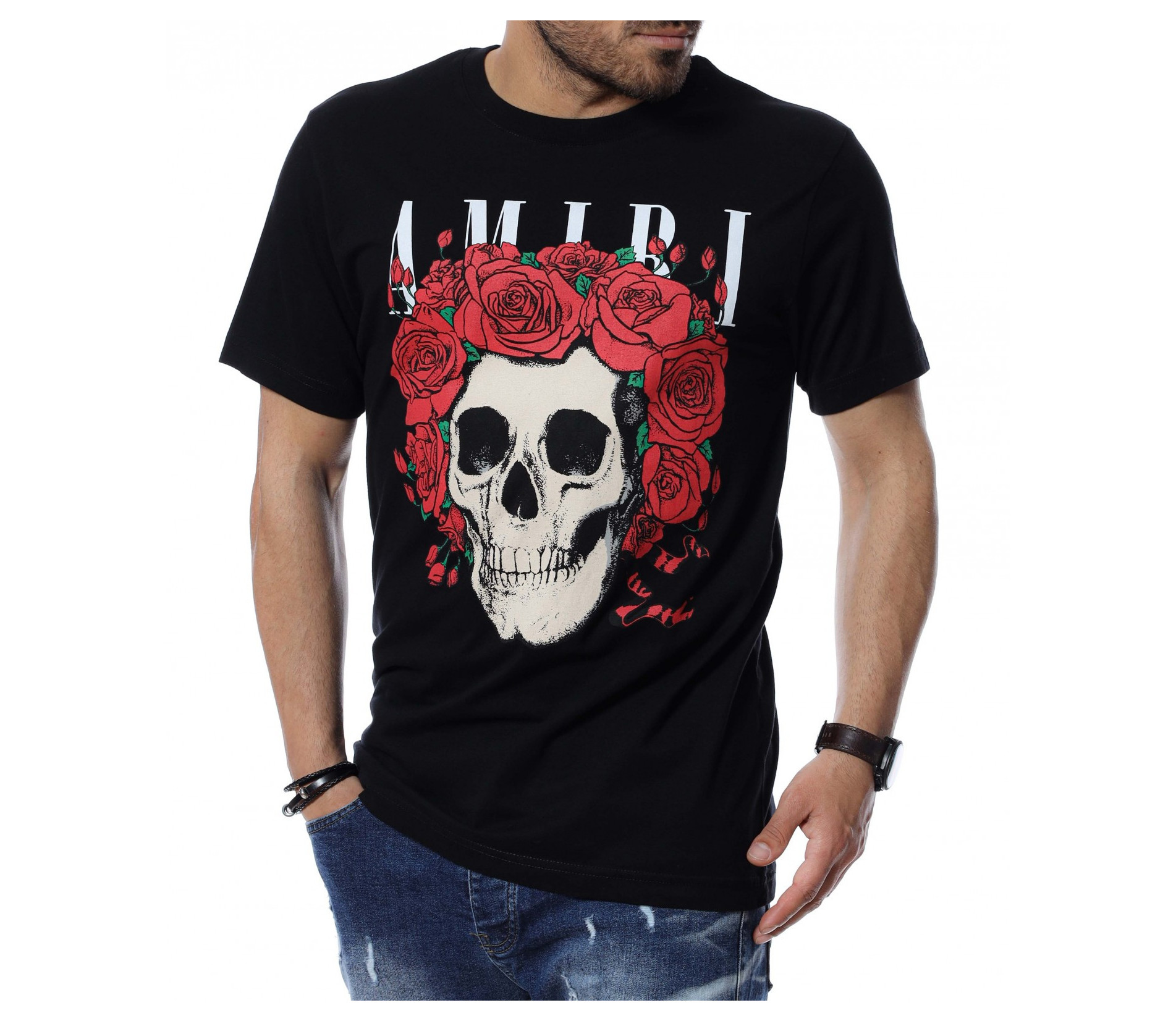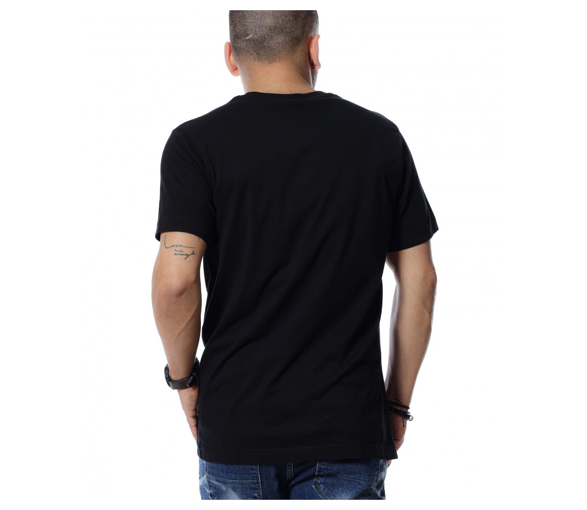 За предстоящите летни месеци, ви представяме, открояващ се от класическите модели, мъжка тениска със забележима апликация. Тениските винаги са били и ще бъдат на мода и са предпочитани както за неофициални, така и за официални поводи. Основата на блузата е едноцветна, а в предната част е разположена щампа с череп, обграден от рози и масивен надпис. Гърбът е напълно изчистен от декорации, за да може да изпъкне лицевата част и ефектът да акцентира отпред. Материята, от която е изработен моделът ще ви придаде незаменим комфорт и лекота на движение. Кройката е адаптираща се към тялото и достатъчно просторна, без да изглежда широка. Комбинирайте с кецове, дънки и създайте вашият неповторим стайлинг.