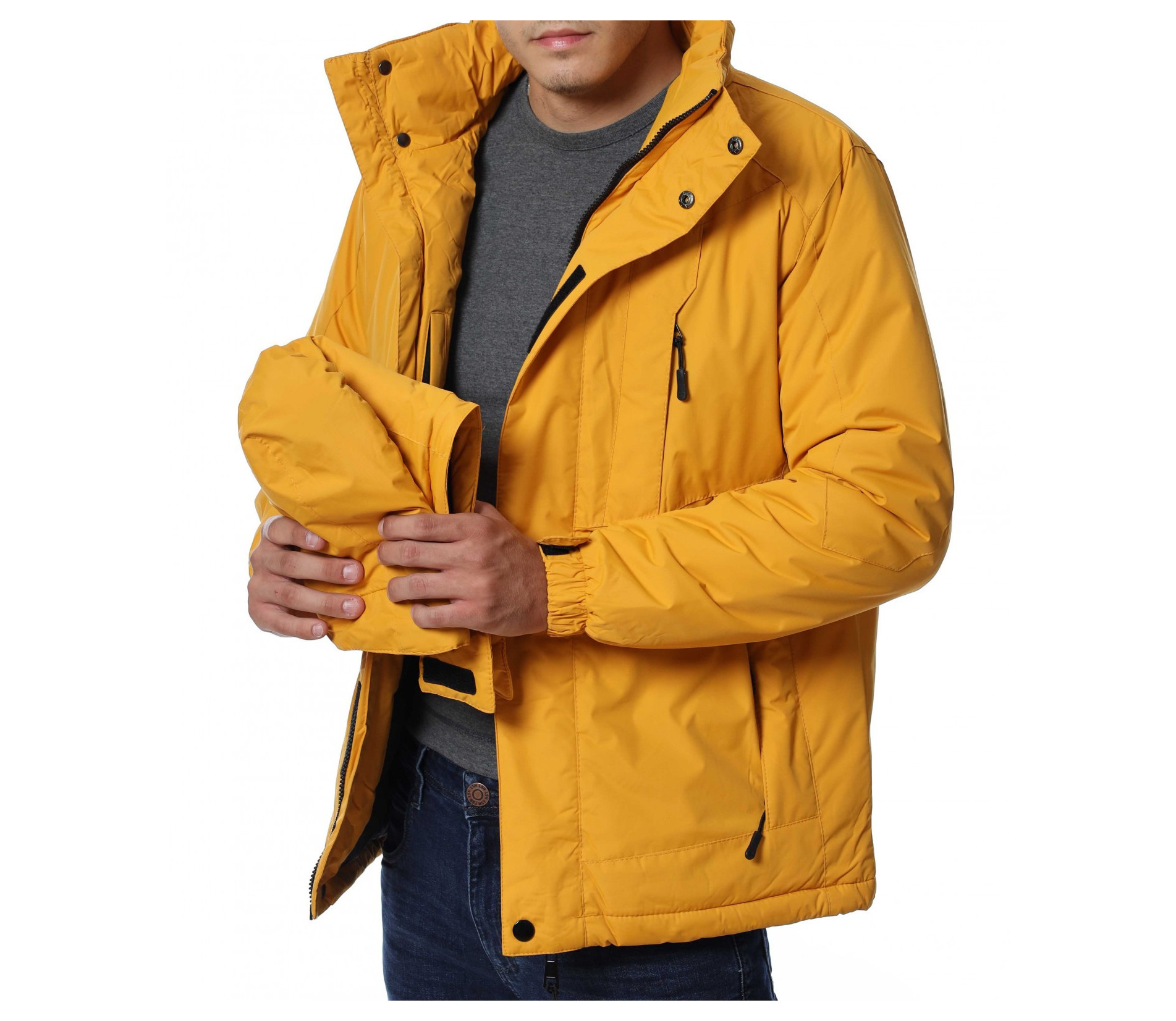 Мъжко, зимно яке с качулка, подходящо за предстоящите студени дни. Моделът е едноцветен и е изчистен от всякакви декорации. Закопчаването е с цип и са разположени удобни джобове за всичко най-необходимо. Кройката е удобна и даваща достатъчна свобода на движение. Комбинирайте с маратонки, кецове, блуза и любим аксесоар.