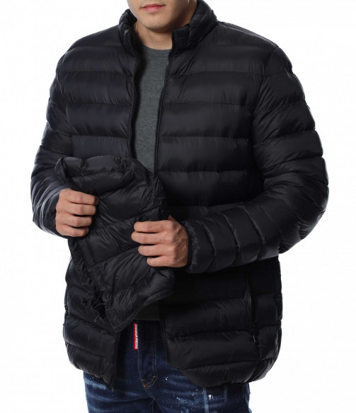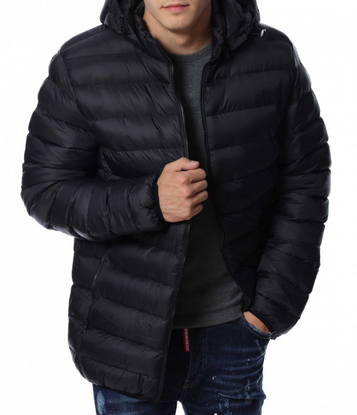 Мъжко яке в големи размери (oversize). Моделът е в едноцветен вариант, а по цялата основа, както в предната, така и в задната част забелязваме шевове, които придават интересен дизайн на дрехата. Закопчаването е с цип, който откриваме и при джобовете. Качулката може да се сваля по желание, а кройката е удобна и придава комфорт на тялото.