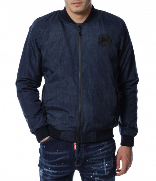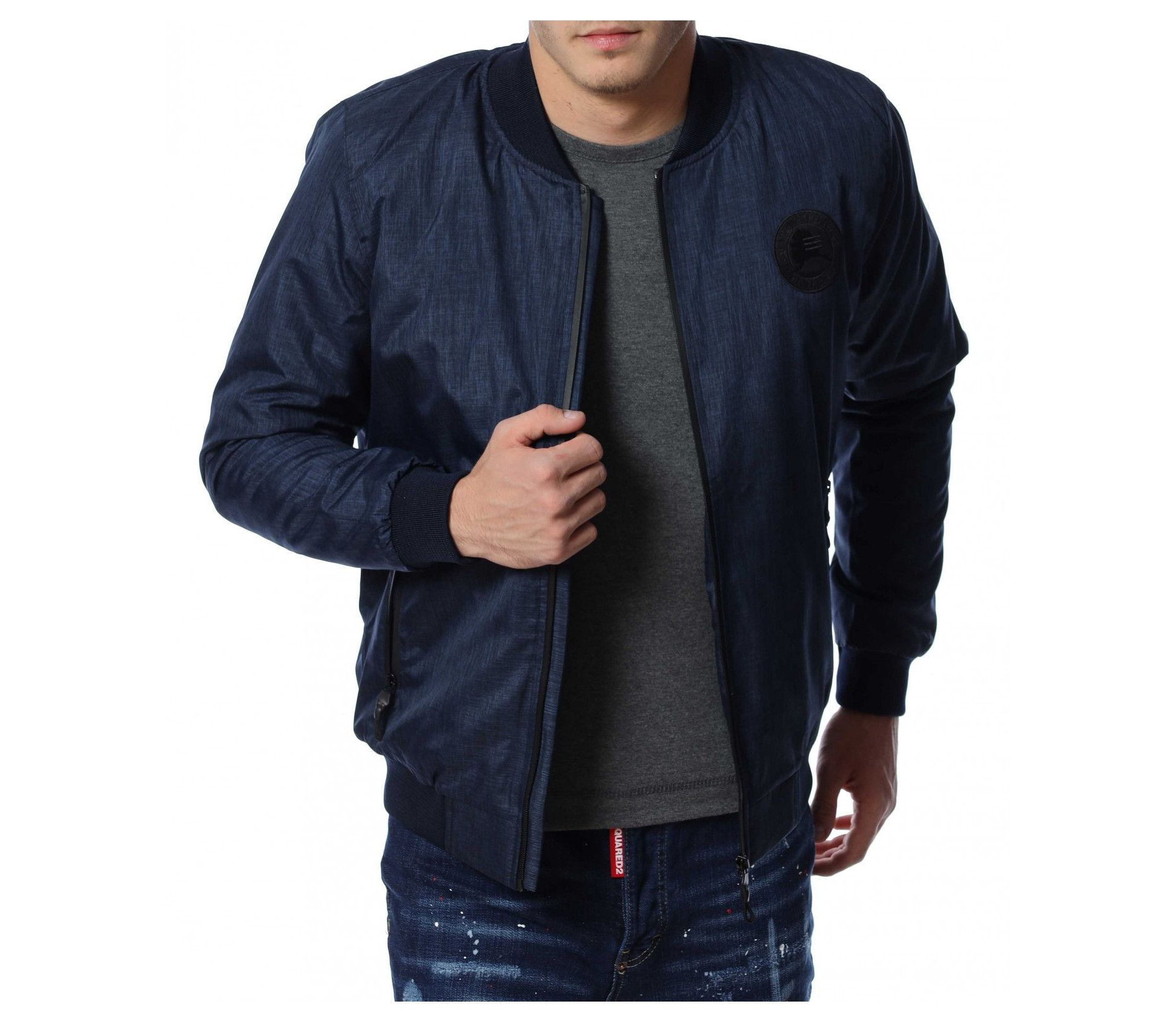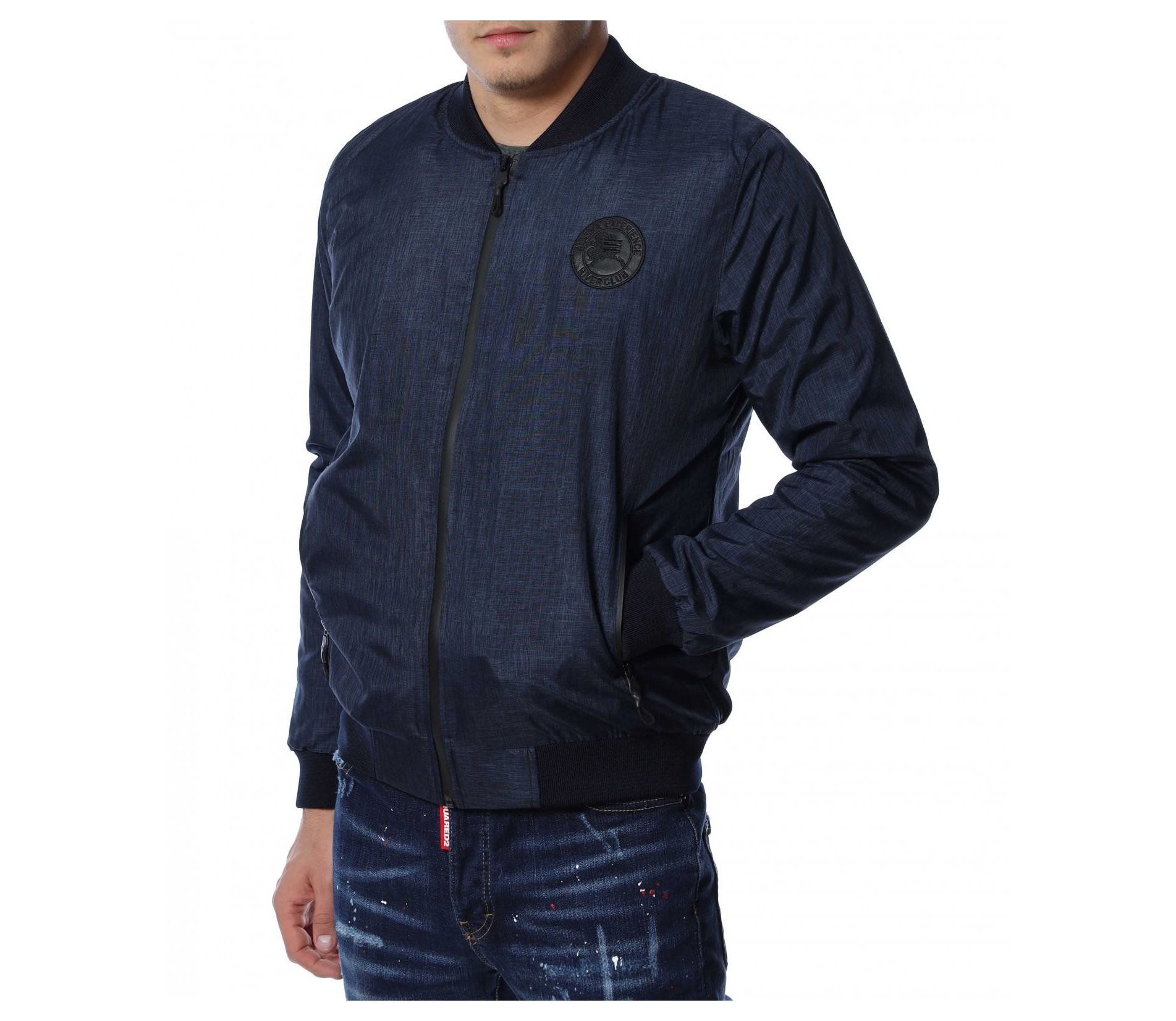 Мъжко яке в едноцветен вариант с тънка подплата. Моделът разполага с два странични джоба с цип, а закопчаването също се състои в цип. В предната част е разположена емблема (лого) на марката. Ръкавите са прибрани с ластични маншети, които са пренесени и в долната част и на яката. Якето е без качулка и може да го комбинирате с дънки и блуза.