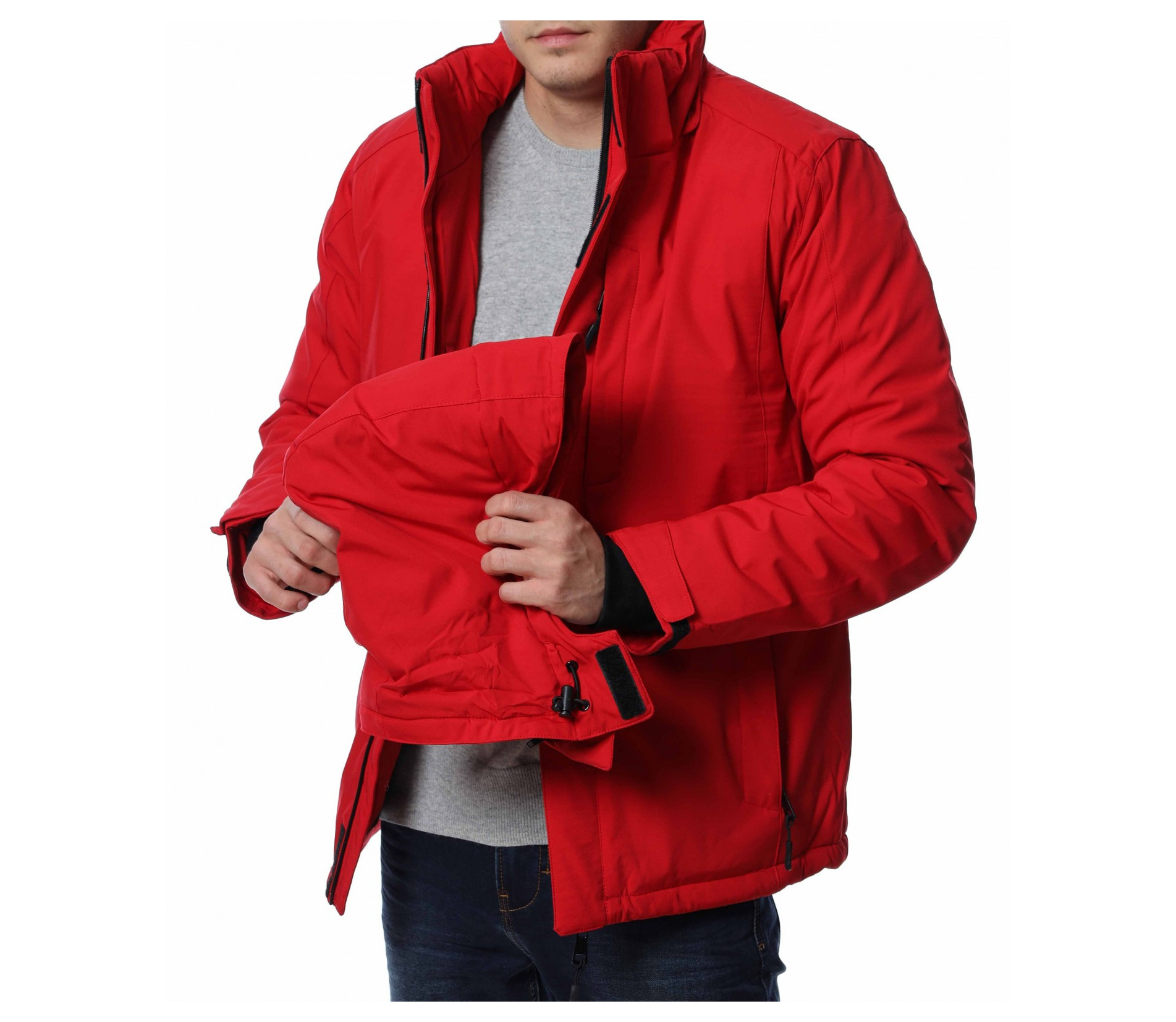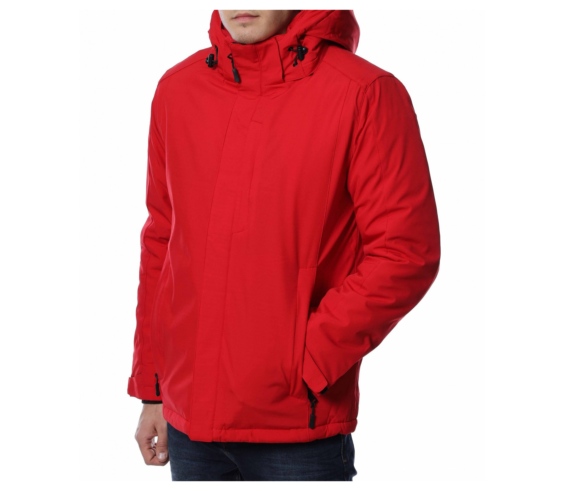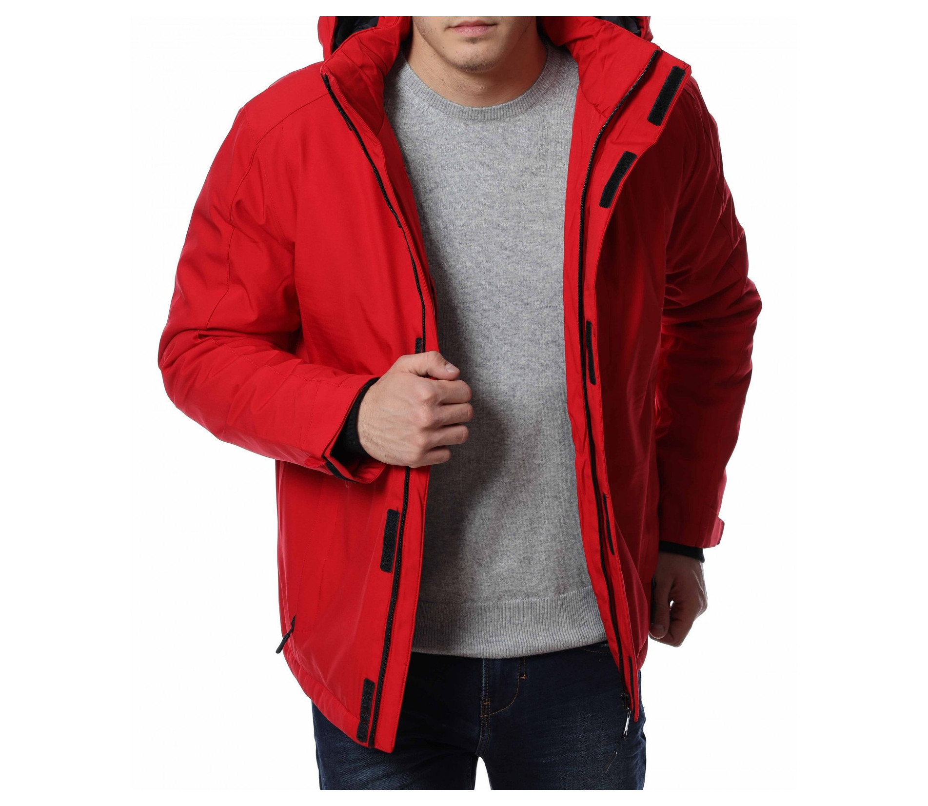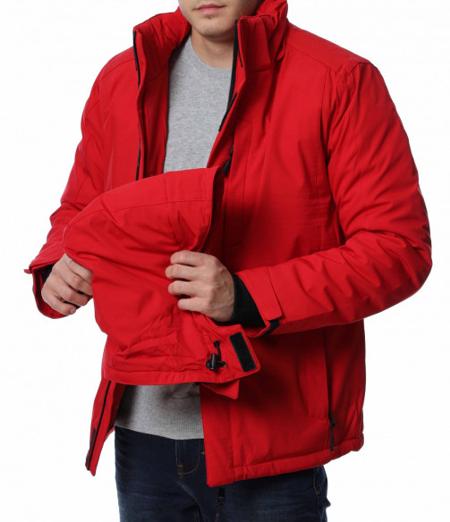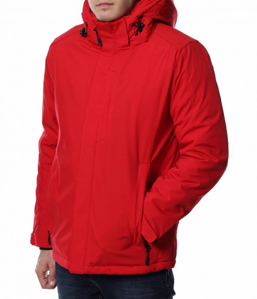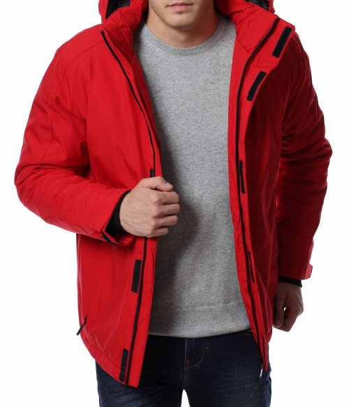 Мъжко, зимно яке с качулка от плътна и топла материя. Якето е изключително подходящо за студените месеци, моделът е в изчистен вариант, както отпред, така и отзад. На качулката има връзки за регулиране на ширината, а закопчаването е с цип и маншет, който може да го скрие. В края на ръкавите е поставено велкро и забелязваме като допълнение джоб в предната част. Комбинирайте с дънки и блуза.
