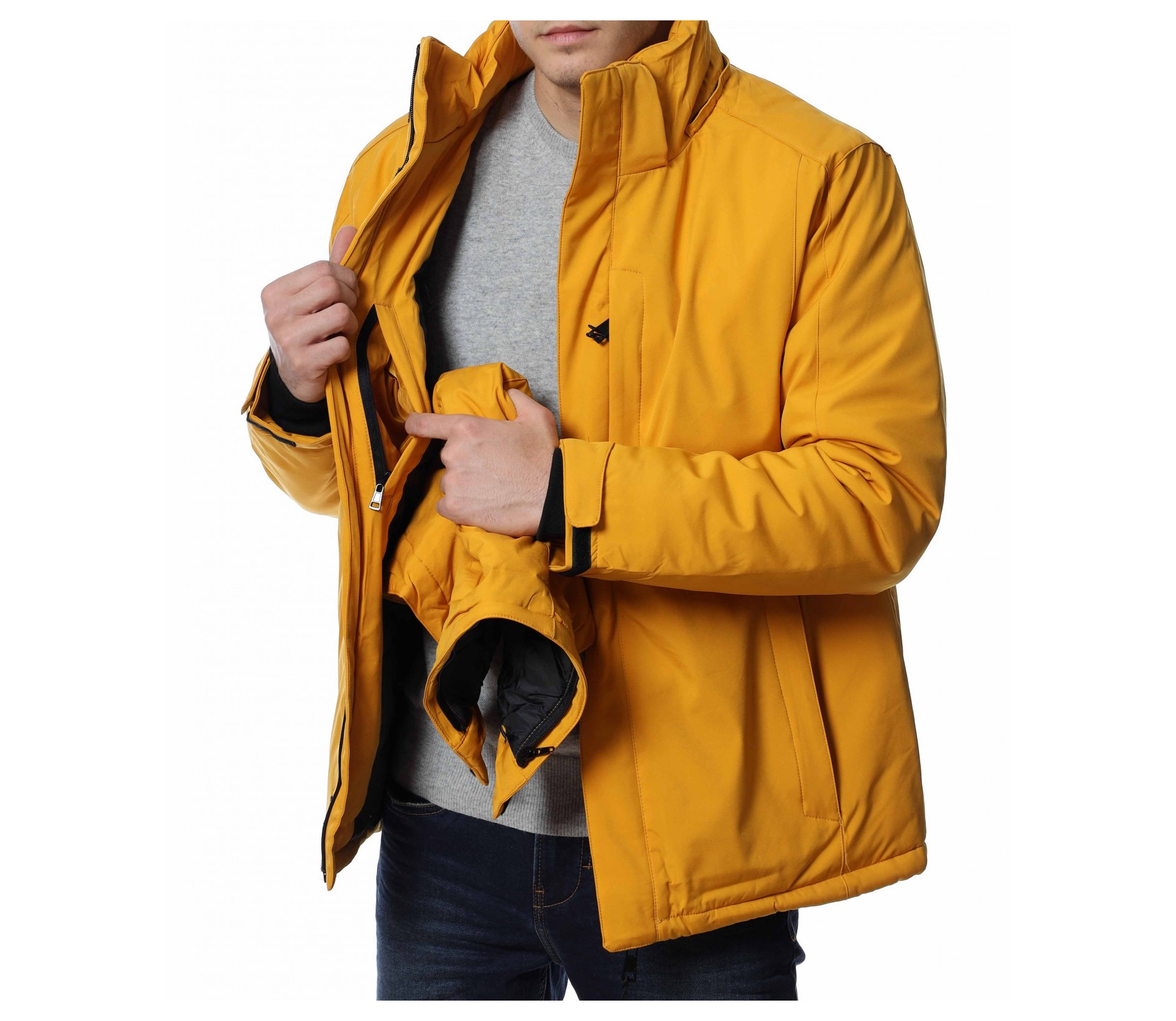 Зимно яке с качулка 13194 - Жълт