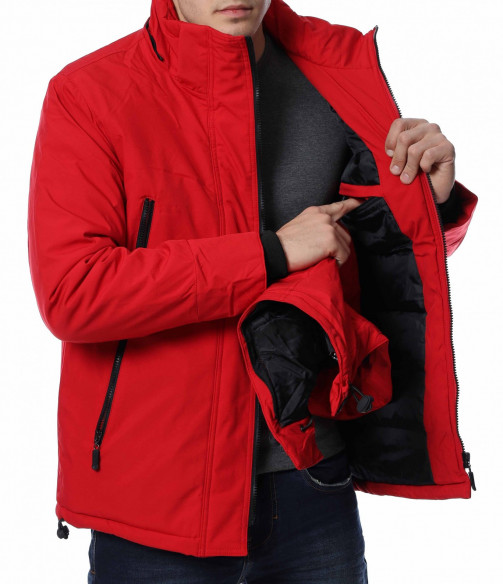Мъжко яке с двойно закопчаване, което позволява да регулирате ширината, ако желаете може да бъде по-широко или по-вталено. Яката е висока и придружена с качулка, която може да сваляте по избор. Якето е изключително удобно и придава на тялото топлината, от която имаме нужда през студените месеци. Джобовете са с цип, а от вътрешната страна също разполагате с джоб. Комбинирайте с дънки и блуза.