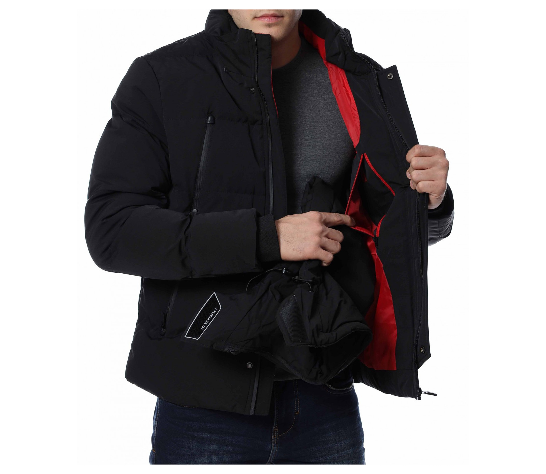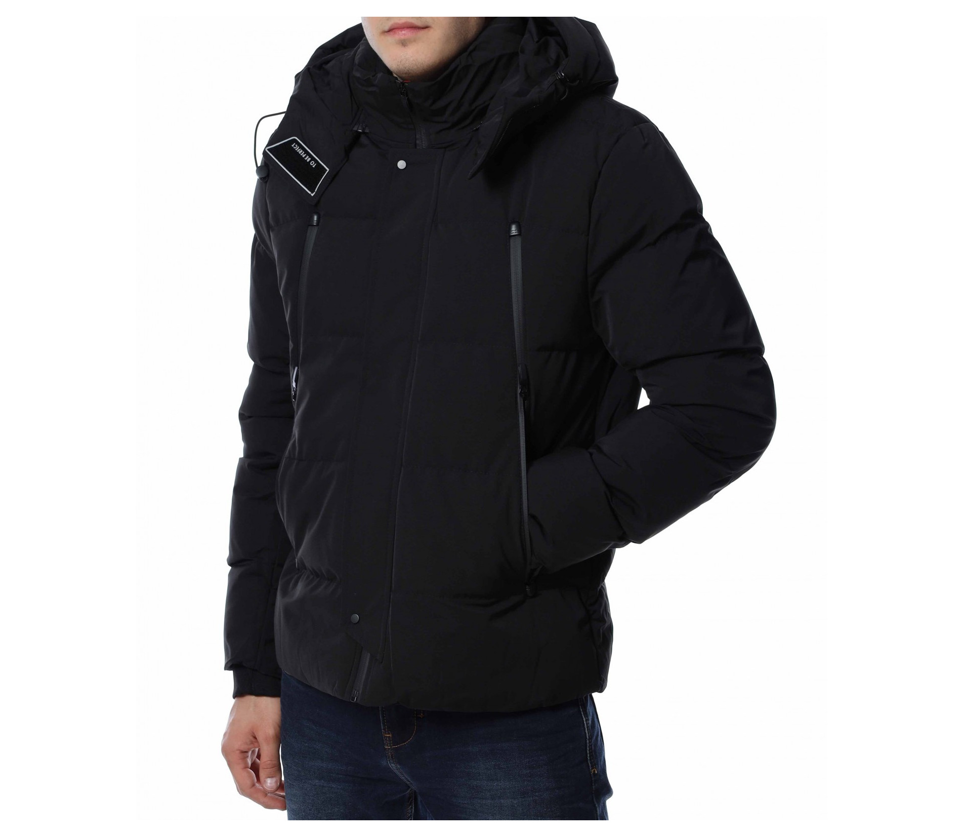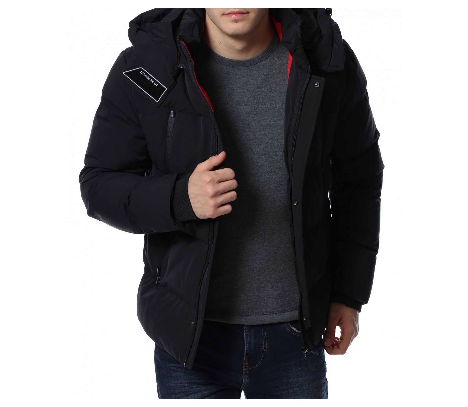 Мъжко зимно яке от непромокаема материя, подходящо за студените дни. Моделът е декориран от леко оребрени шевове по цялата дължина. Закопчааването е с цип и висока яка, която преминава в качулка, която може да свалите, ако желаете. Якето разполага с джобове както от външната, така и от вътрешната страна. При ръкавите са добавени ластични маншети за завършен вид. Благодарение на силиконовата вата, ще се наслаждавате на топлина и уют през студеното време. Може да комбинирате с дънки и блуза.