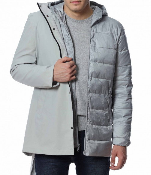 Подгответе се подобаващо за студеното време с двойно яке от Red Point. Моделът ви предоставя възможността да носите двете якета едновременно, или само едно от двете. Закопчаването се състои в цип, а на едното яке в допълнение има и капси. Основата е едноцветна, изчистена от декорации и елементи. Якетата разполагат с качулка и джобове в страничните части. Комбинирайте с дънки и блуза.
