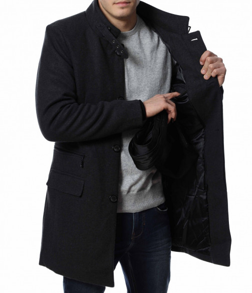 Завършете модния си стайлинг с топло палто от Red Point. Основата е едноцветна и напълно изчистена от декорации. Закопчаването е с цип и големи копчета, като част от тях са скрити. Яката е висока и има интересна катарама, която придава стилен вид на палтото. Можете да махнете памучната яка, която се закрепя с цип по дължината на палтото и така ще получите по-елегантна визия. В предната част са разположени джобове с капаци а над един от тях има джоб с цип за съхранение на ценни вещи. Кройката е издължена и леко вталена. Моделът е изработен от топла материя и може да съчетавате в спортно-елегантния стил. Комбинирайте с дънки и стилен пуловер.