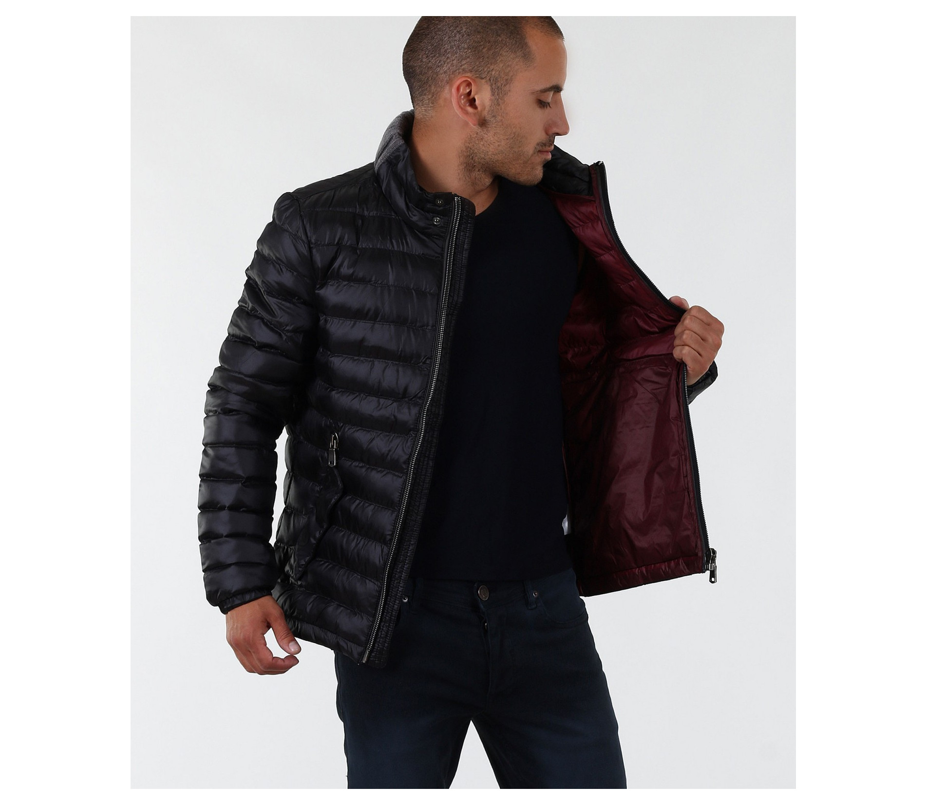 Описание на продукта: Стилно спортно яке с яка.Закопчаването на модела е с цип. В предната си част има два предни джоба.Яката при тила е от сив плат като акцент.Вътрешната подплата е цвят бордо.Изработено е от найлон.Страхотно допълнение към зимния гардероб и спортна или спортно-елегантна визия.