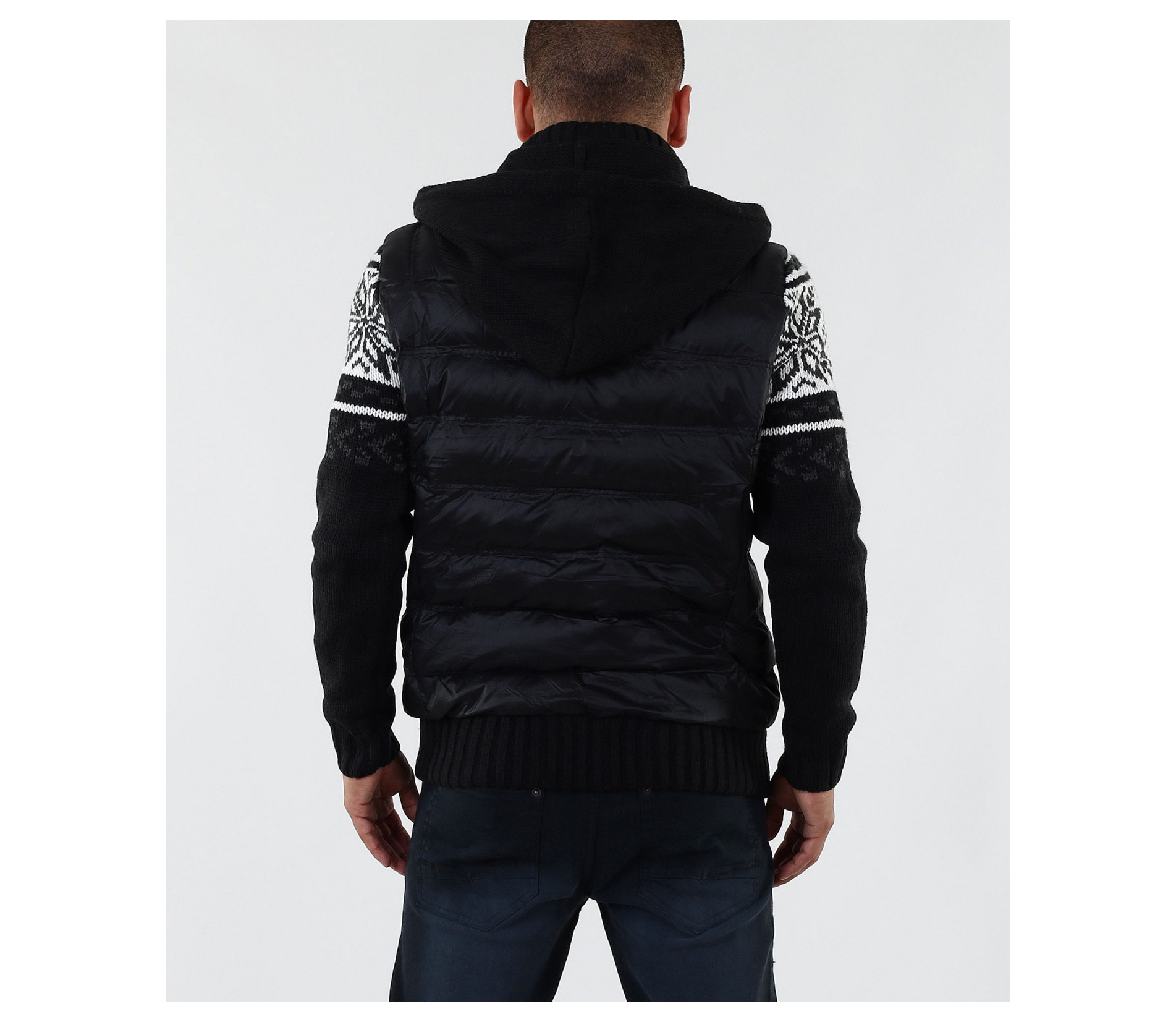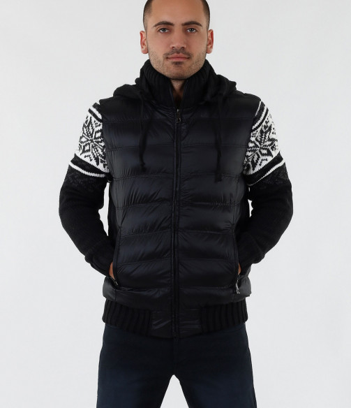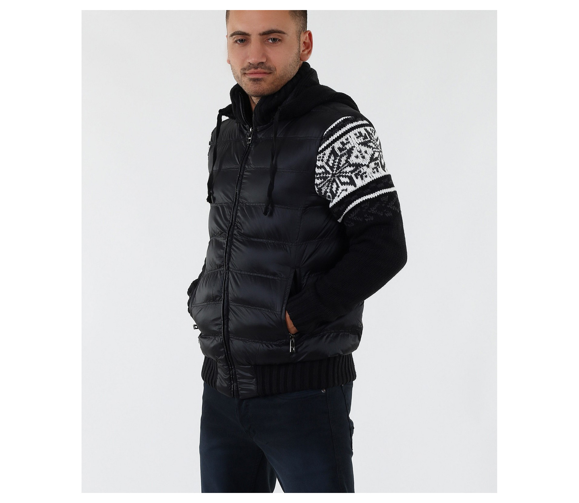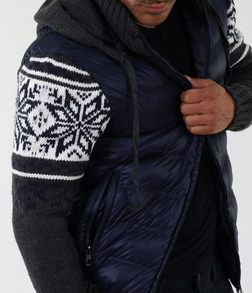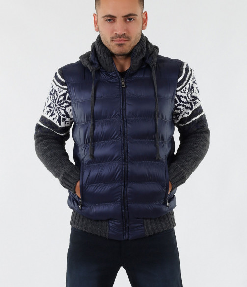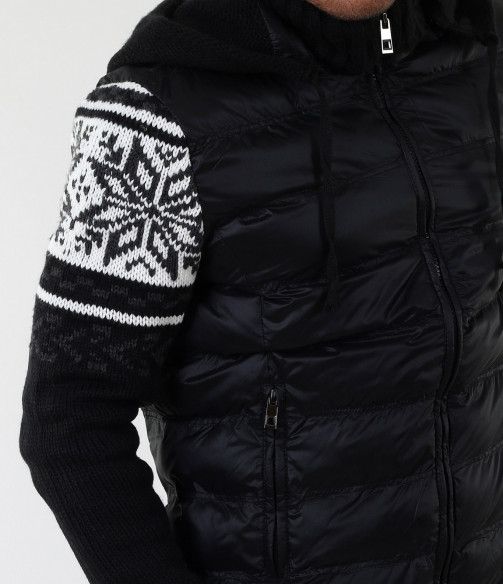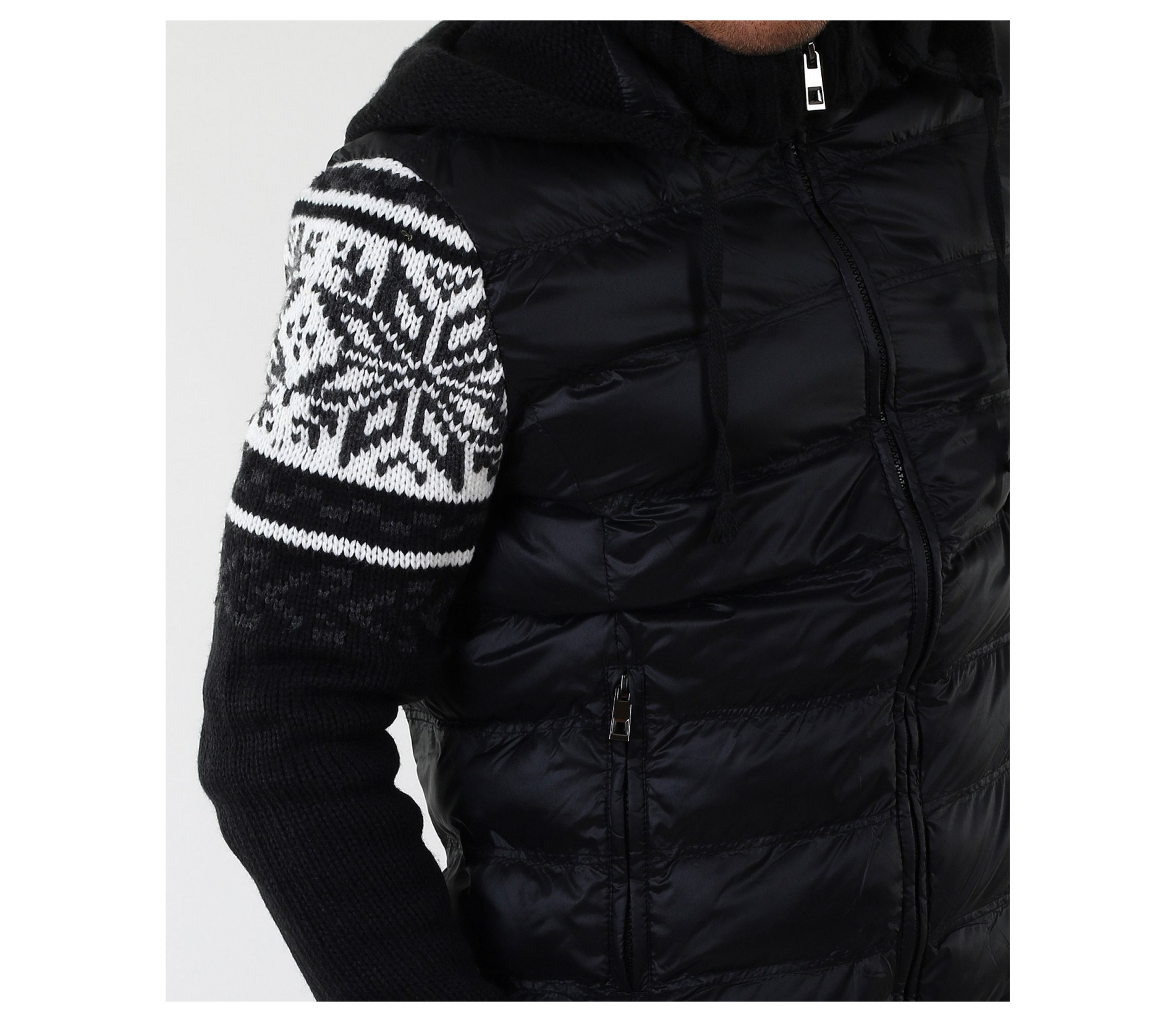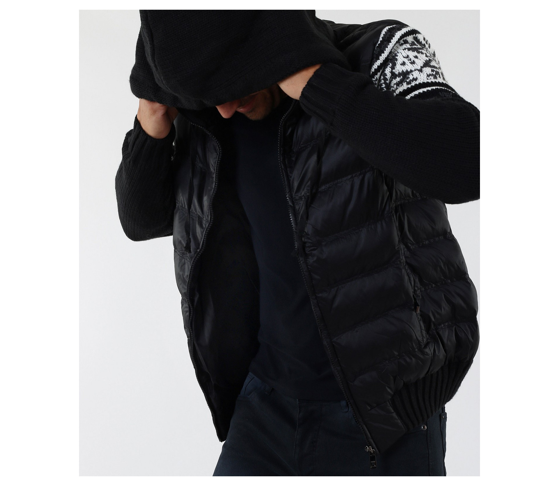 Описание на продукта: Мъжко стилно яке с шушлекова част и плетени ръкави. Изключително интересен модел , подходящ за феновете на модерния и различен стил на обличане. С вталена кройка, стандартна дължина, акцент на ръкавите и качулка с опция за сваляне, този модел яке перфектно завършва визията Ви. Якето се предлага в два цвята: черен и син. В предната част са поставени два дълбоки джоба с цип. Перфектно се съчетава както със стилни дънки, така и със спортно-елегантен панталон. Изработен от 100% висококачествен найлон.