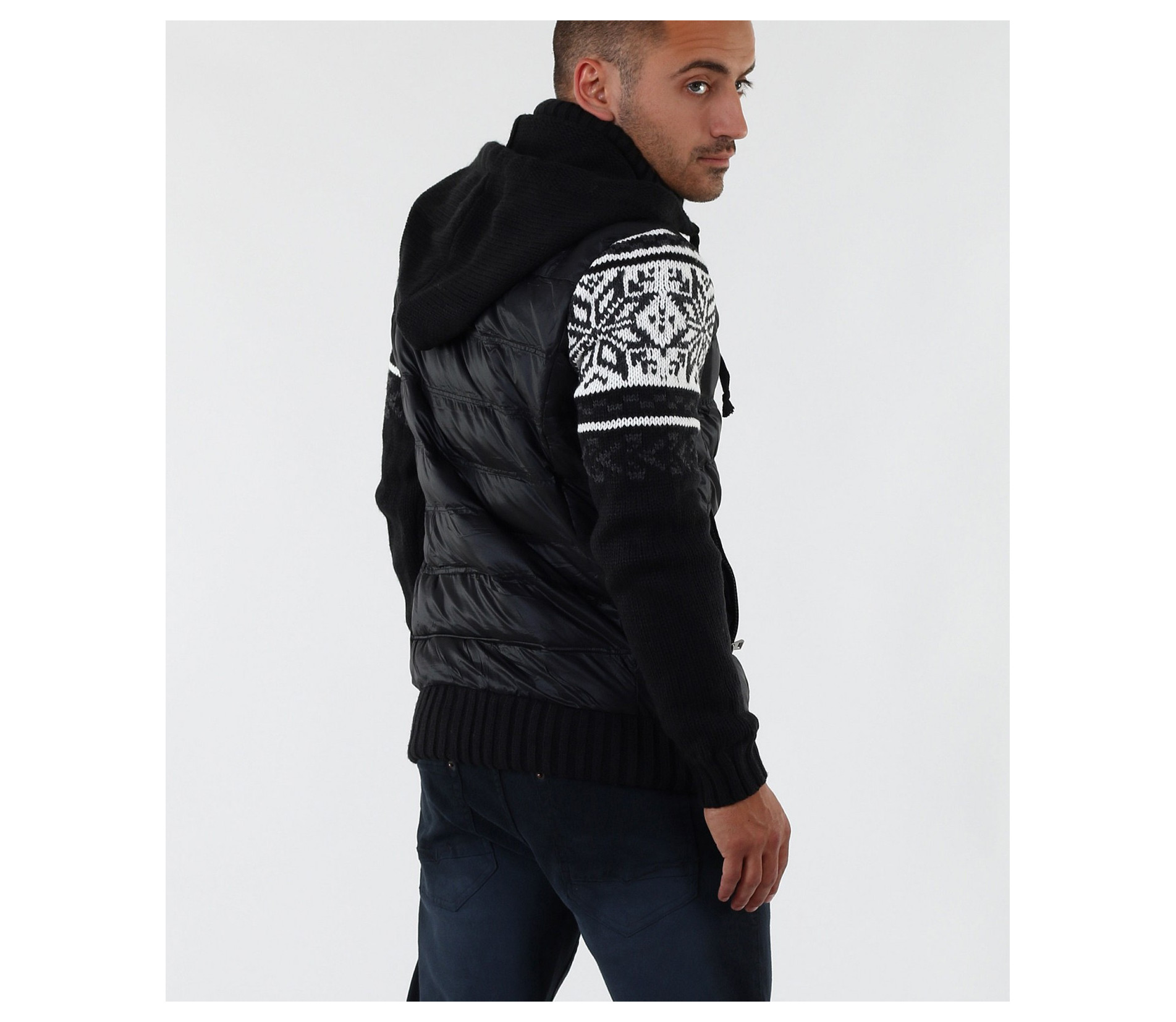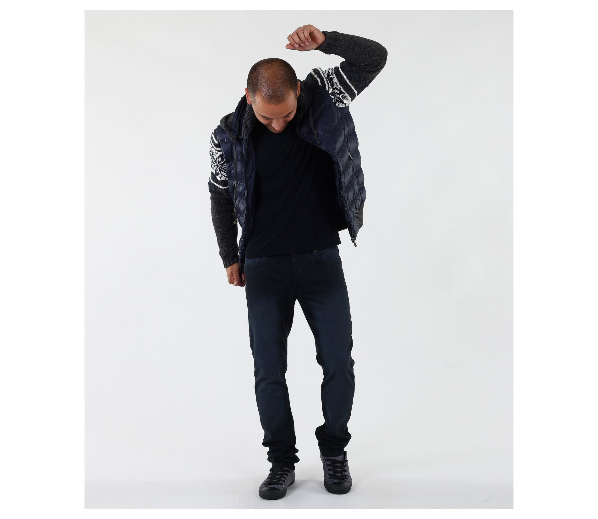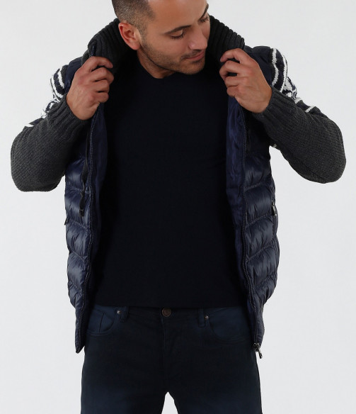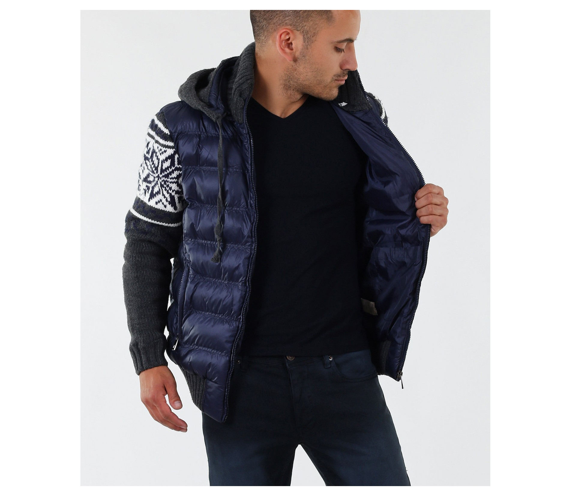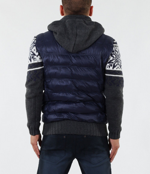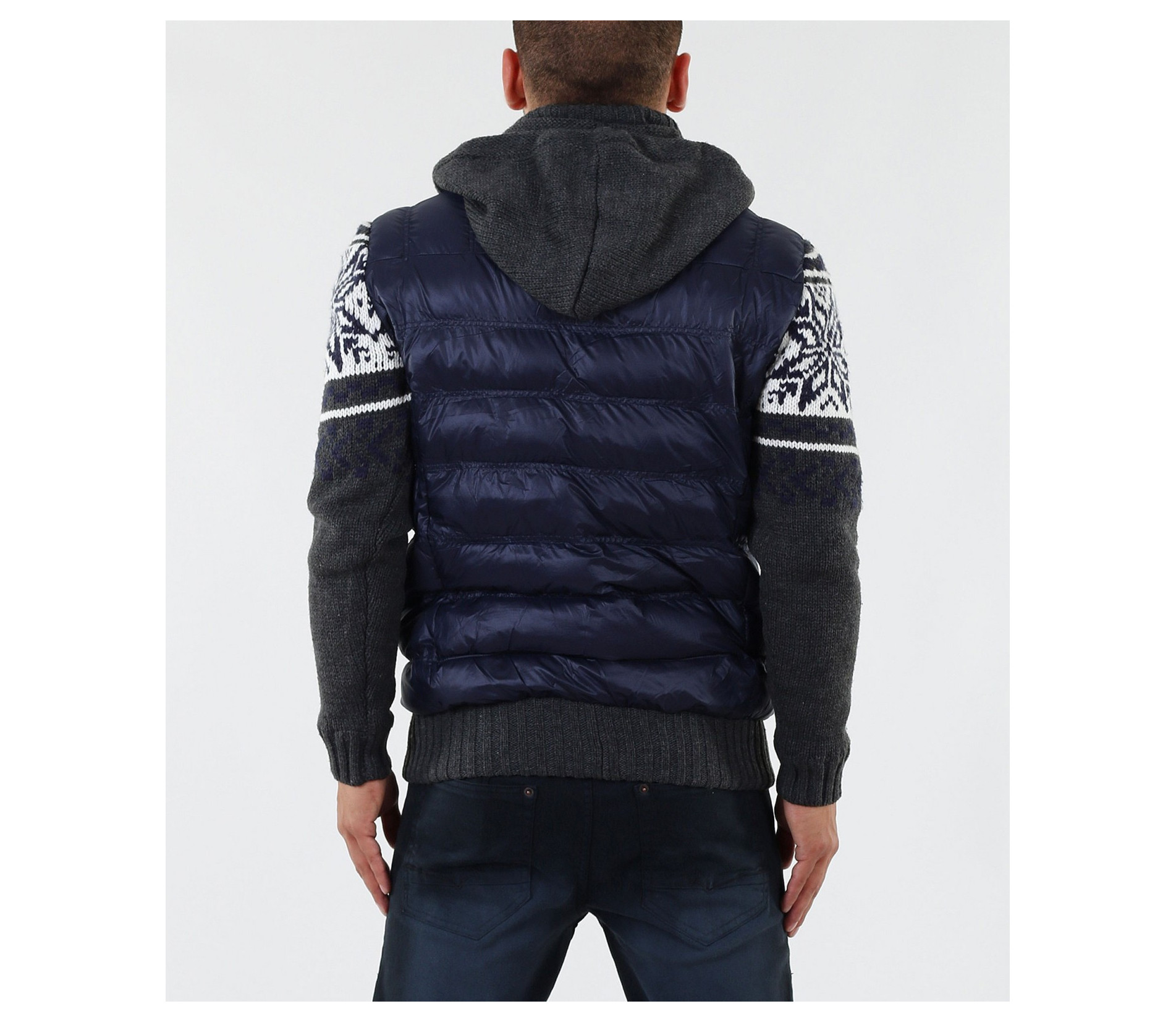 Описание на продукта: Мъжко стилно яке с шушлекова част и плетени ръкави. Изключително интересен модел , подходящ за феновете на модерния и различен стил на обличане. С вталена кройка, стандартна дължина, акцент на ръкавите и качулка с опция за сваляне, този модел яке перфектно завършва визията Ви. Якето се предлага в два цвята: черен и син. В предната част са поставени два дълбоки джоба с цип. Перфектно се съчетава както със стилни дънки, така и със спортно-елегантен панталон. Изработен от 100% висококачествен найлон.