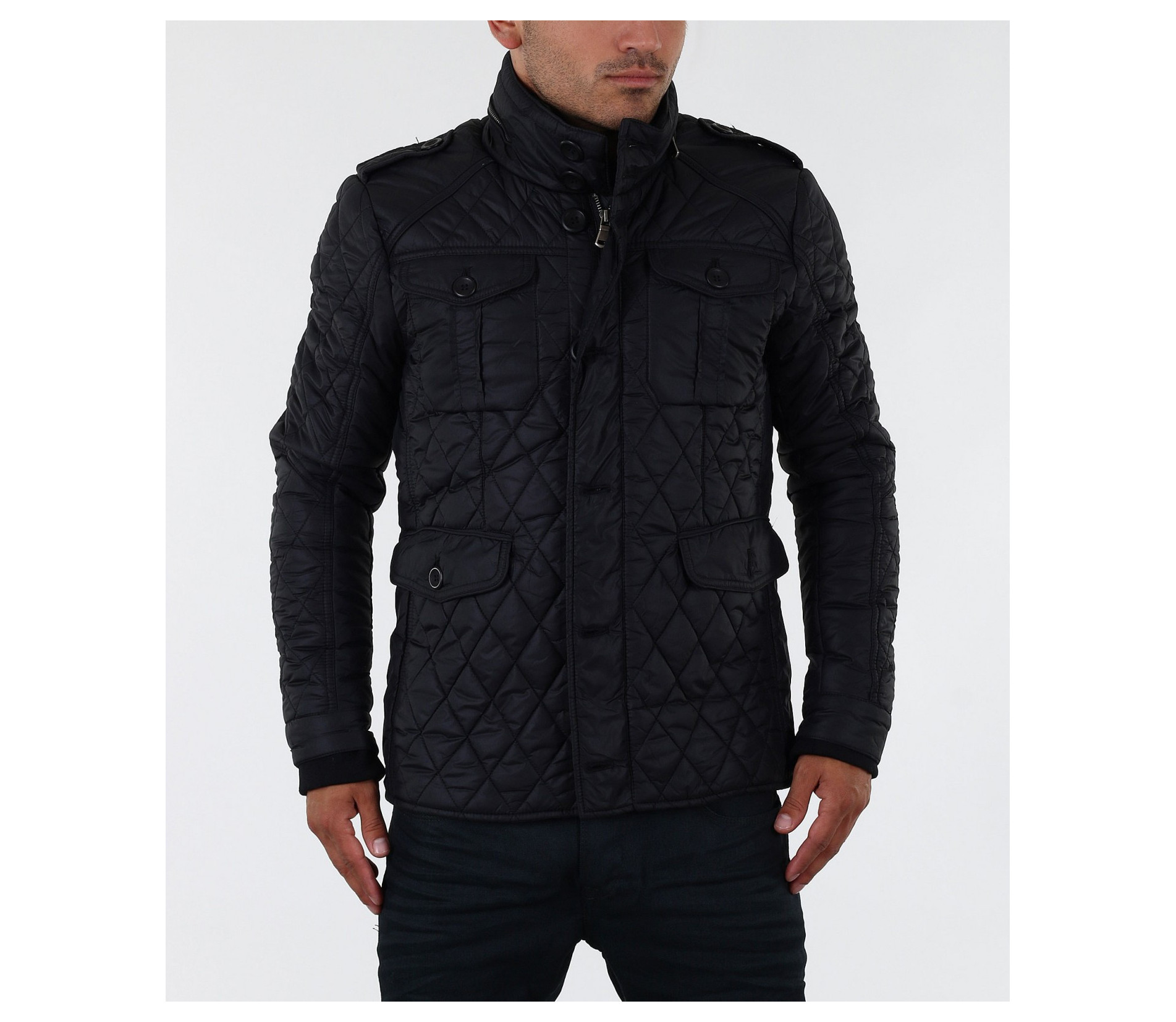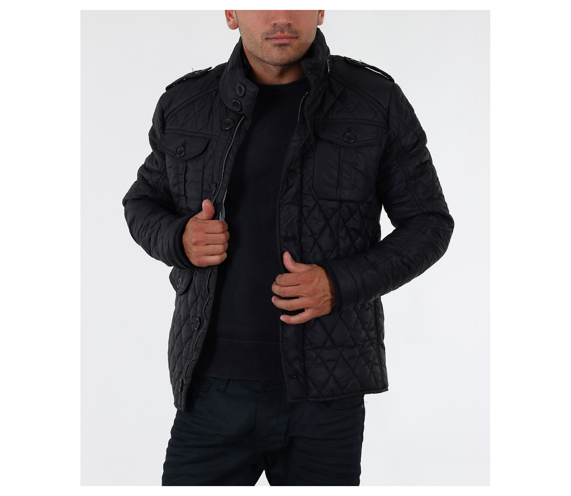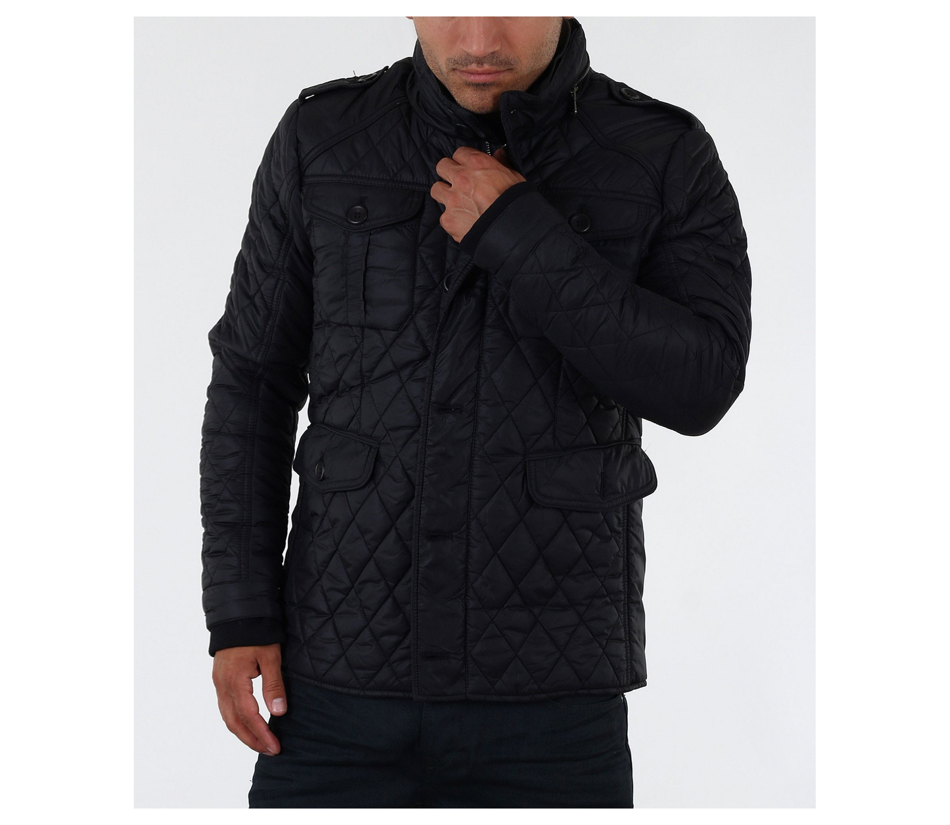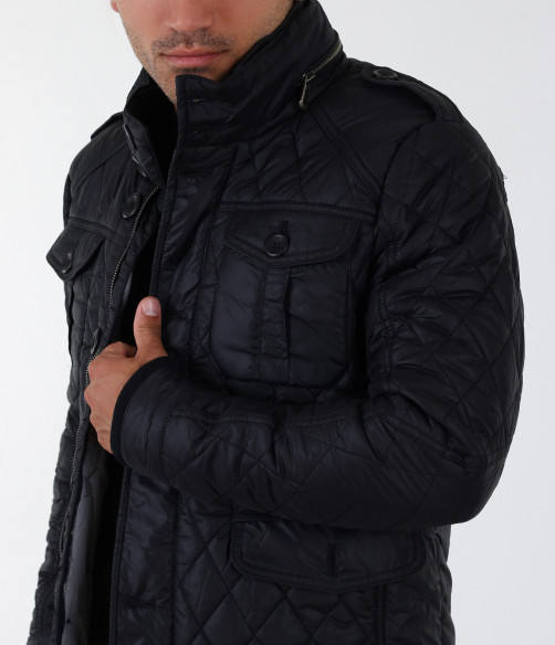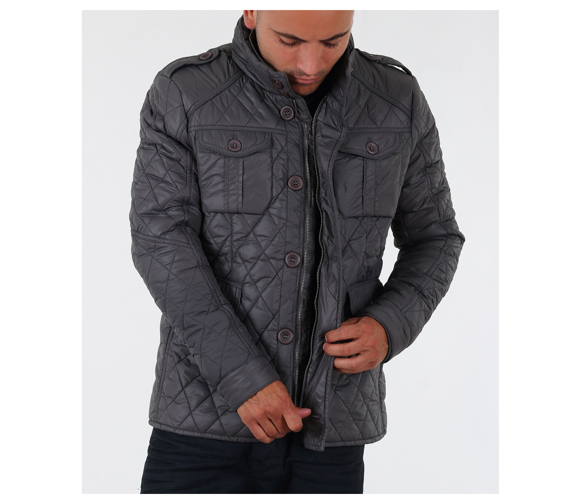 Уникален модел мъжко шушлеково яке с едро набраздена външна част. В областта на гърдите и в долната част на модела са поставени по два джоба с капаче и голямо копче. На ръкавите и раменете са поставени по две ленти декорирано също с големи копчета. Закопчаването на модела с вътрешен цип и големи копчета от външната страна. Този уникален модел яке е с вталена и издължена кройката, наподобяваща спортно сако. Заради спортно-елегантна си визия Ви позволява да го съчетаете както с дънки и спортни кецове, така и със спортно-елегантен панталон и чифт стилни обувки.