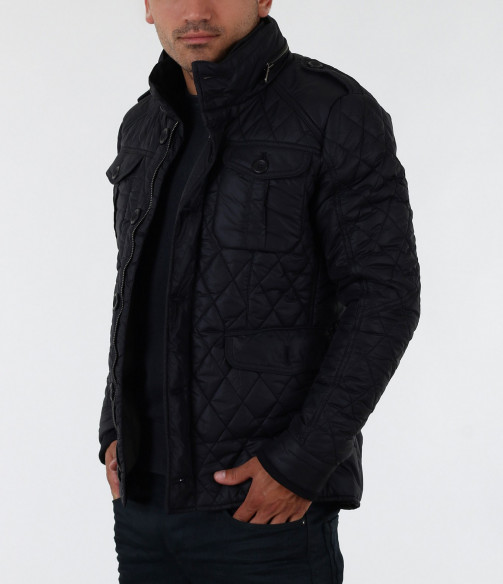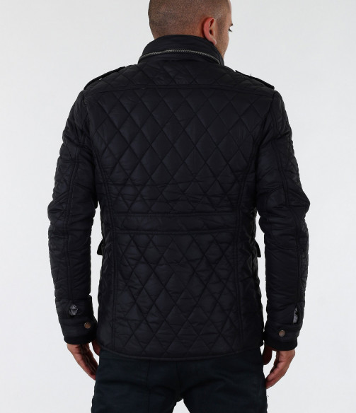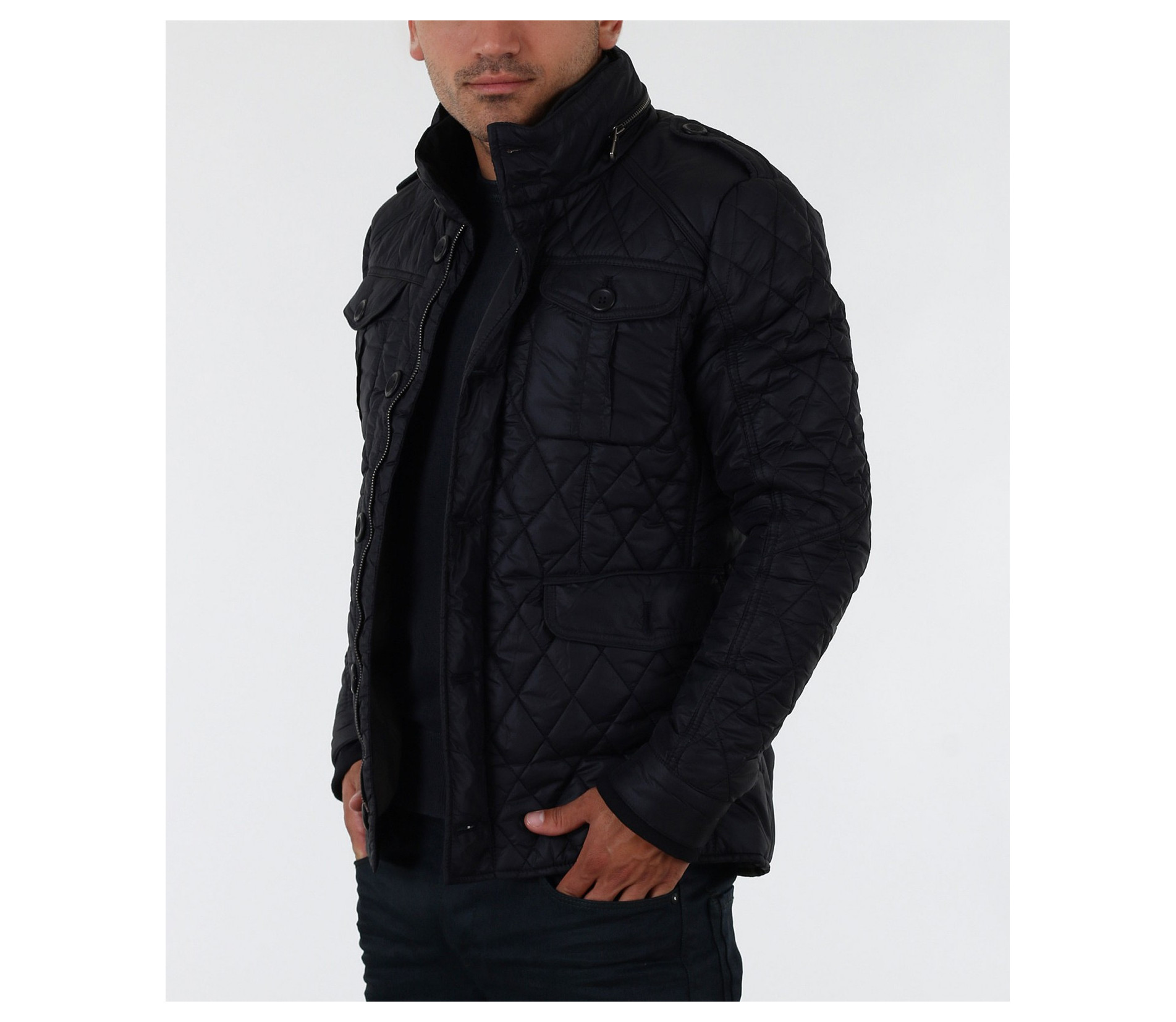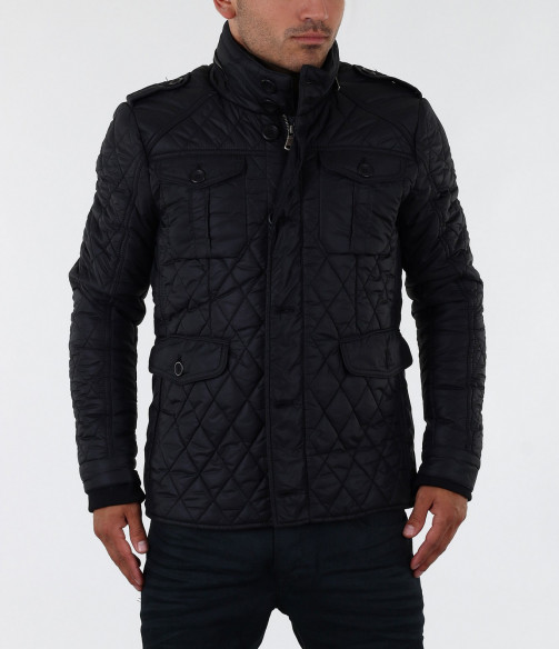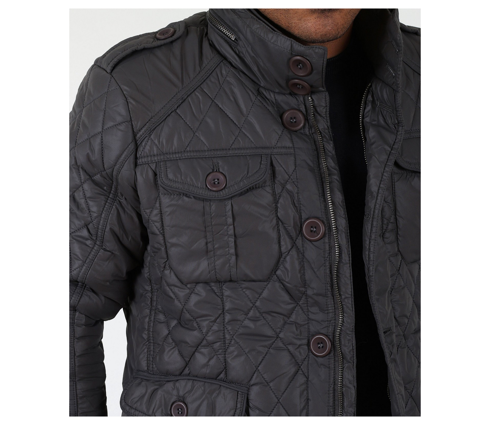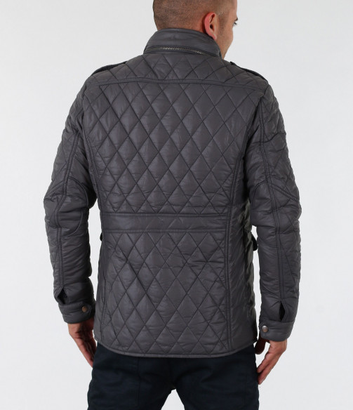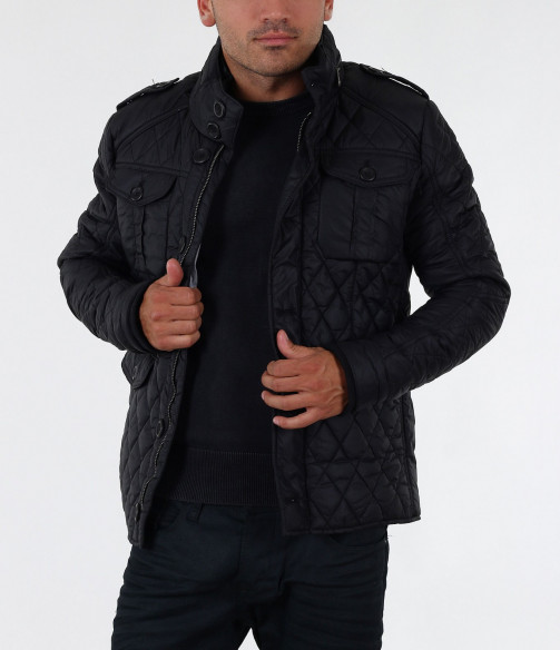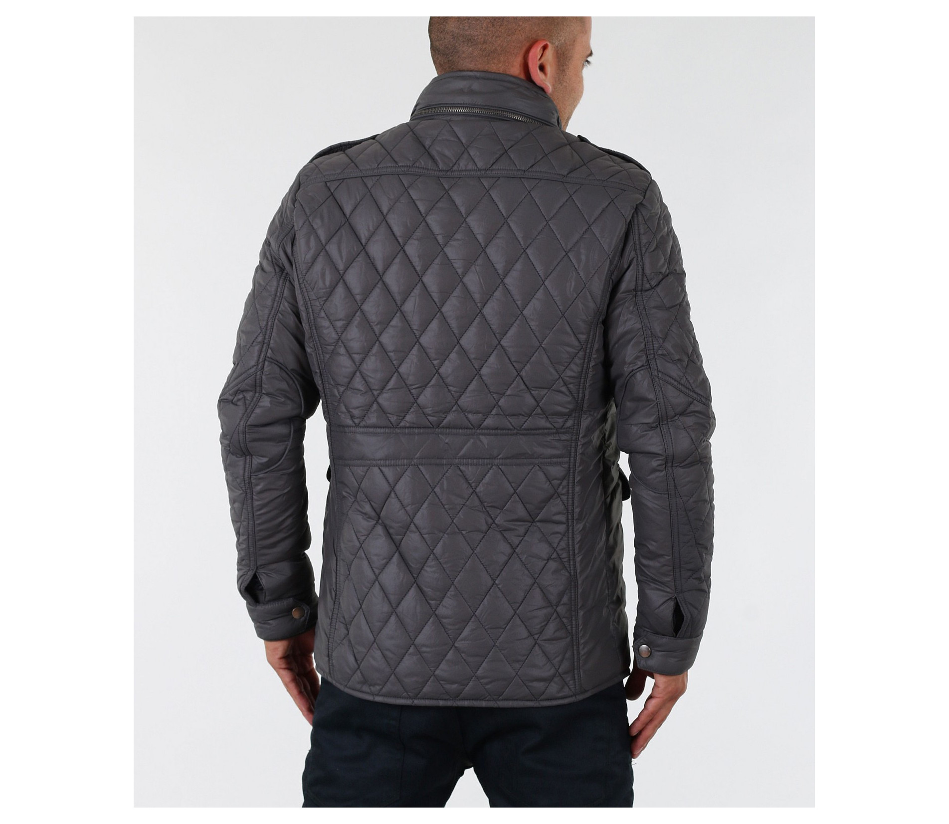 Уникален модел мъжко шушлеково яке с едро набраздена външна част. В областта на гърдите и в долната част на модела са поставени по два джоба с капаче и голямо копче. На ръкавите и раменете са поставени по две ленти декорирано също с големи копчета. Закопчаването на модела с вътрешен цип и големи копчета от външната страна. Този уникален модел яке е с вталена и издължена кройката, наподобяваща спортно сако. Заради спортно-елегантна си визия Ви позволява да го съчетаете както с дънки и спортни кецове, така и със спортно-елегантен панталон и чифт стилни обувки.
