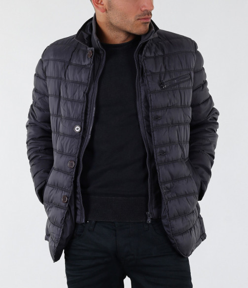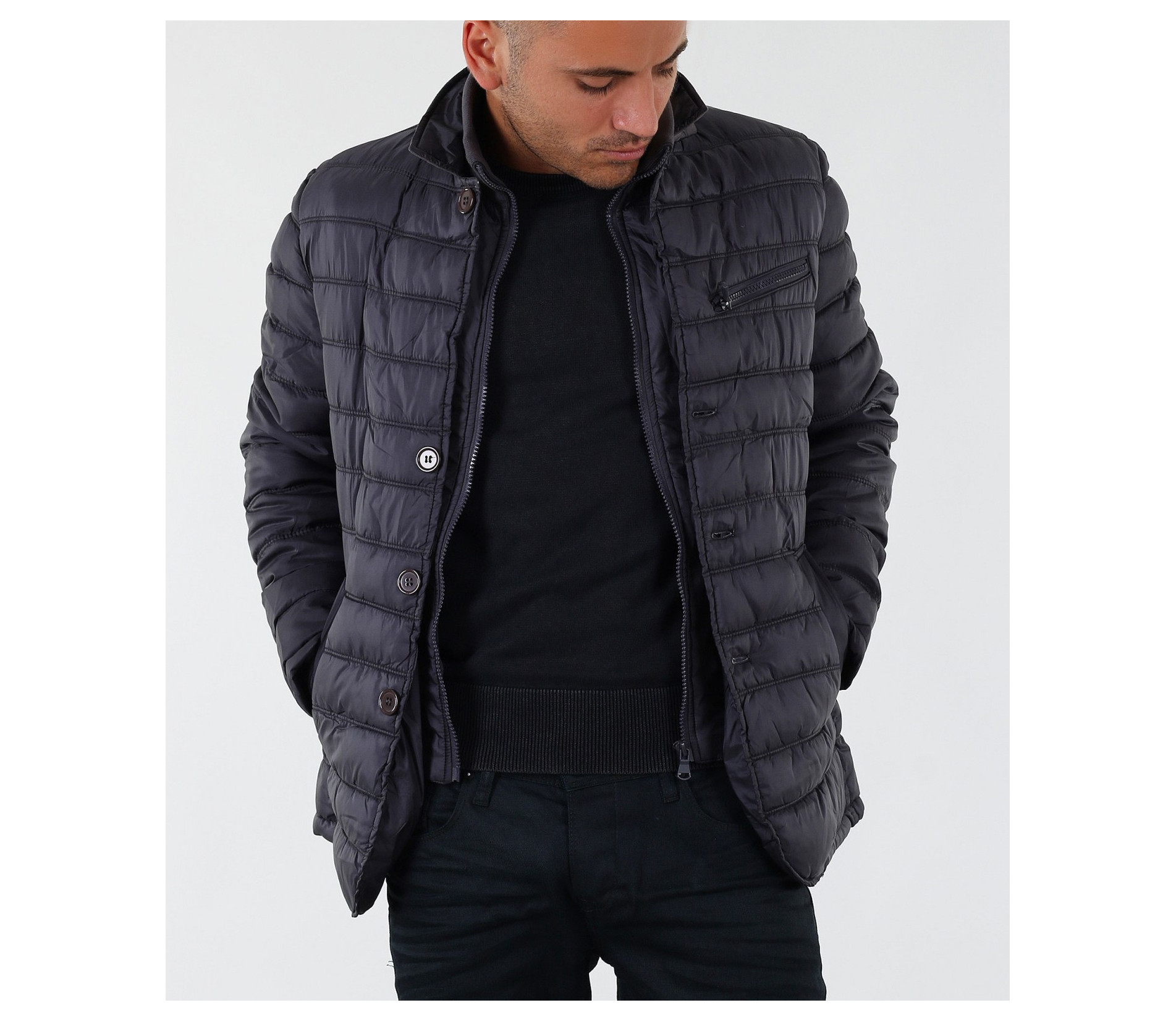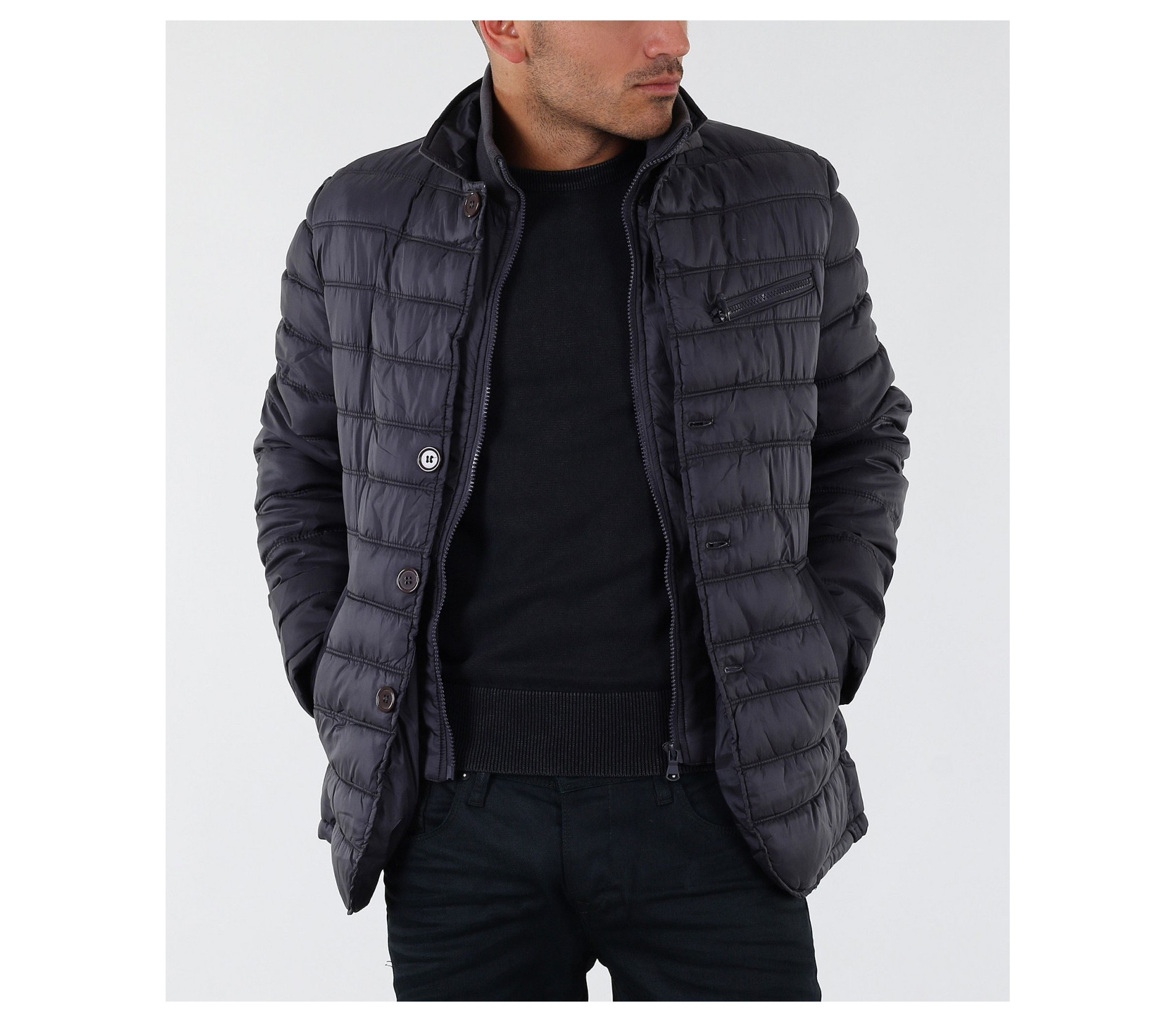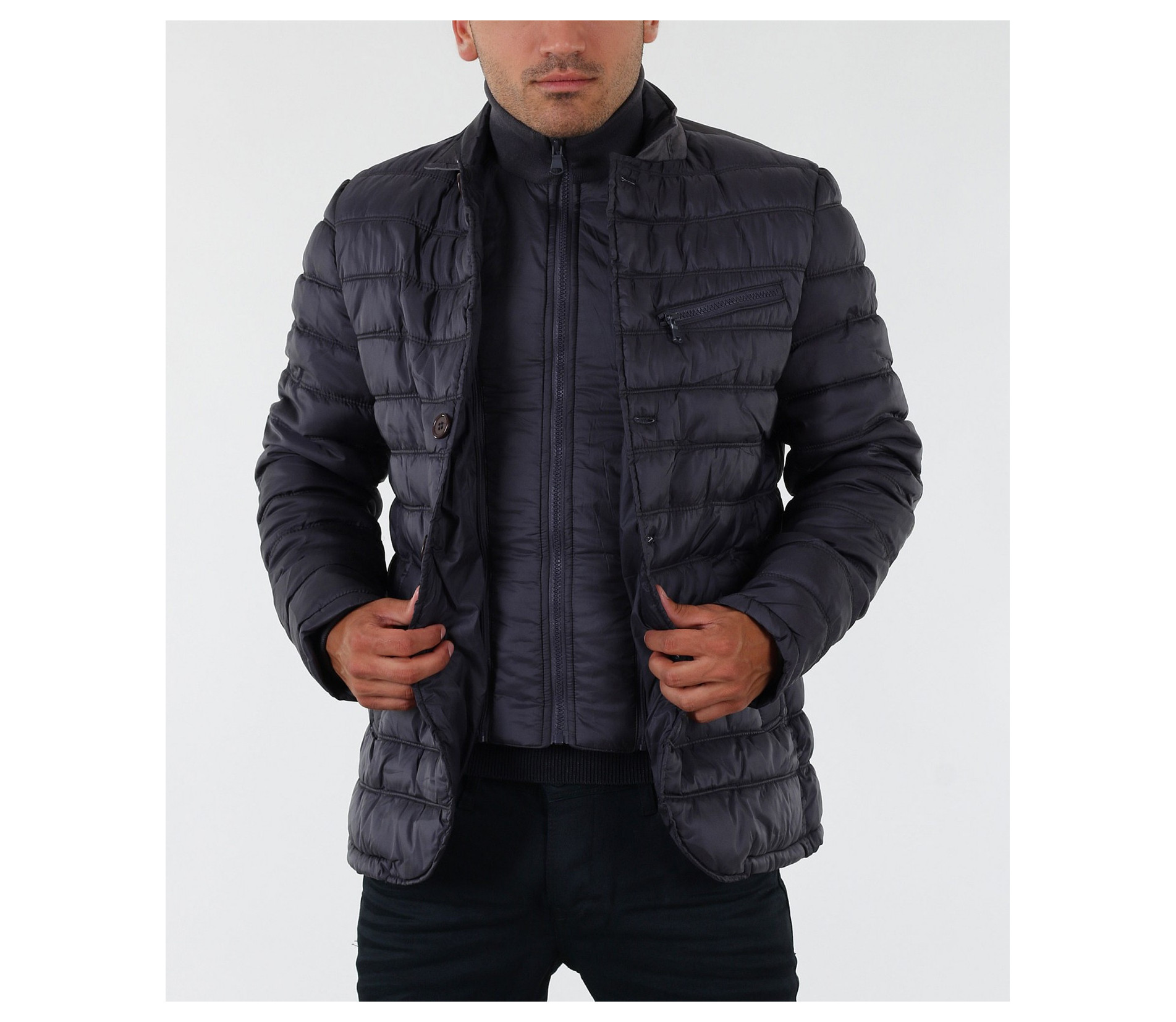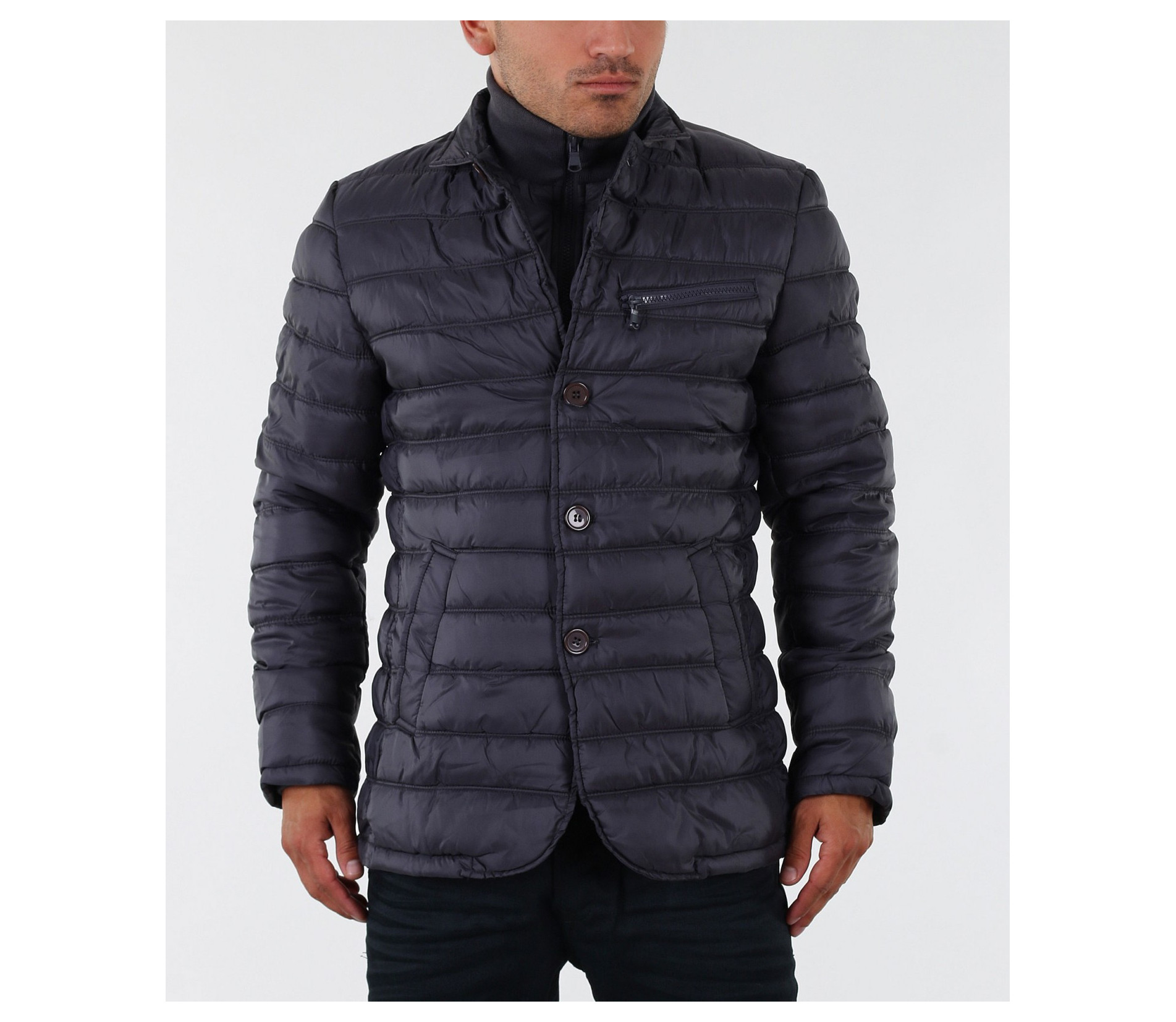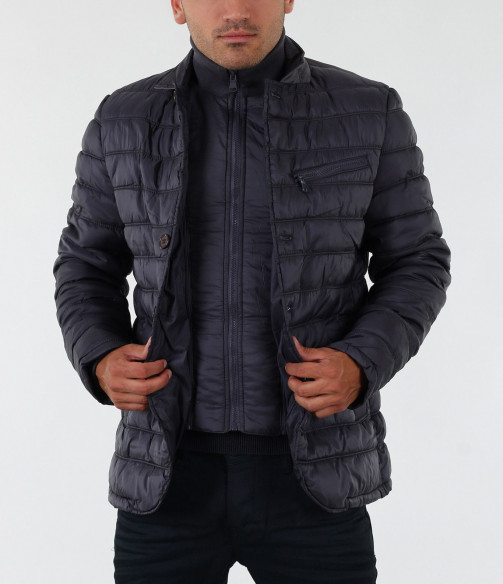Модерно и удобно мъжко яке, тип сако. Цвета му е в така актуалната за зимния сезон тъмно сива гама, което го прави лесно съчетаемо с всякакви дънки и панталони. Дължината на якето е стандартна, кройката е вталена, а закопчаването е с помощта на три големи копчета, типично за едно сако. В долната част на ръкавите има ластик, който е скрит. В задната част на ръкавите има разположени кръпки, които придават акцент. Има два странични джоба,закопчаващи се с копче, и един по-малък джоб с цип, в областта на гърдите. Интересното на този модел яке е свалящата се яка, с помощта на вътрешен цип,което допълнително превръща модела в силно предпочитан.
