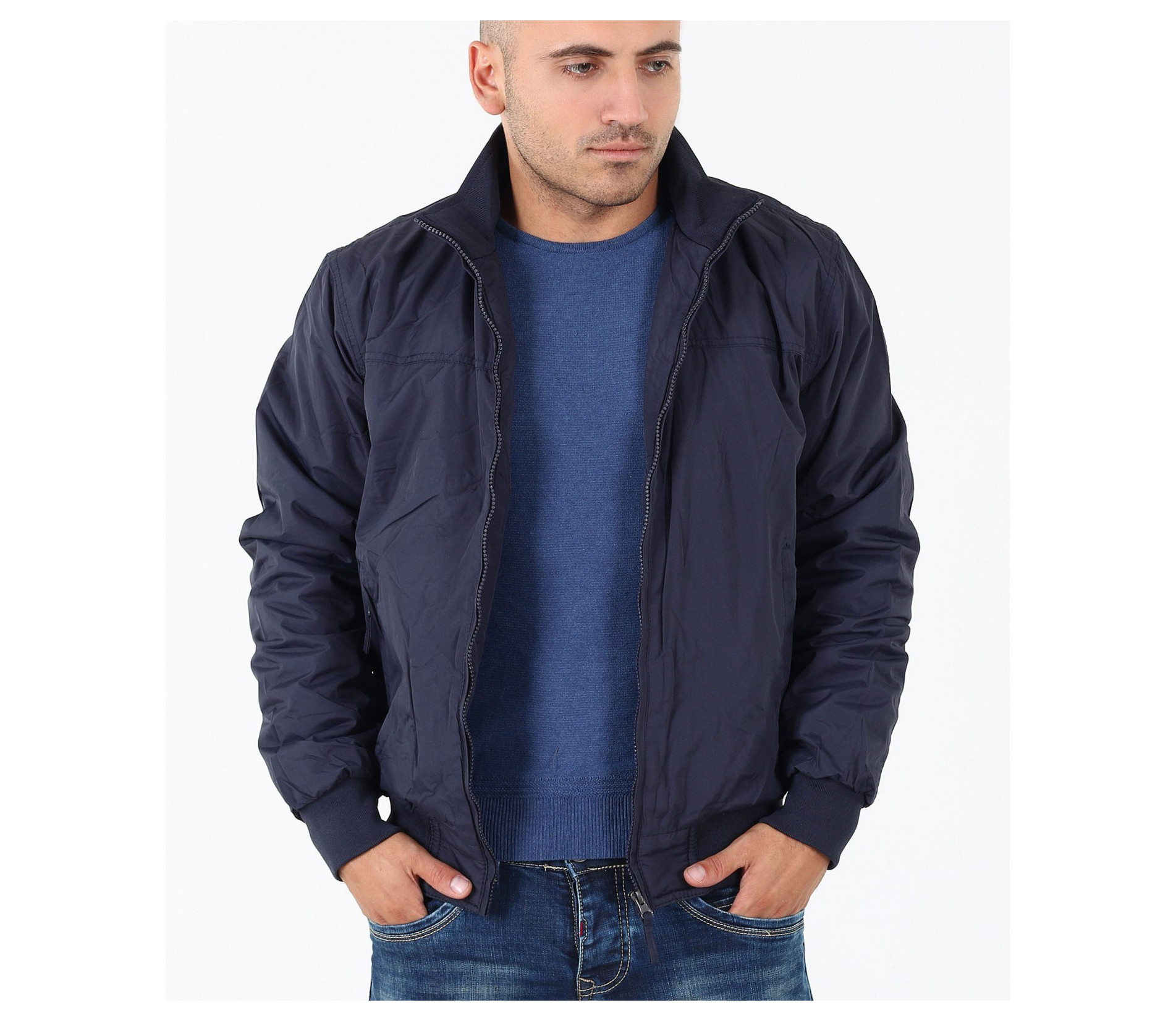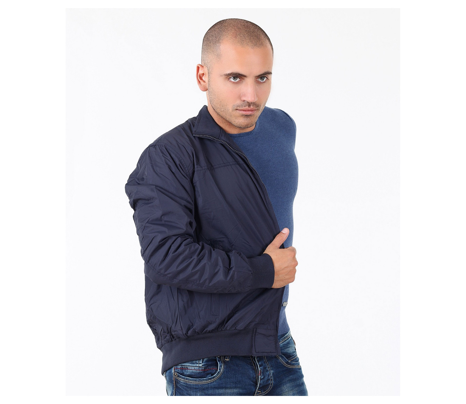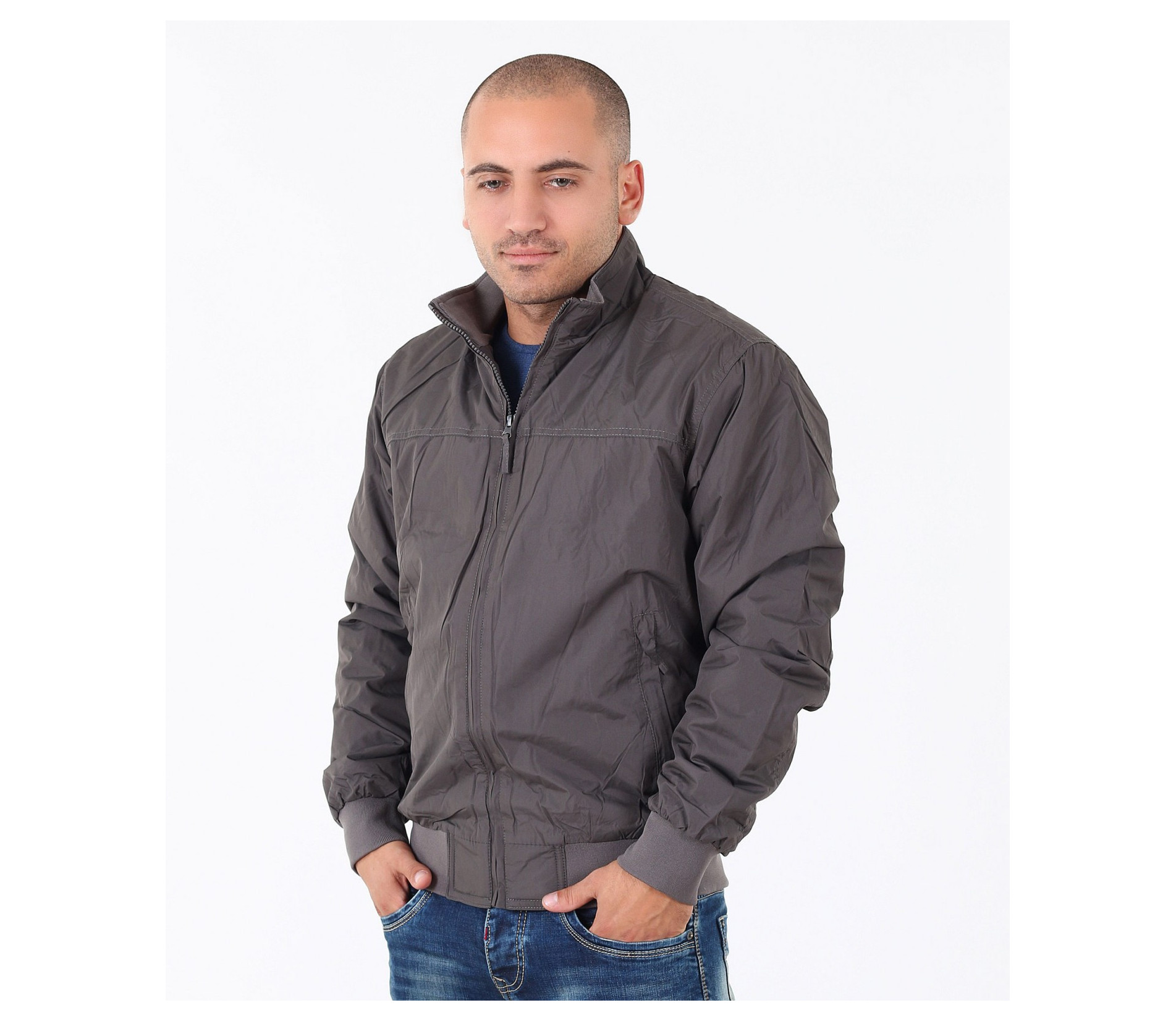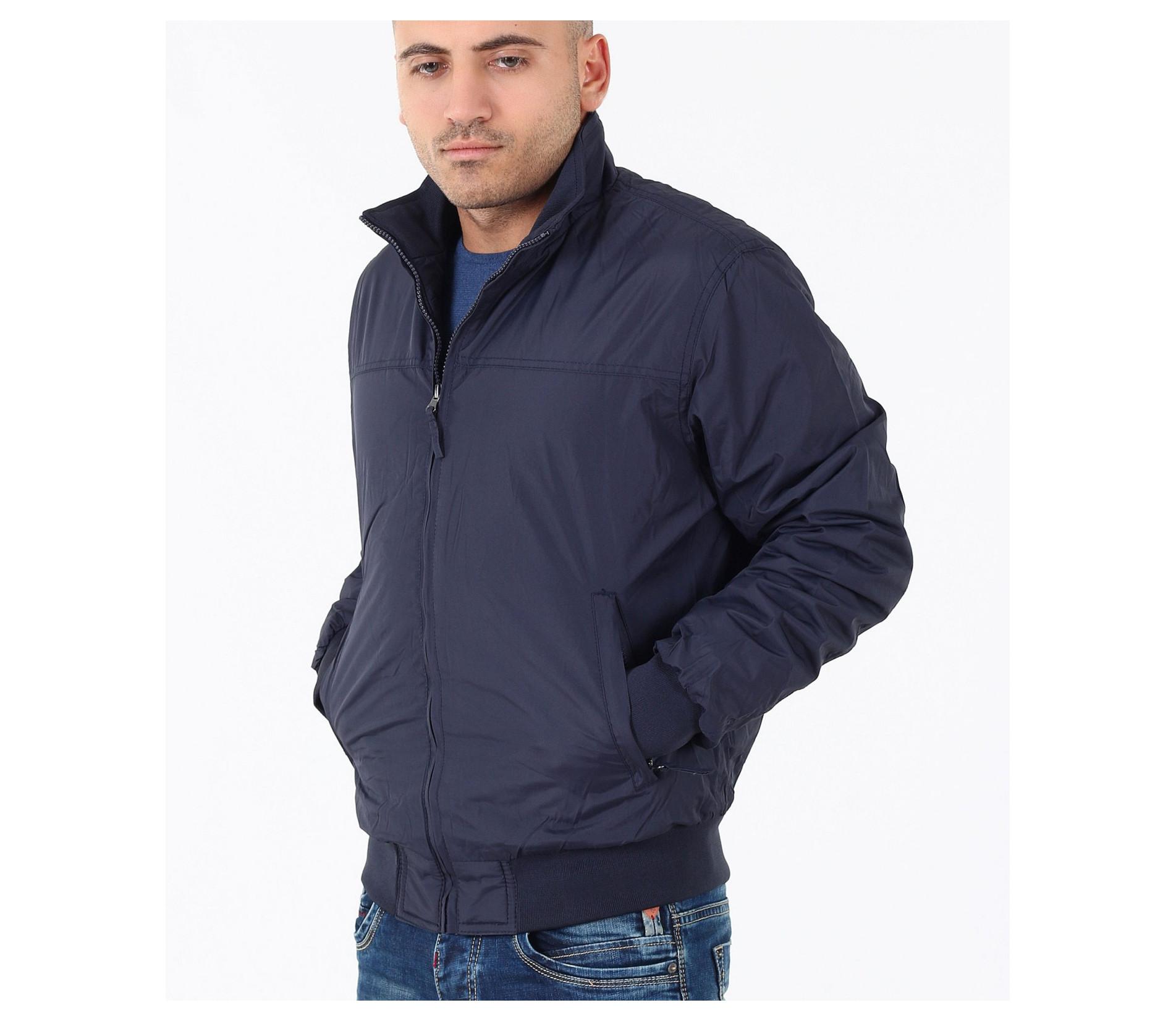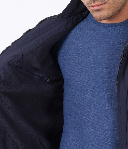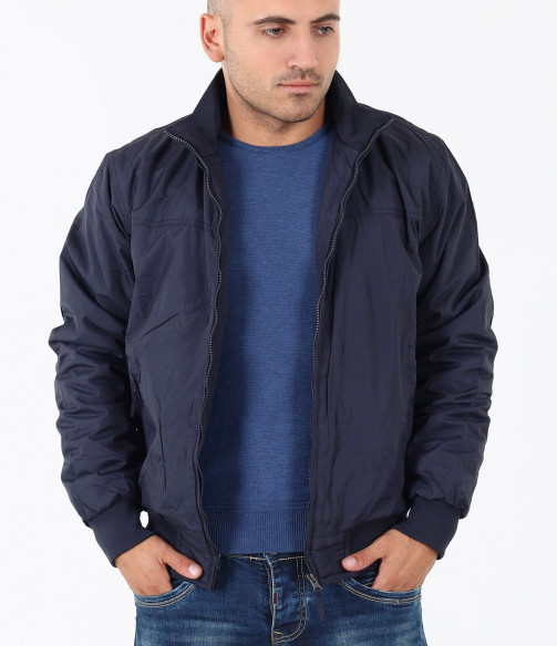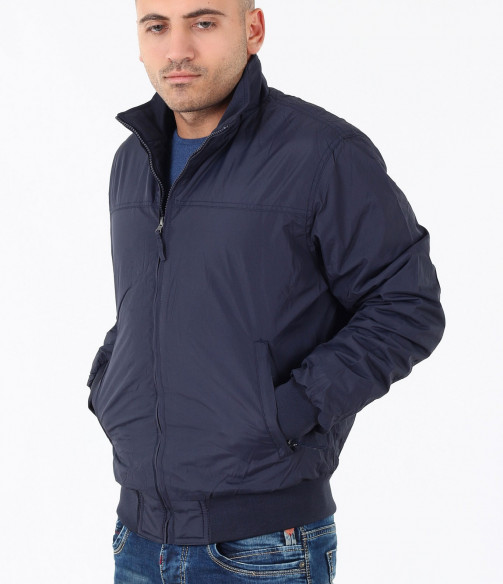 Описание на продукта: Мъжко семпло спортно яке. Този модел се предлага в два актуални за есенния сезон цвята - тъмно син и сив. Якето има напълно изчистен десен, лишен от всякакви щапми, апликации и декорации. Закопчаването е с помощта на цип, който умело е скрин с два канта. Яката е леко повдигната, с цел да предпазва от вятър. Има два удобно поставени джоба, закопчаващи се с цип. В областта на кръста и ръкавите има разположени широки ластици, които прибират модела. Кройката му е леко свободна, създаваща комфорт. Напълно подходящо е за есенно-зимния сезон, в комбинация с подходящи дънки,половер,изчистена тениска и спортни кецове по ваш избор.