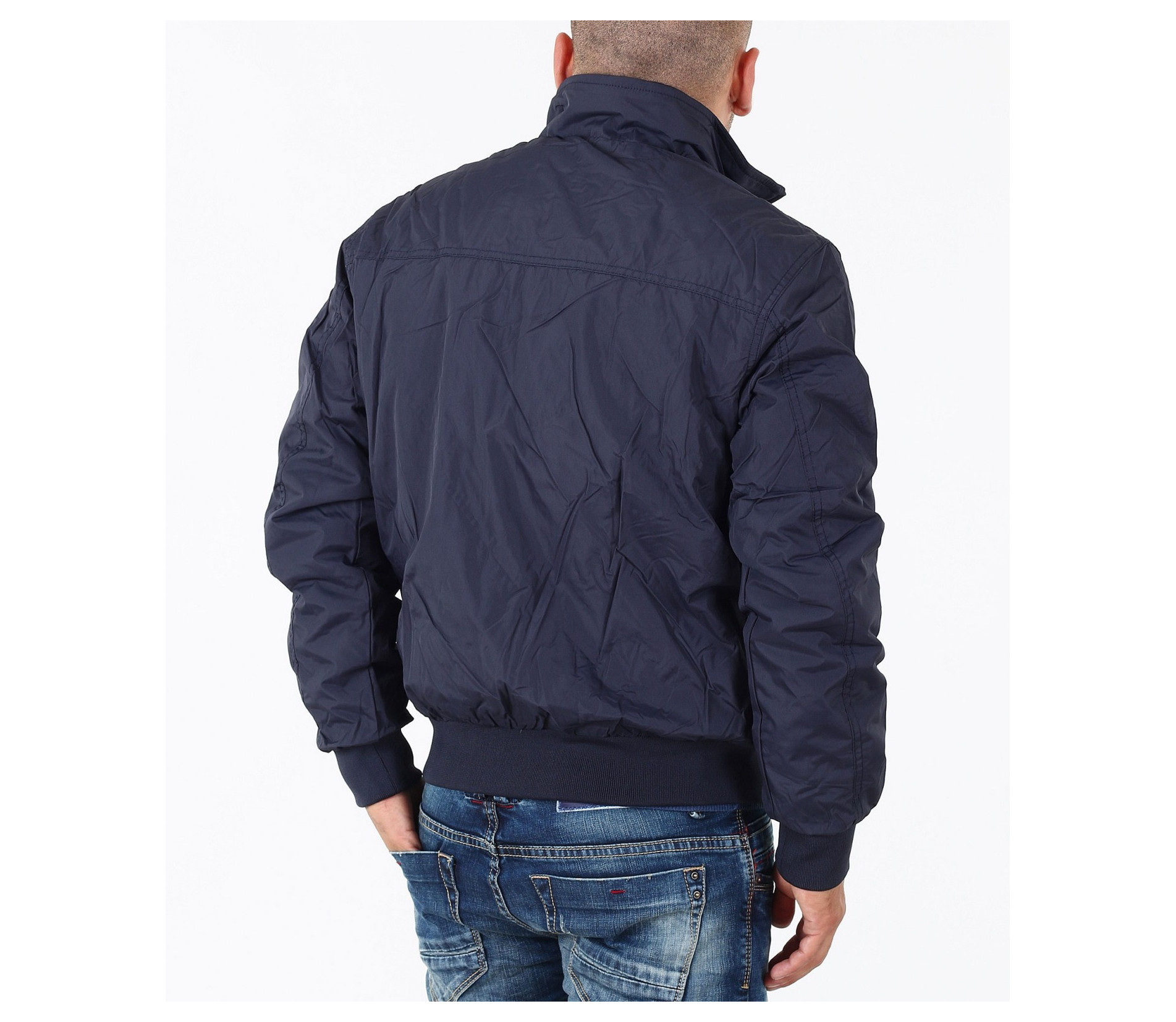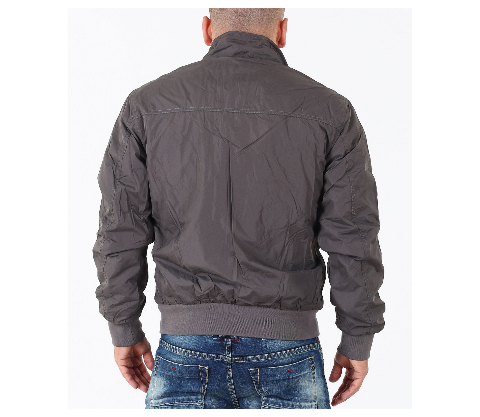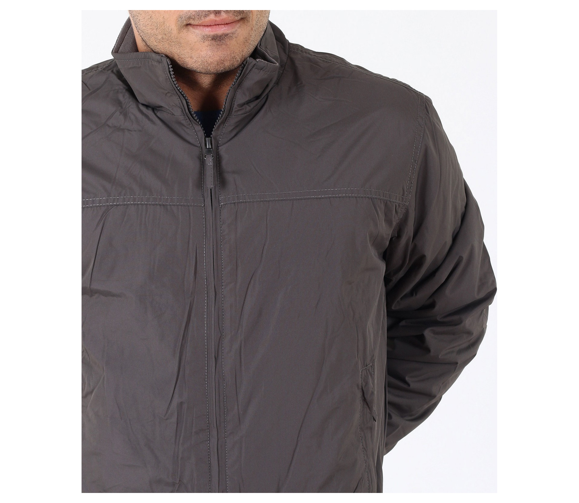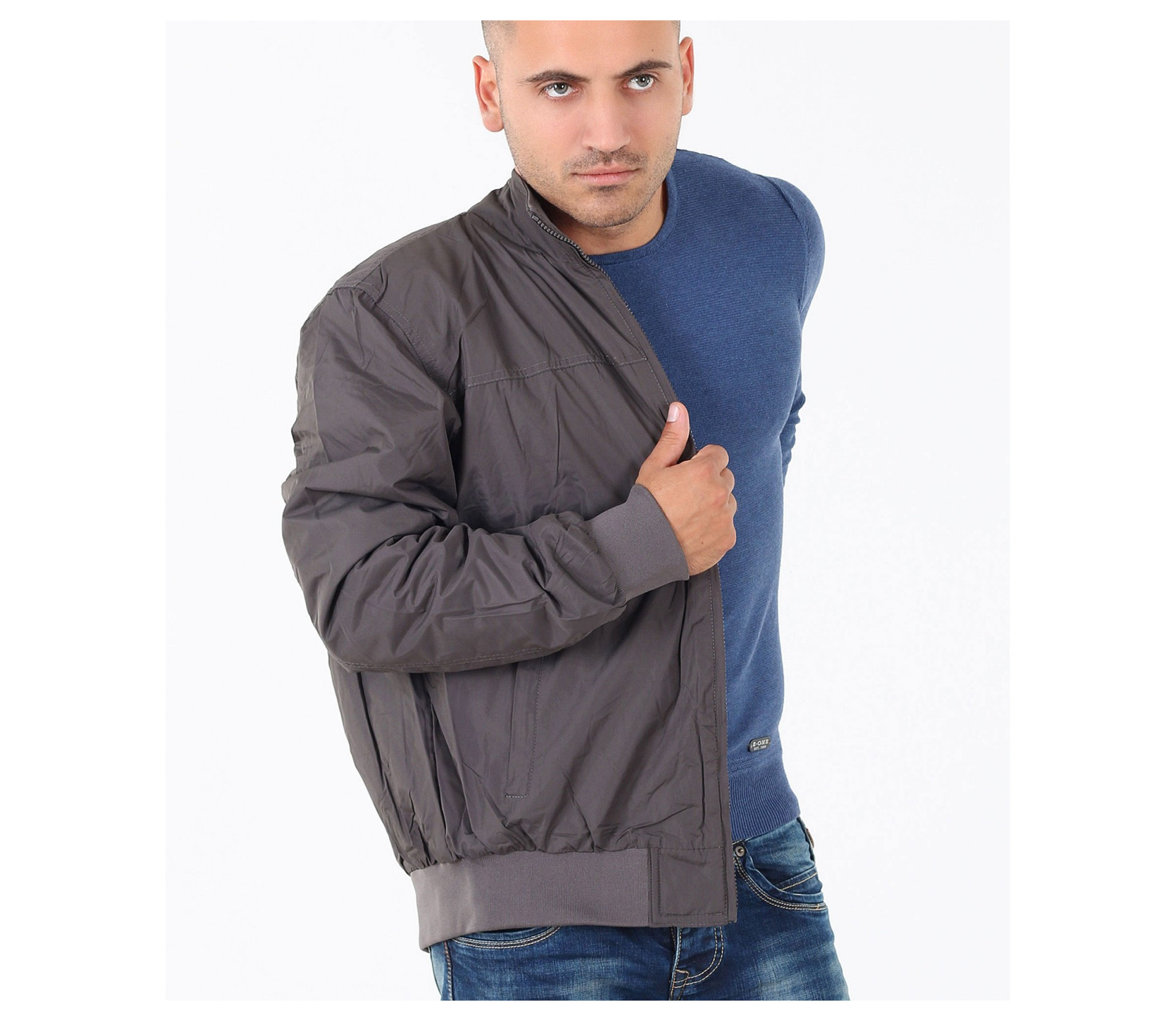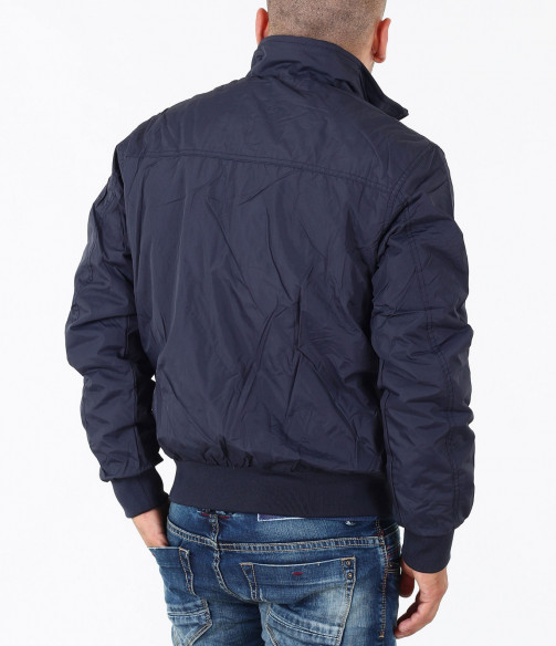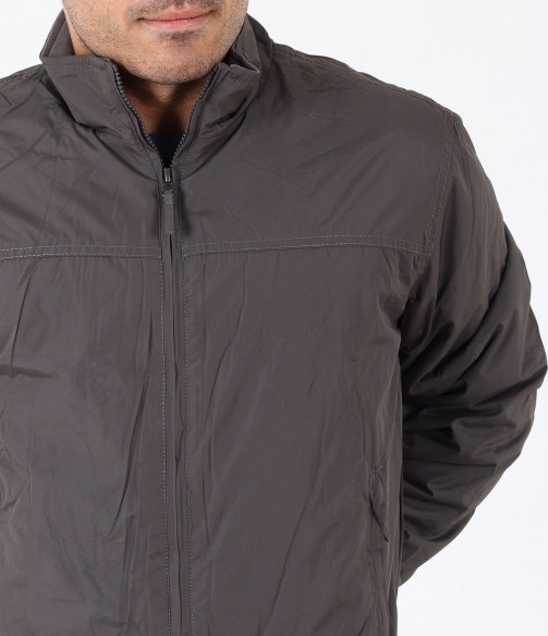 Описание на продукта: Мъжко семпло спортно яке. Този модел се предлага в два актуални за есенния сезон цвята - тъмно син и сив. Якето има напълно изчистен десен, лишен от всякакви щапми, апликации и декорации. Закопчаването е с помощта на цип, който умело е скрин с два канта. Яката е леко повдигната, с цел да предпазва от вятър. Има два удобно поставени джоба, закопчаващи се с цип. В областта на кръста и ръкавите има разположени широки ластици, които прибират модела. Кройката му е леко свободна, създаваща комфорт. Напълно подходящо е за есенно-зимния сезон, в комбинация с подходящи дънки,половер,изчистена тениска и спортни кецове по ваш избор.