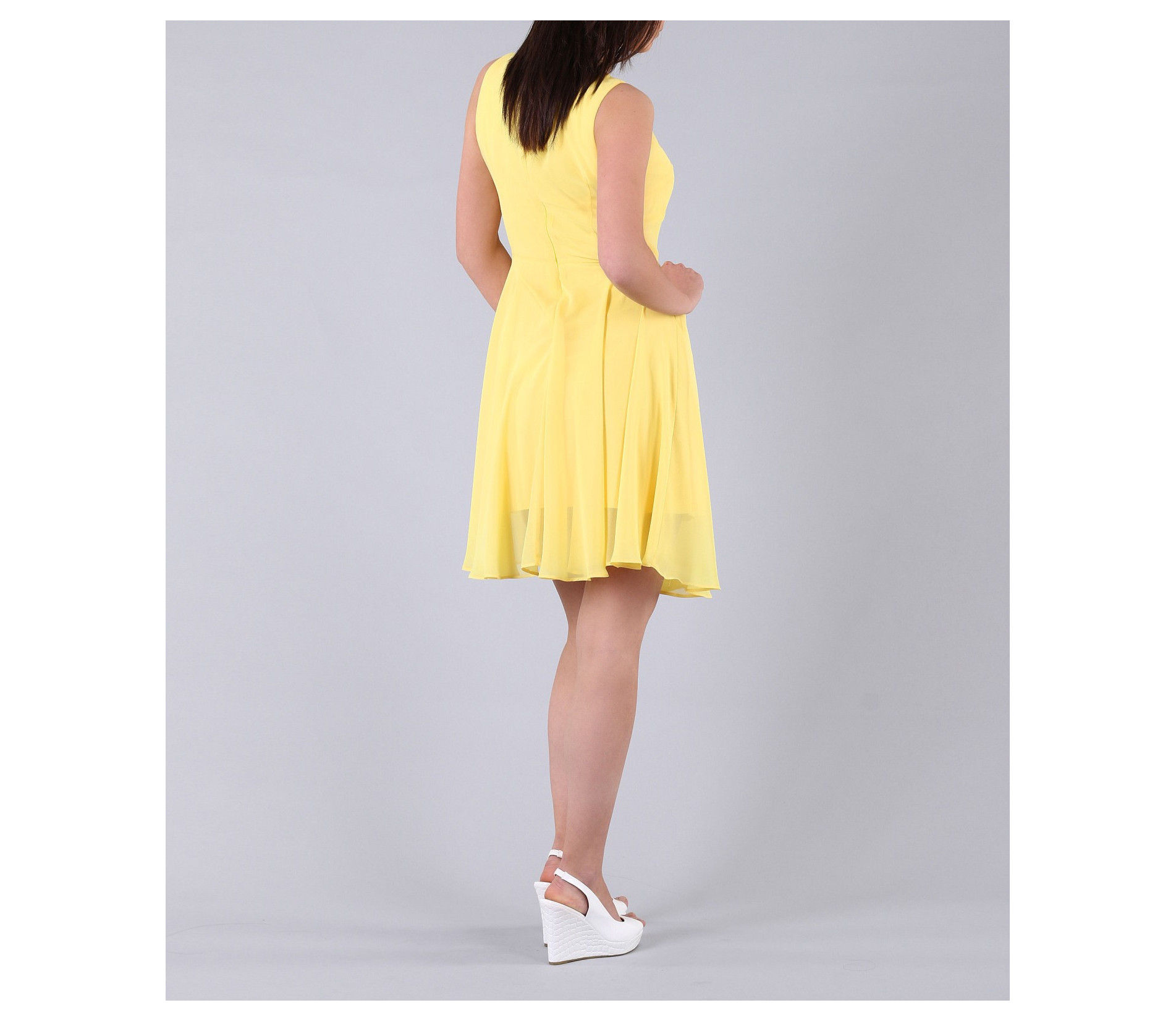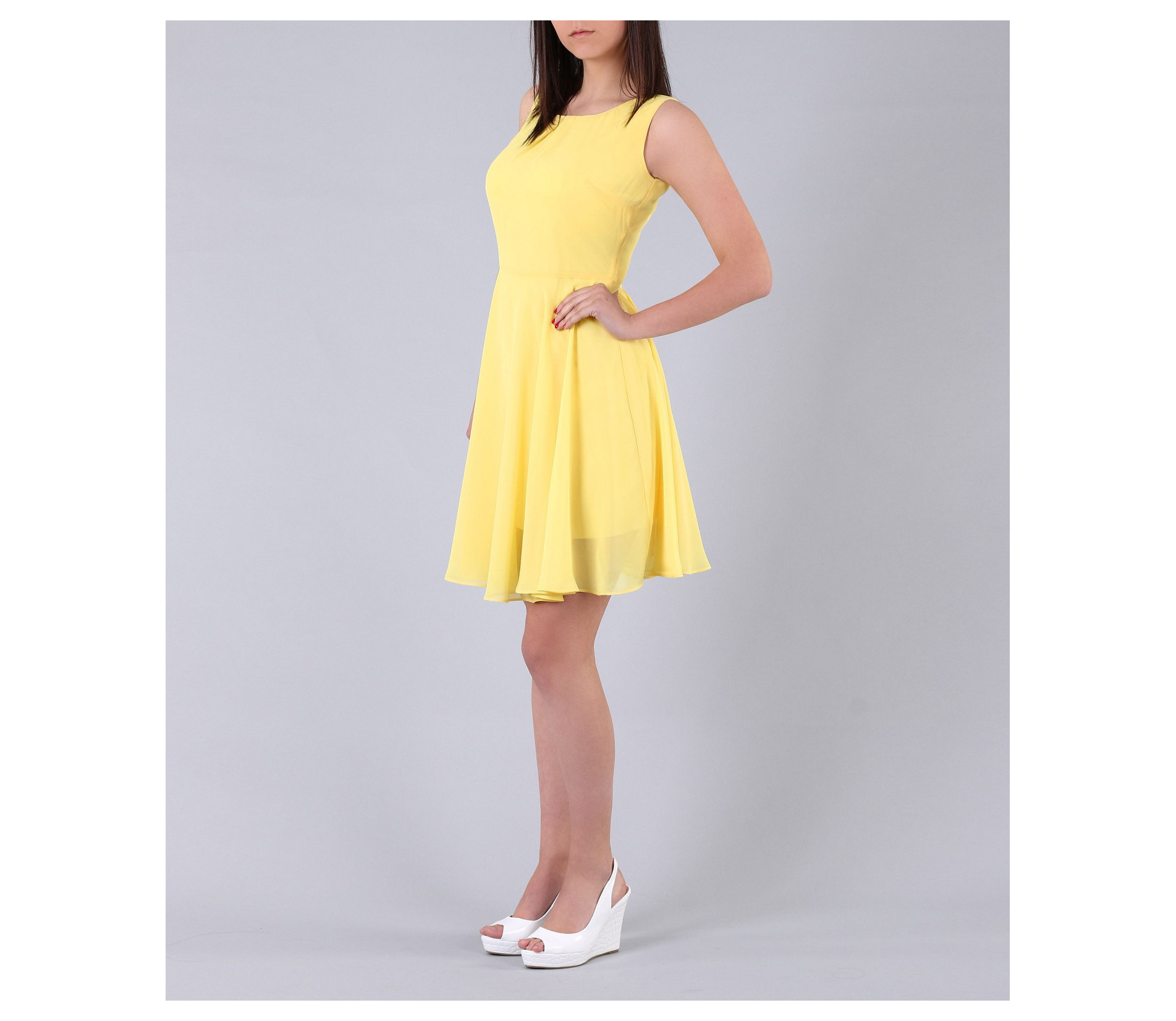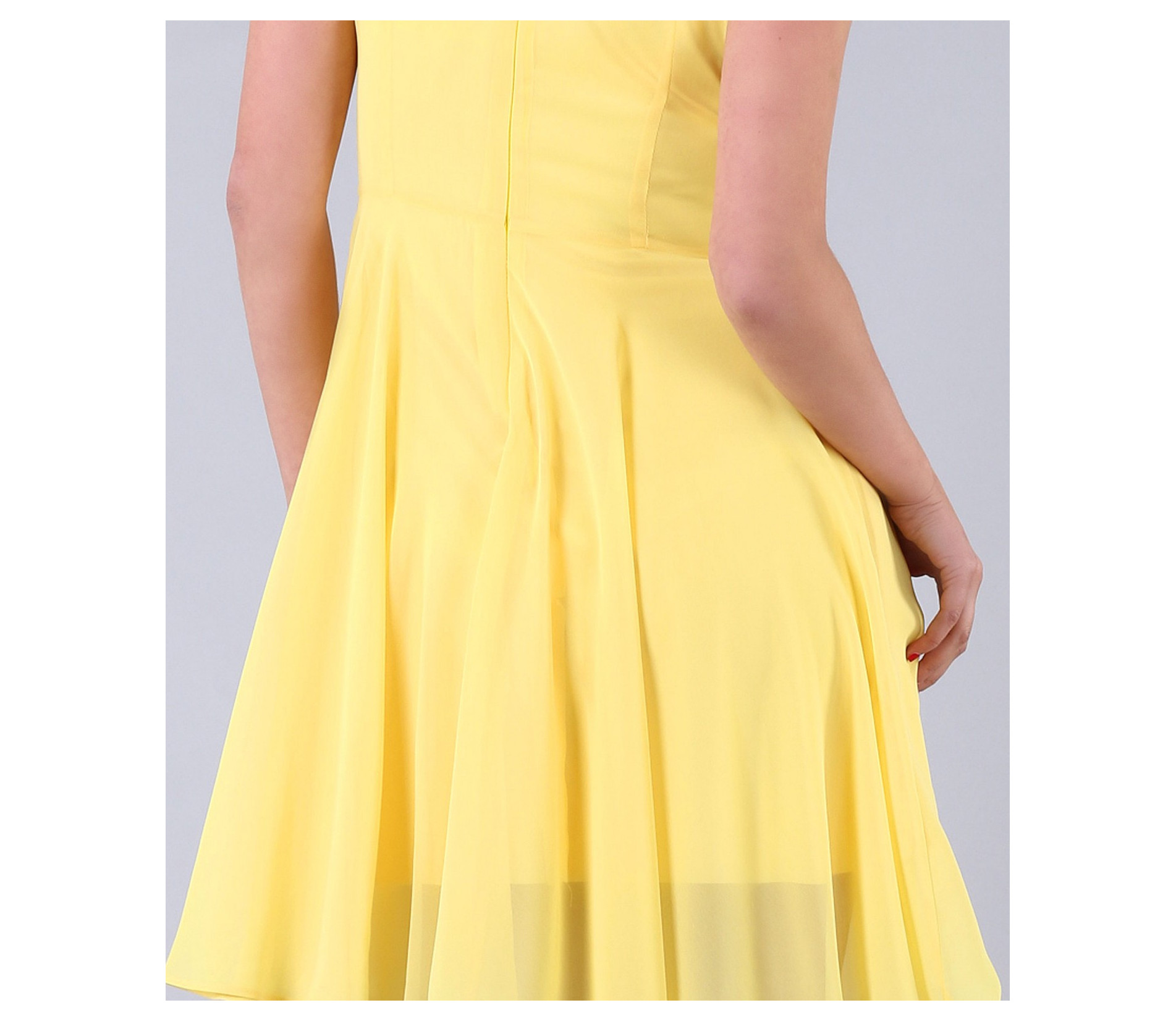 Изчистено,стилно и удобно-най-точното описание за този модел. Ефирно \"разпиляване\"от талията по дължината, прави роклята разчупена и женствена.Нежен прозиращ ефект е акцента на роклята, тактично загатващ и подчертаващ женското тяло.Моделът е изработен от 100%полиестер. Съчетаем е както с ниски, така и с високи обувки, както и различни бижута и аксесоари.
