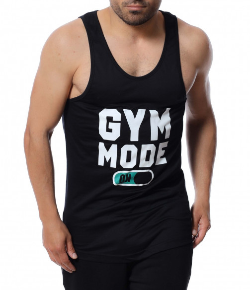 Основата е едноцветна, а в предната част е позиционирана голяма апликация с текст \"Gym mode ON\".