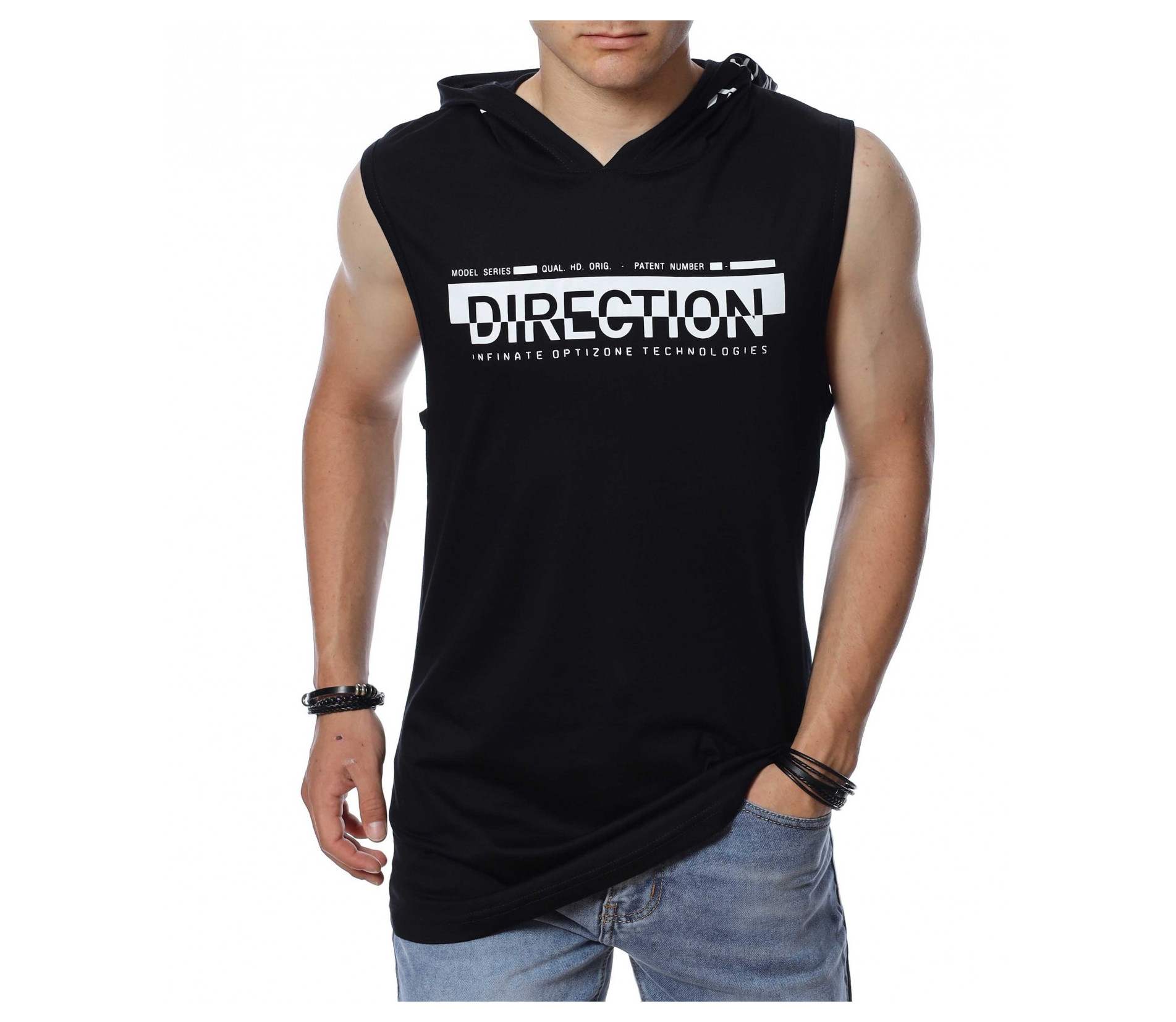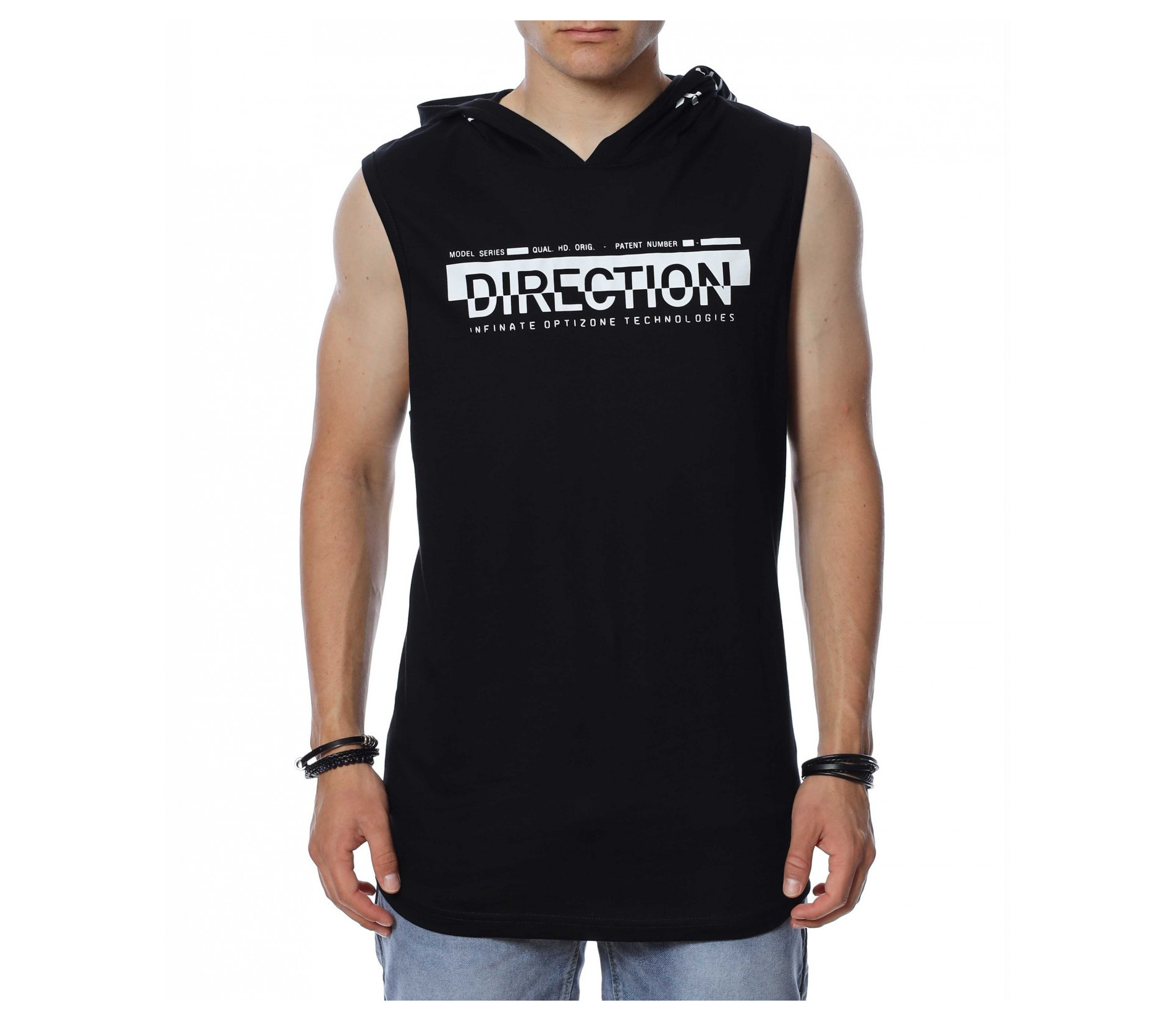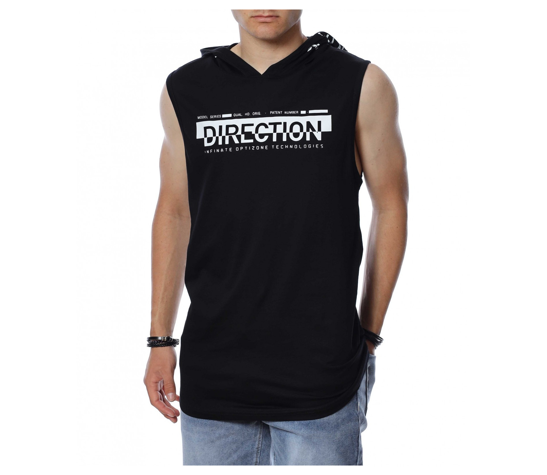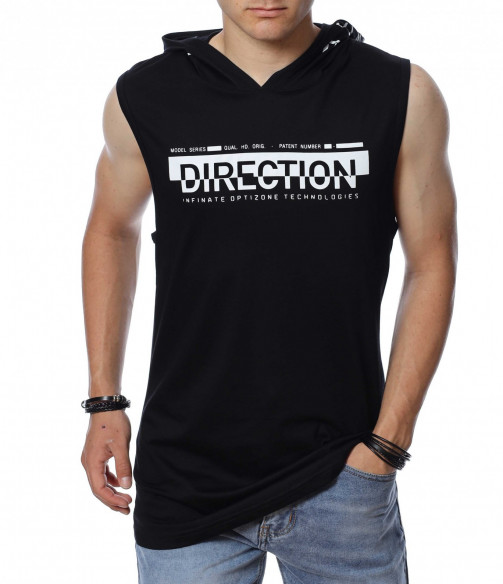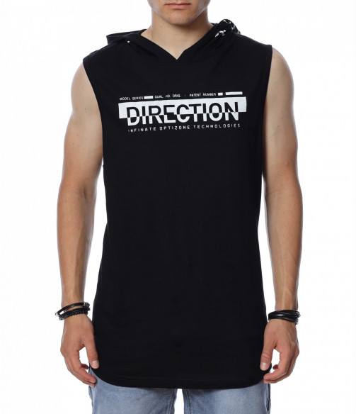 ОПИСАНИЕ НА ПРОДУКТА: С наближаващите горещи дни от 2022 г. Ви представяме една от най-желаните дрехи - потника. Вдъновен от ТОП брандовете за сезона, този модел мъжки потник е изпъстрен в наситено сив или черен цвят, като в принта му се преплита и бяло в съчетание с основния цвят. В областта на гърдите е поставена широка бяла лента, върху която с едри букви е изписано DIRECTION. Гърбът на мъжкия потник e абсолютно изчистен от други щампи, но е раздвижен от атрактивна качулка. Дължината му е издължрна, а кройка леко вталена с овално деколте. Внесете още настроение в гардероба си, като изберете този потник и го комбинирате с нестандартни дълги или къси дънки, спортни обувки и яки аксесоари.