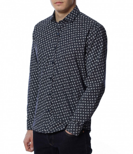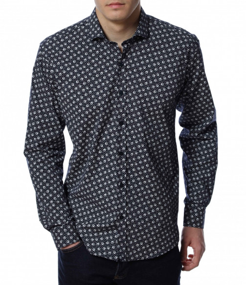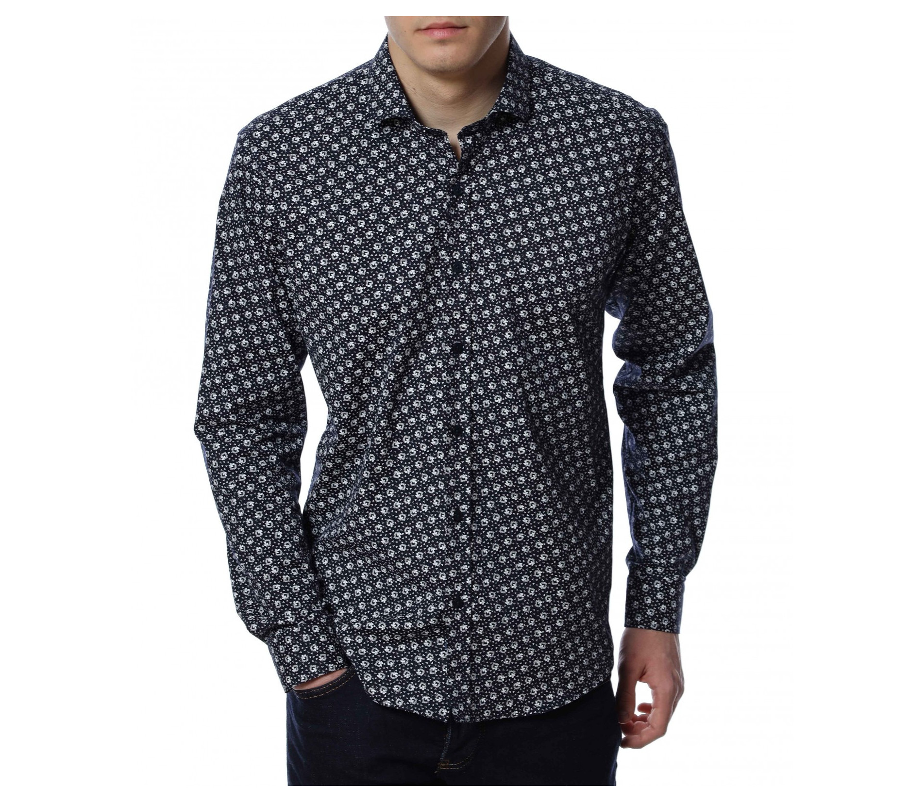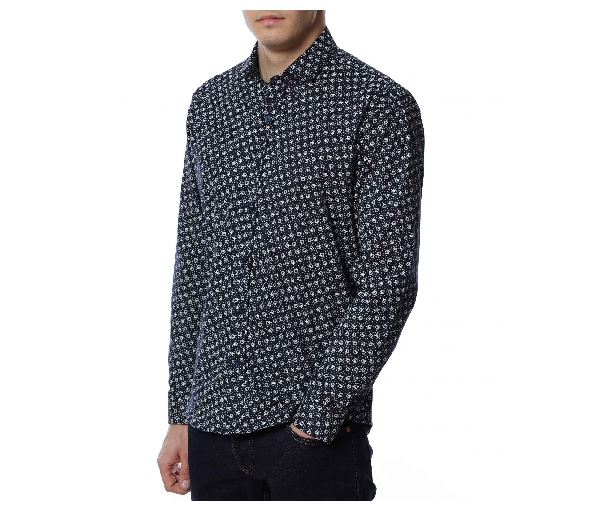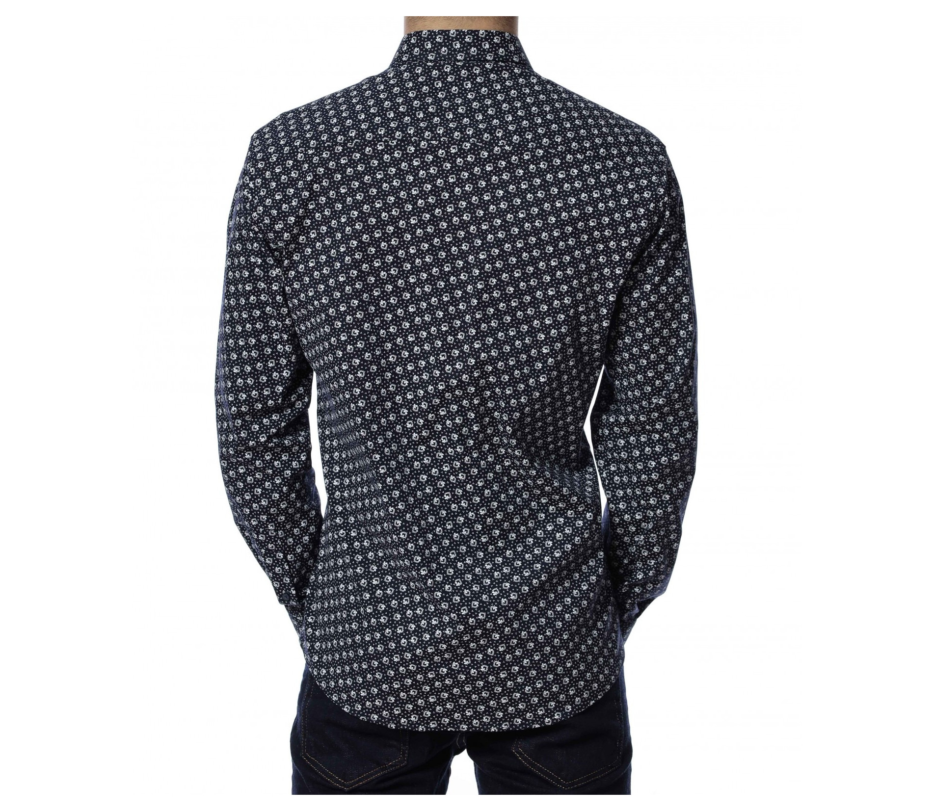 ОПИСАНИЕ НА ПРОДУКТА: Независимо дали в гардеробът Ви виси една риза, или имате цяла колекция от разнообразни модели, ние Ви представяме един модел, който гарантирано ще привлече вниманието. Често се налага да подберете по-елегантен имидж за повод или вечерно излизане, но не откривате подходяща дреха. Този модел мъжка риза е идеално решение за тези моменти. На пръв поглед откривате характерна линия риза, деликатно падаща по тялото и с дължина, подходяща както за външно така и външно носене. Закопчаването е изработено в традиционен дизайн, а именно с копчета в централната част, заемащи цялата дължина. В тандем с тези мотиви е подбрана и яката. Иновативния елемент се явява принта, който е закачлива комбинация между еднотонна основа и закачливи орнаменти, комбиниращи vintage и флорални. Подходяща за комбинация както с панталон, така и с дънки.