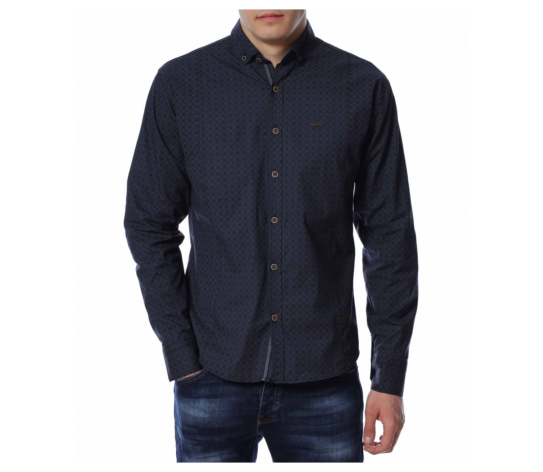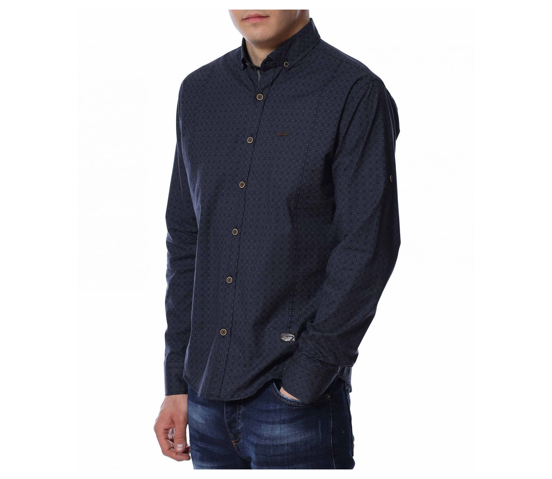 ОПИСАНИЕ НА ПРОДУКТА: Представяме Ви едно уникално и стилно предложение, за Вас мъже. Спортно-елегантна синя риза с декоративни елементи с леко вталена кройка и стандартна дължина, подходяща за външно и вътрешно носене. С перфектна линия и стилен цвят, този модел осигурява впечатляваща визия. Като акцент на моделът е поставена, в областта на гърдите, метална плочка с логото на марката. Закопчаването е стандартно, с копчета до долу. Бъдете смели в избора на дрехи за съчетание, за да получите перфектен и уникален сет, подходящ за всеки повод. В комбинация с чифт стилни дънки или панталон, обувки и колан, получавате забележителна визия.