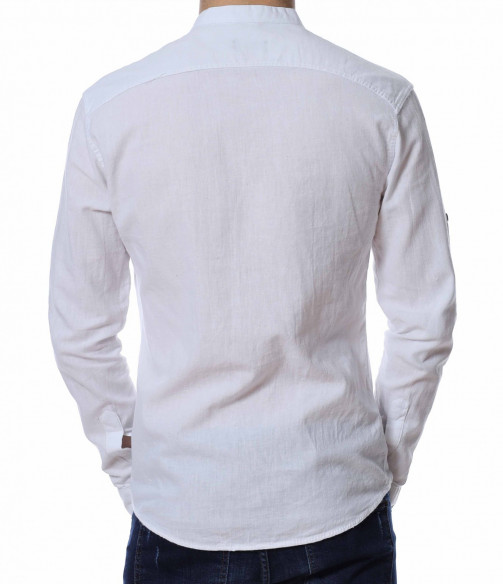 Памучна риза с попска яка 13483 - Бял