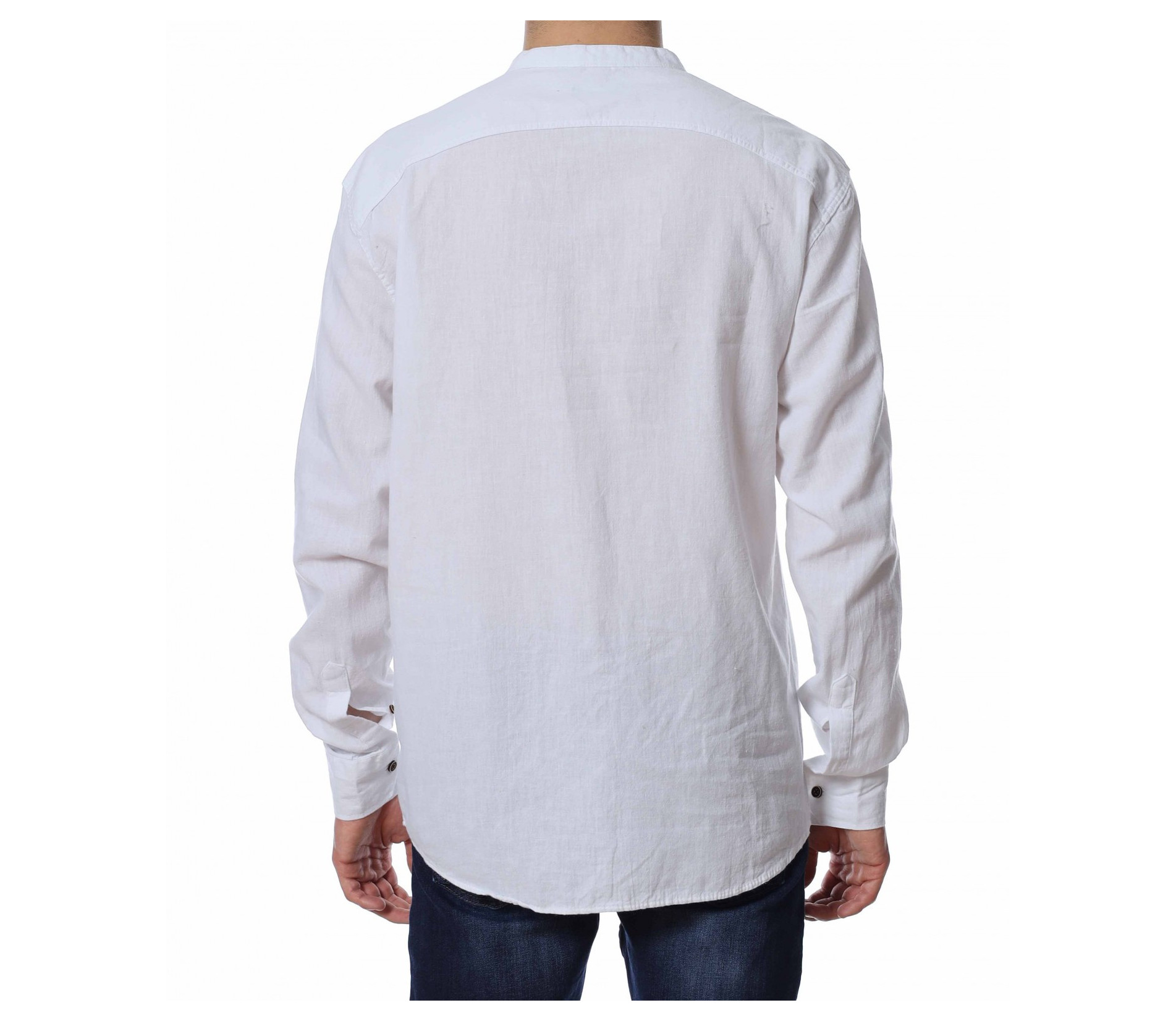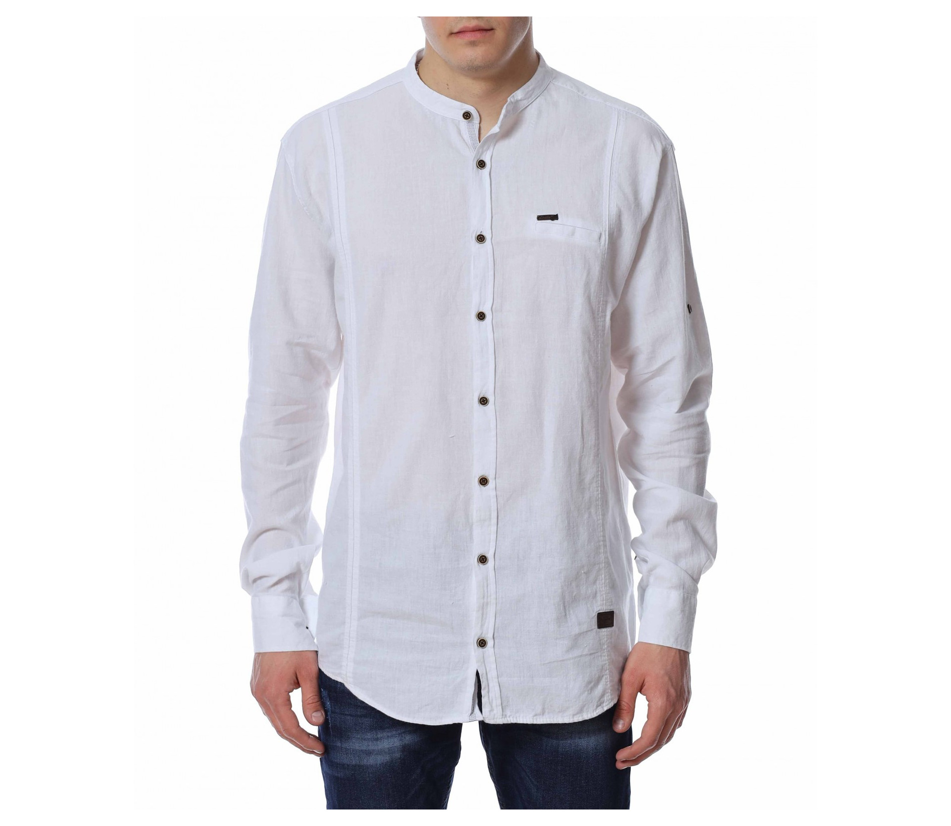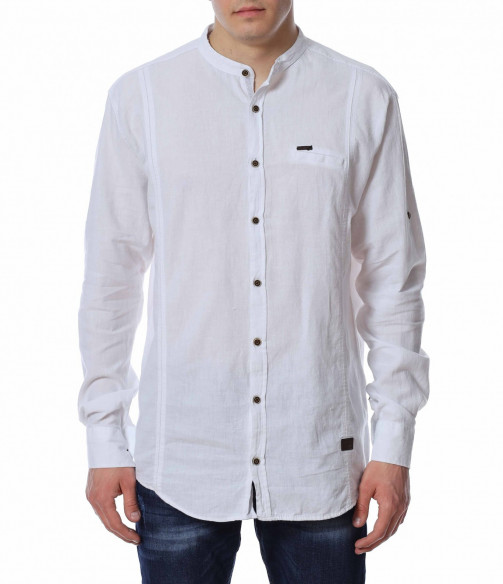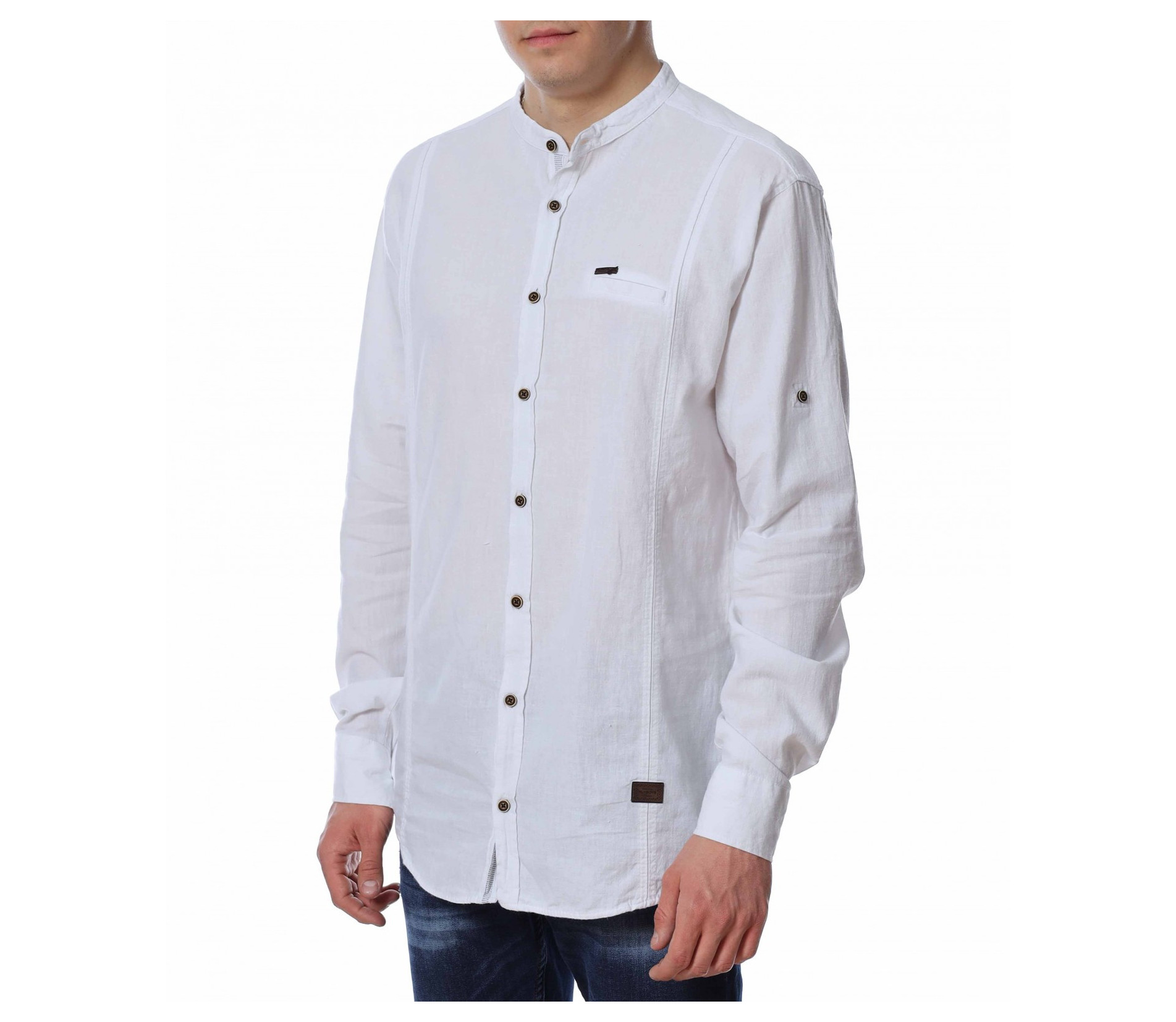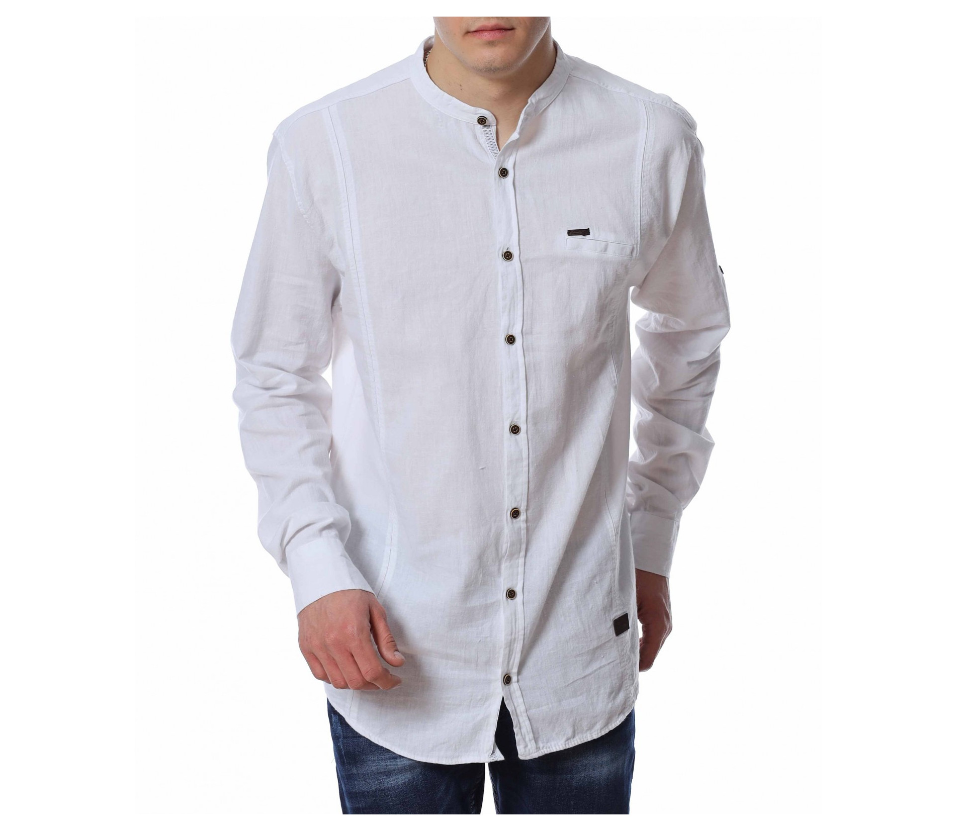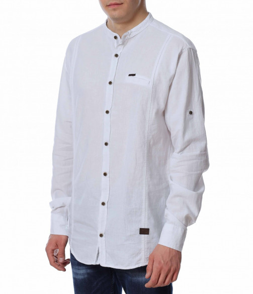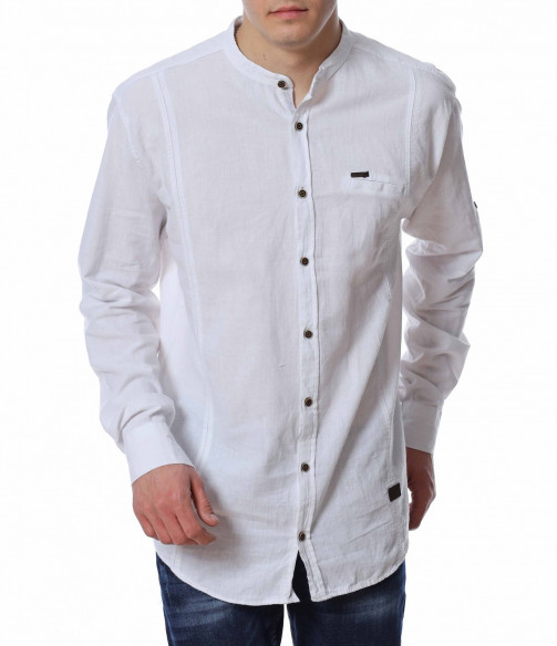 ОПИСАНИЕ НА ПРОДУКТА: Представяме Ви един страхотен модел мъжка риза в три цветови разновидности и големи размери. Кройката на моделa е вталена със стандартна дължина, подходяща за външно и вътрешно носене. В областта на гърдите е поставена малка кожена емблема с логото на марката. Яката на ризата е ниска, тип \"попска\". Като най-силен акцент са ръкавите , които са с възможност за навиване, което я прави изключително практична. Перфектно изработен модел в детайли, от 100% висококачествен памук, който на визия имитира лен. Този модел риза Ви дава  зелена светлина, при съчетаването и с дънки, панталони, обувки и аксесоари, за постигане на перфектен сет с cool-излъчване.
