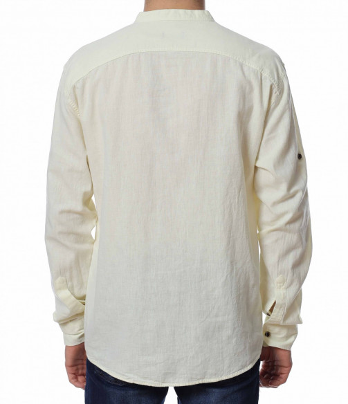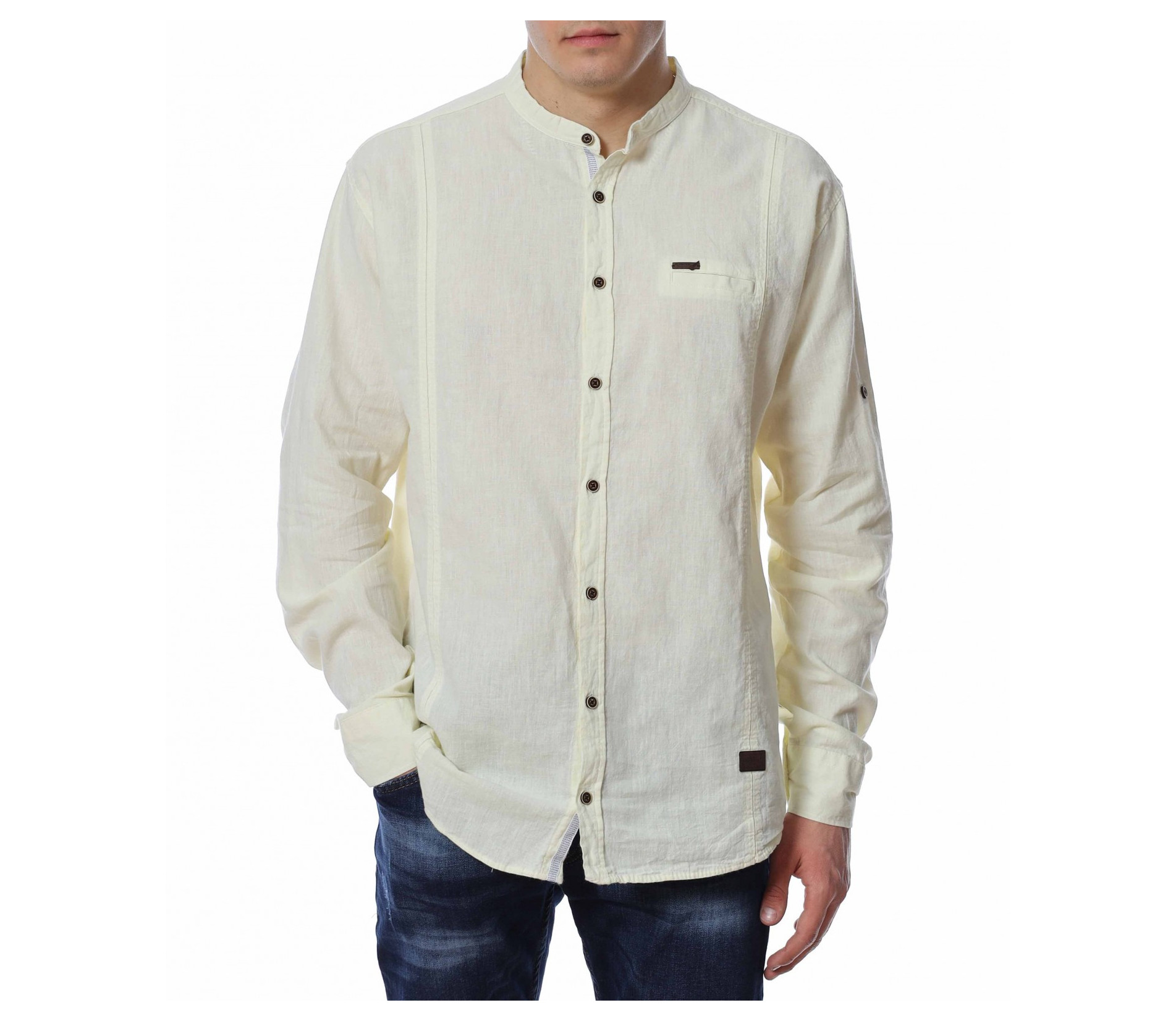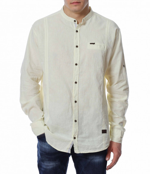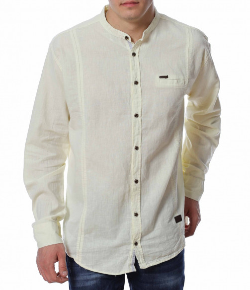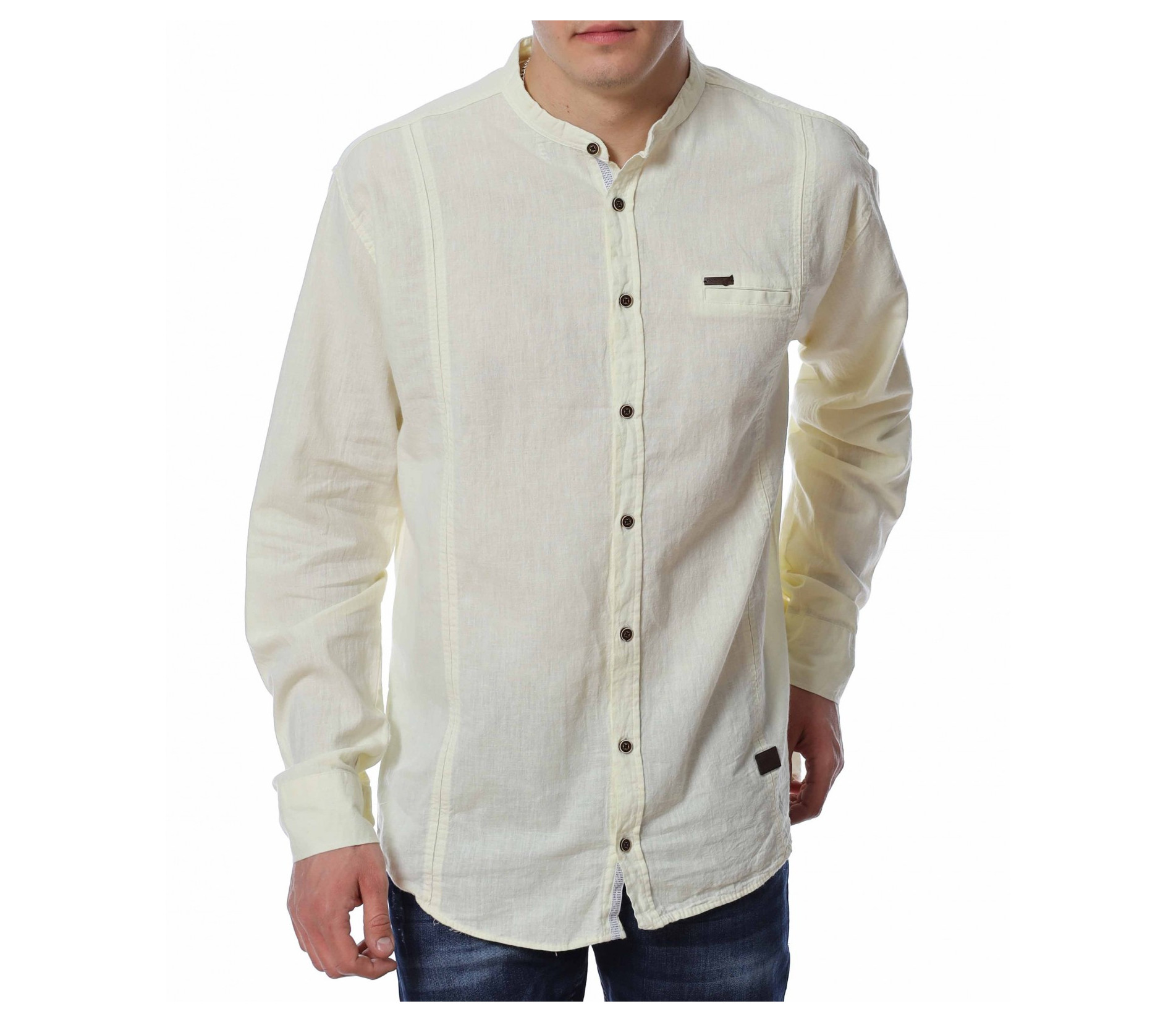 ОПИСАНИЕ НА ПРОДУКТА: Представяме Ви един страхотен модел мъжка риза в три цветови разновидности и големи размери. Кройката на моделa е вталена със стандартна дължина, подходяща за външно и вътрешно носене. В областта на гърдите е поставена малка кожена емблема с логото на марката. Яката на ризата е ниска, тип \"попска\". Като най-силен акцент са ръкавите , които са с възможност за навиване, което я прави изключително практична. Перфектно изработен модел в детайли, от 100% висококачествен памук, който на визия имитира лен. Този модел риза Ви дава  зелена светлина, при съчетаването и с дънки, панталони, обувки и аксесоари, за постигане на перфектен сет с cool-излъчване.