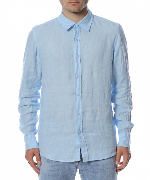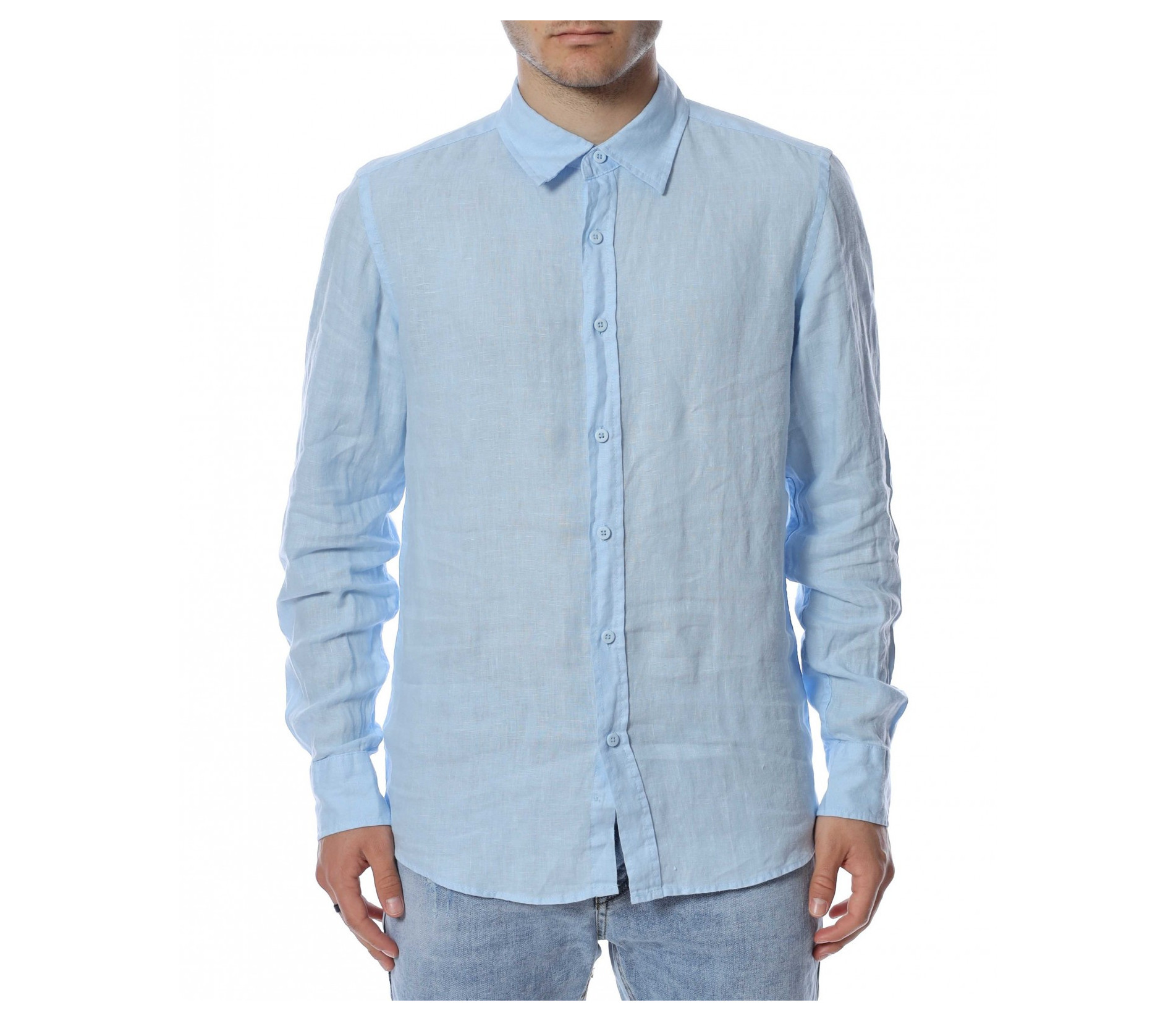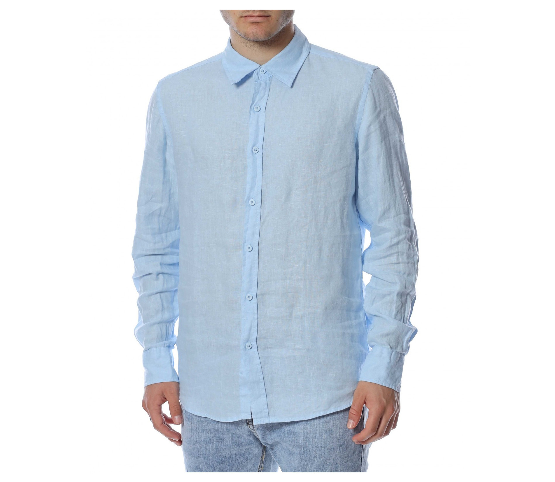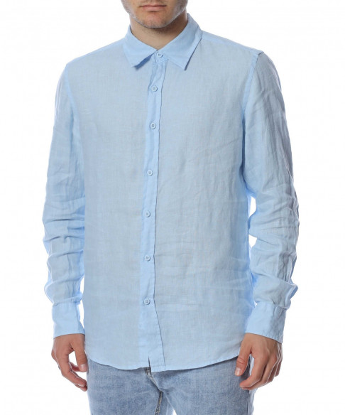 Ленена риза с дълъг ръкав 13758 - Светло син