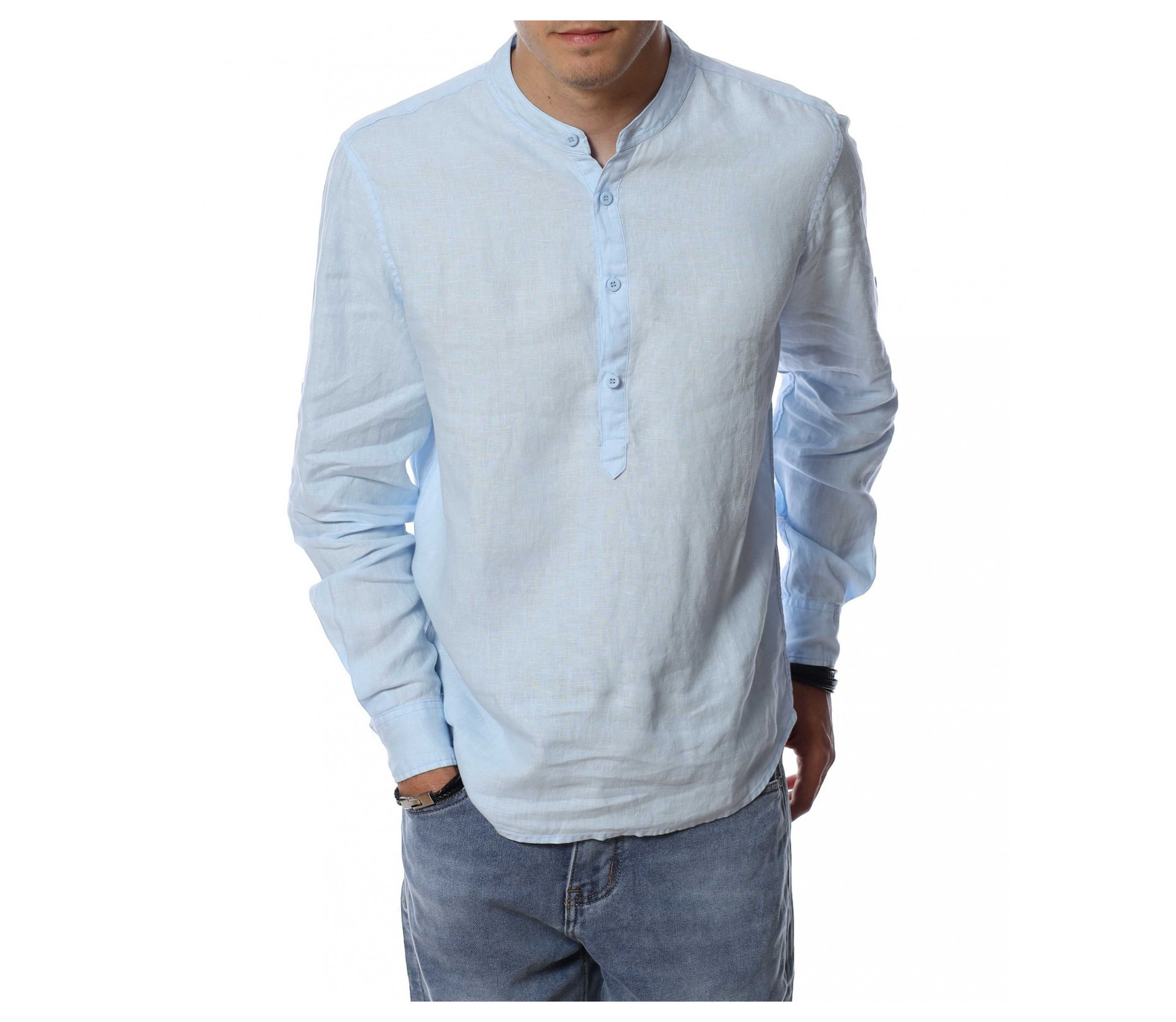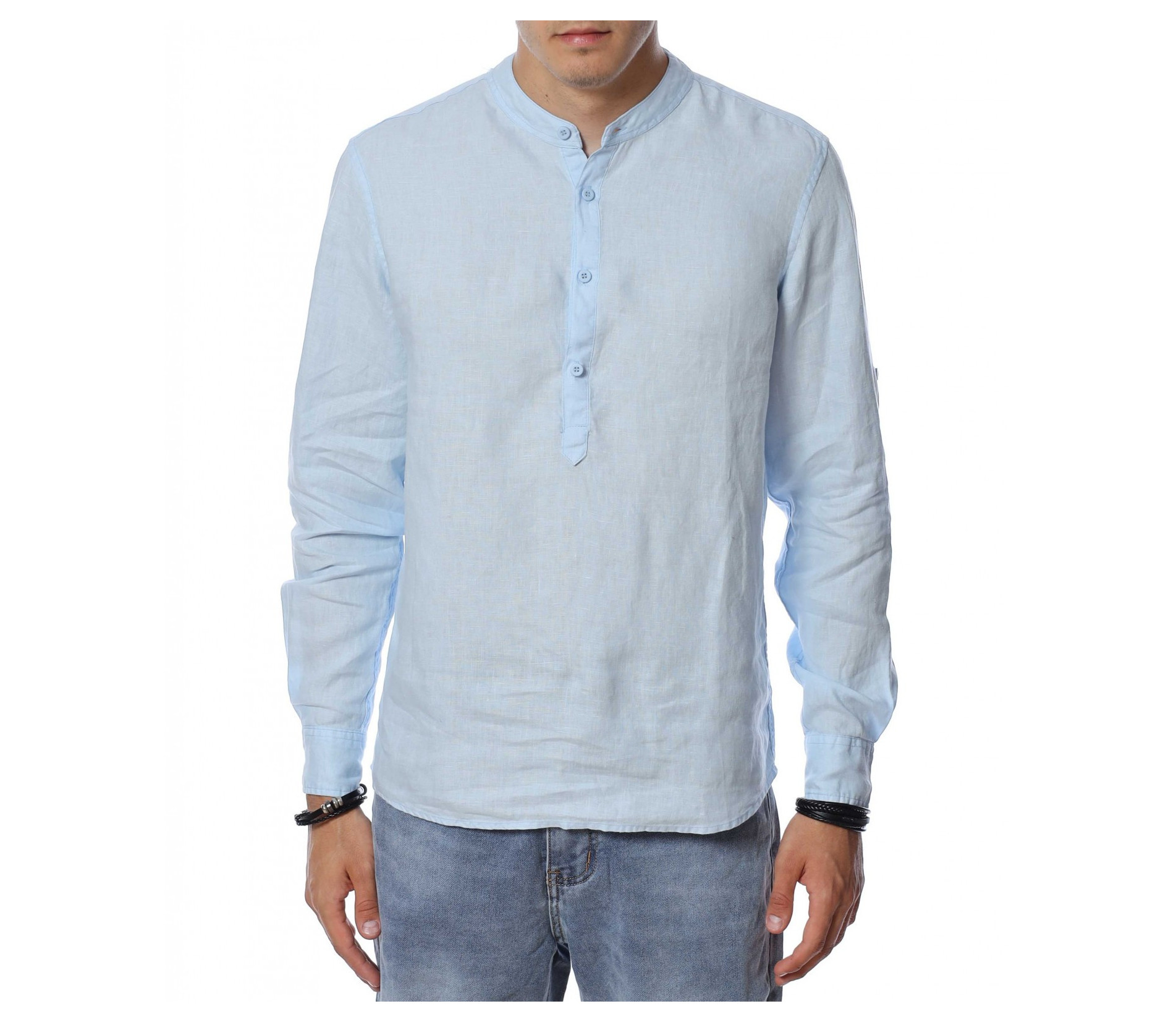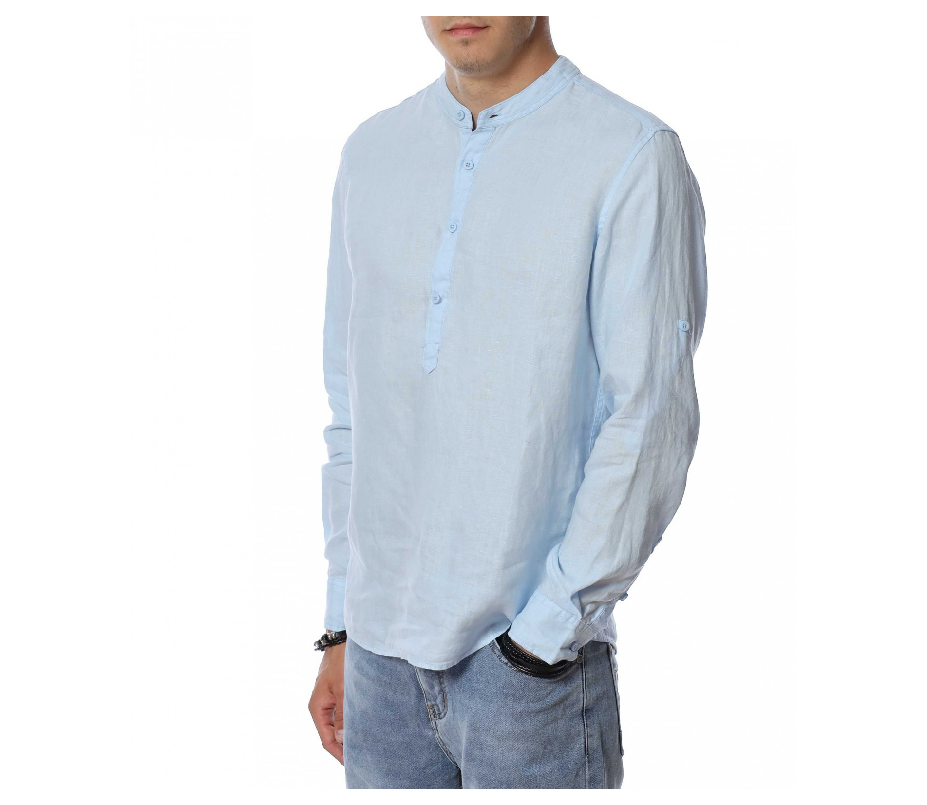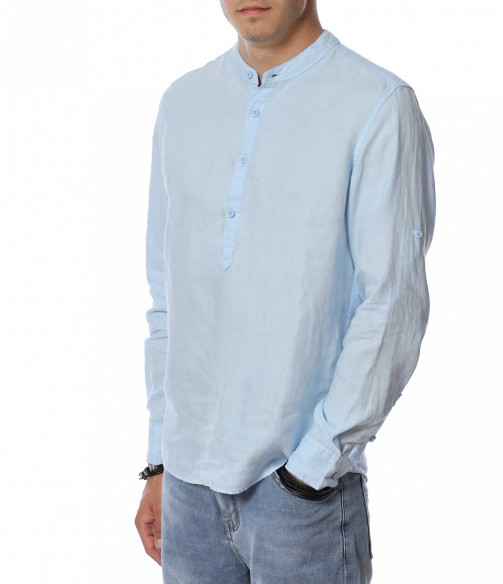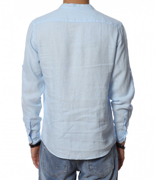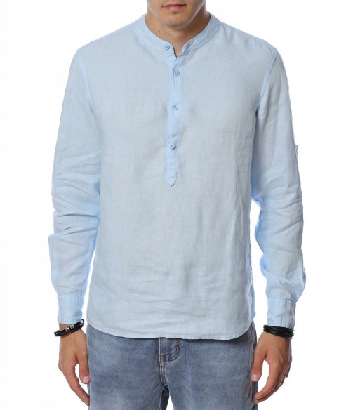 Ленена риза с половин закопчаване 13941 - Светло син
