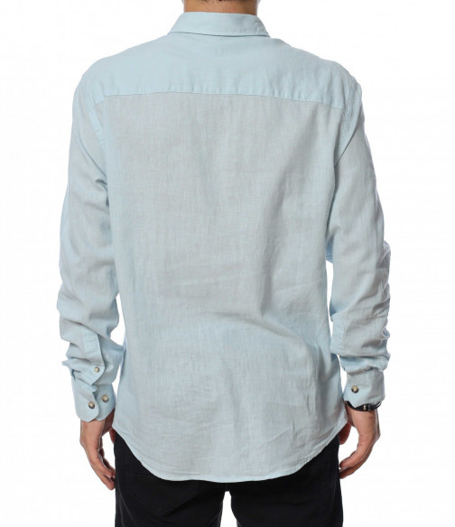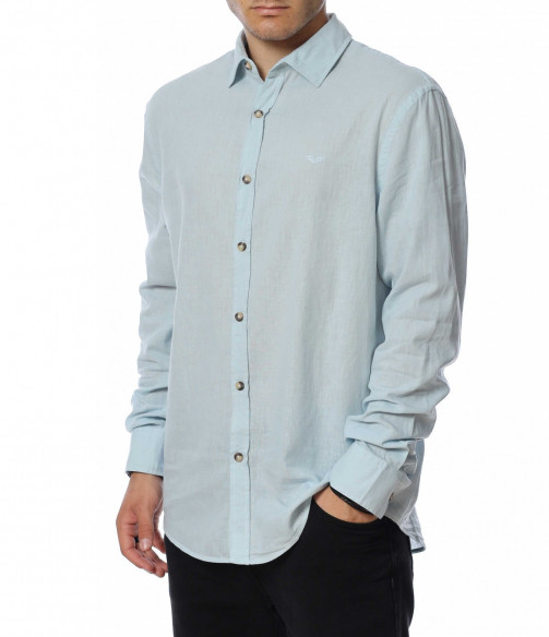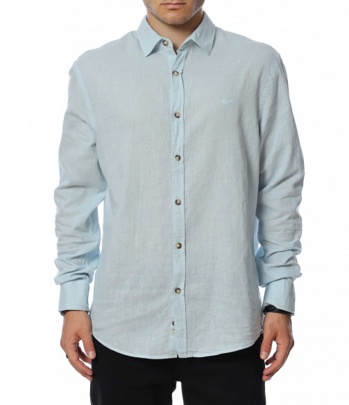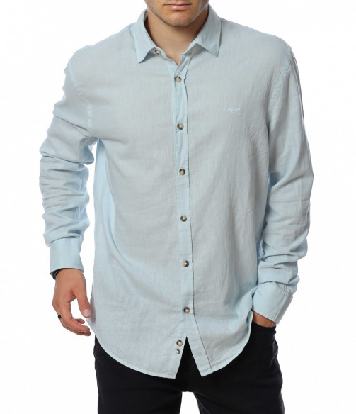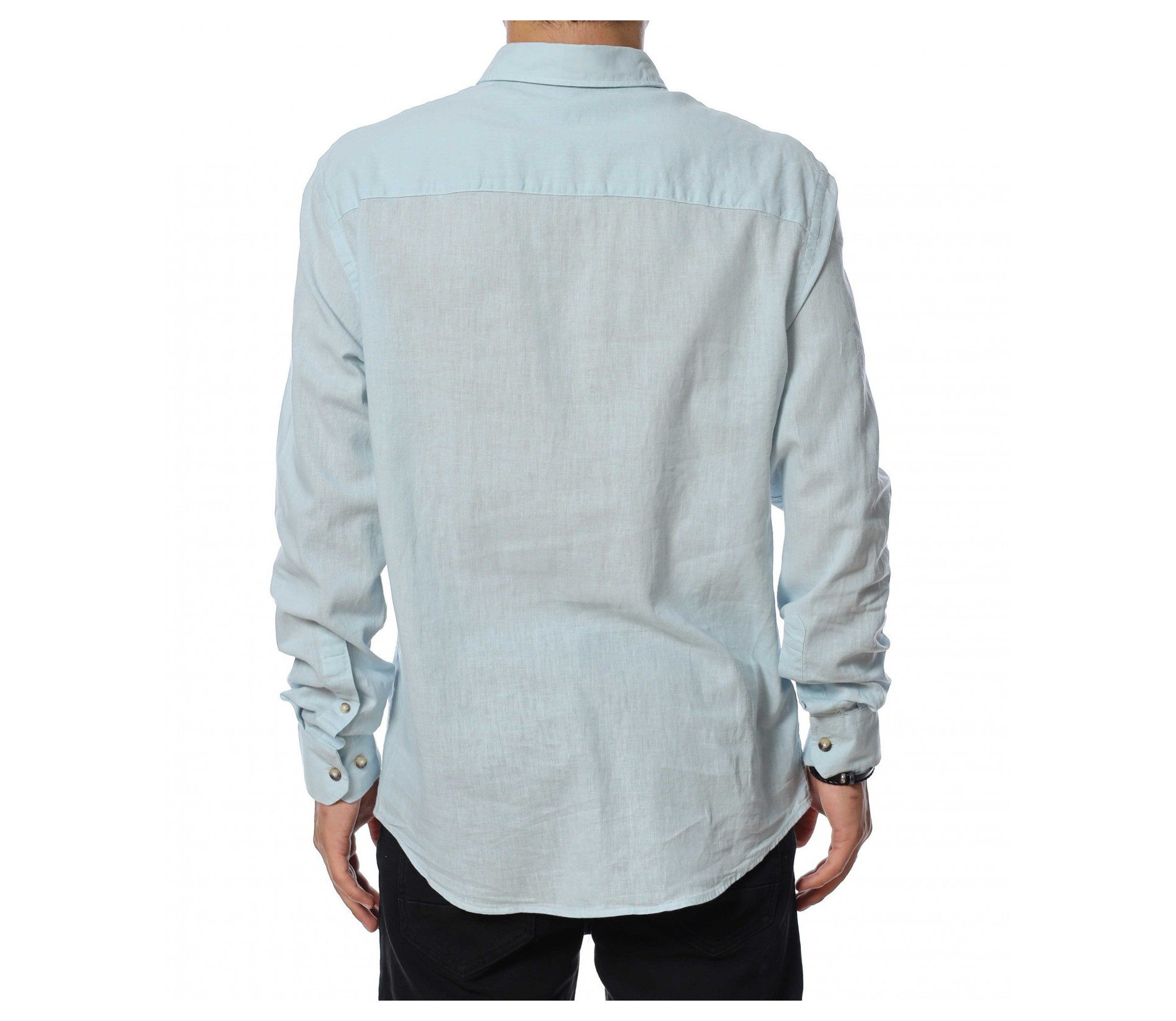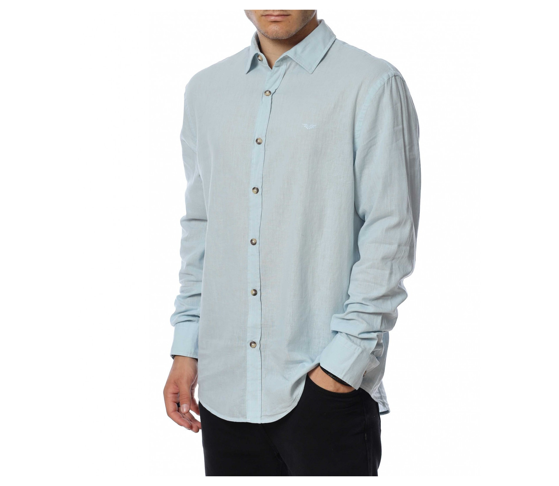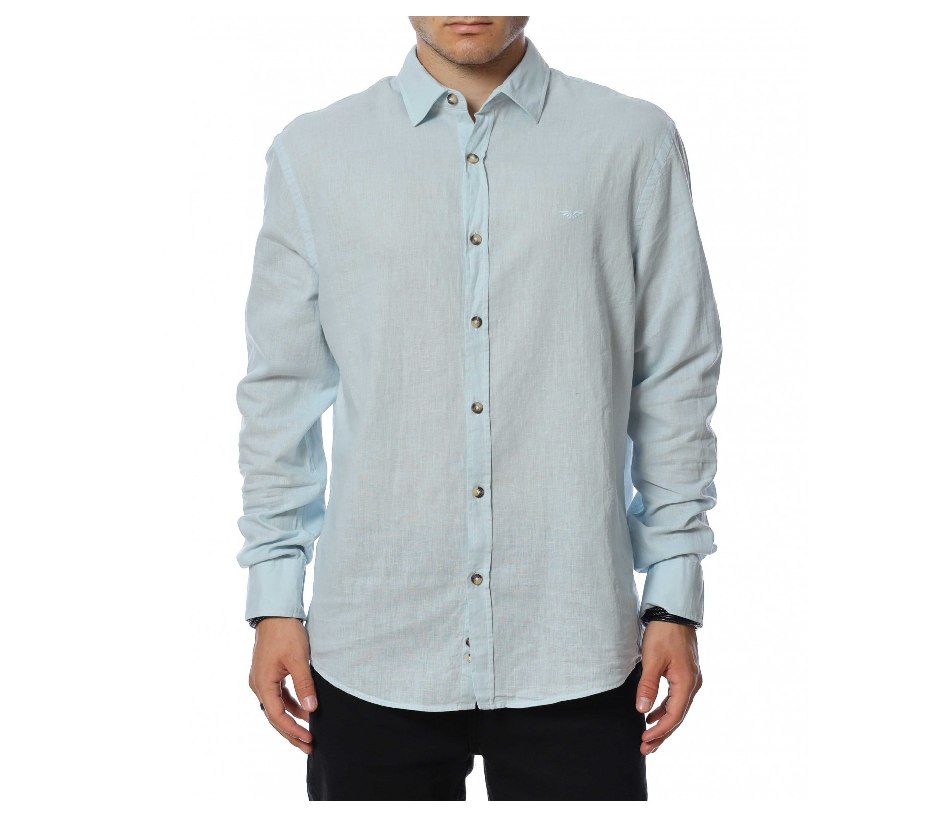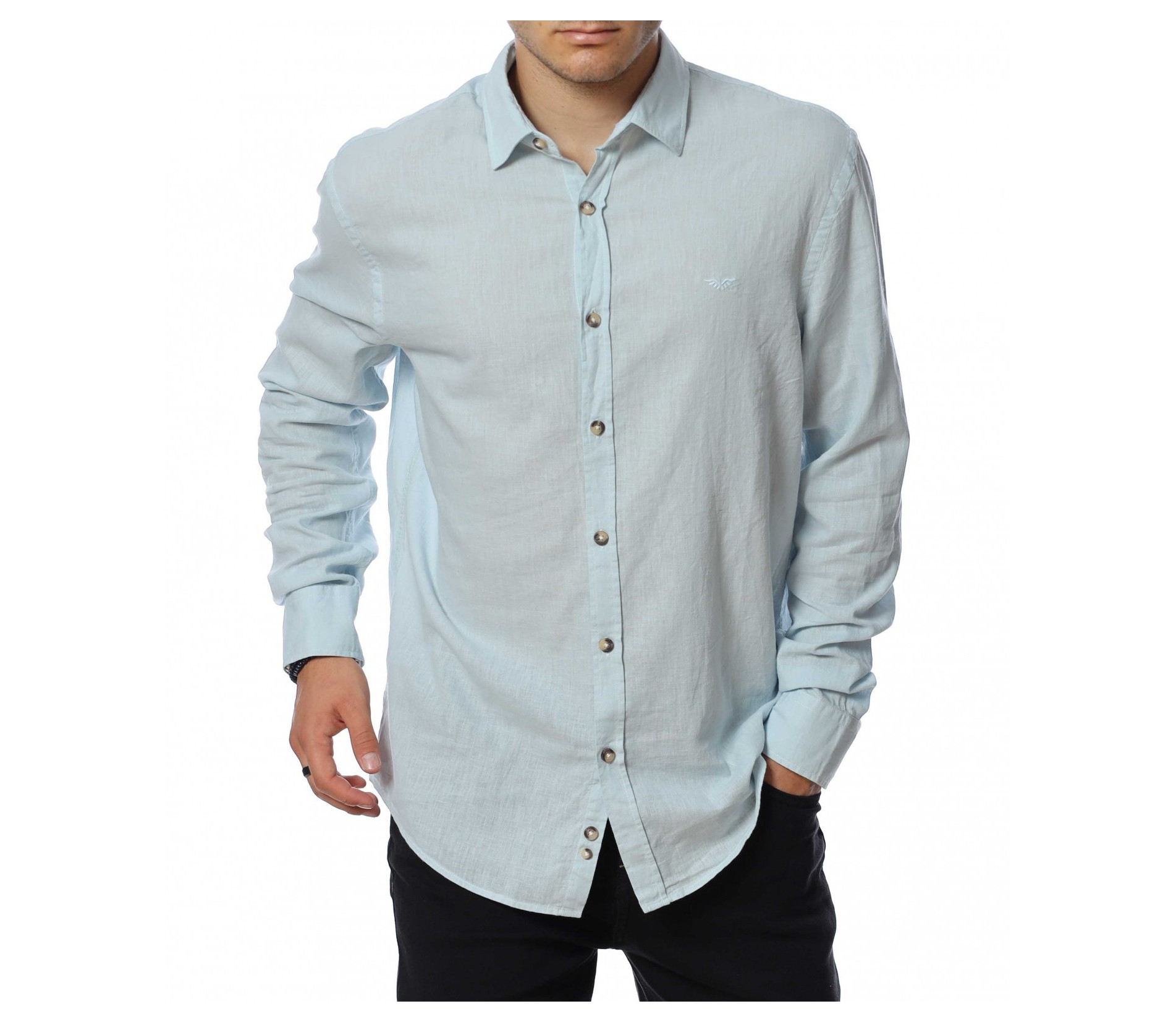 Ленена риза с дълъг ръкав 13969 - Светло син