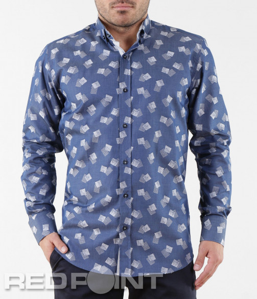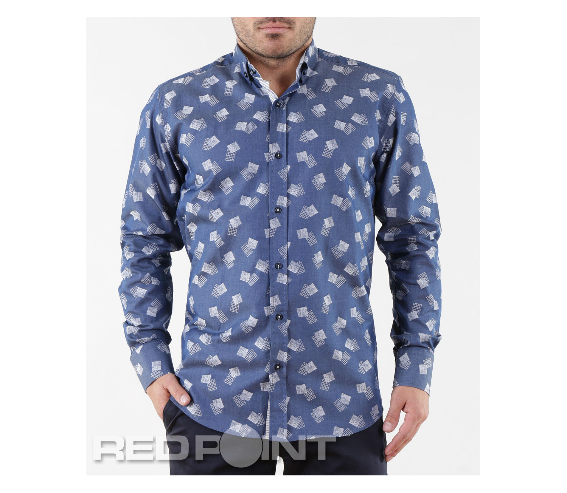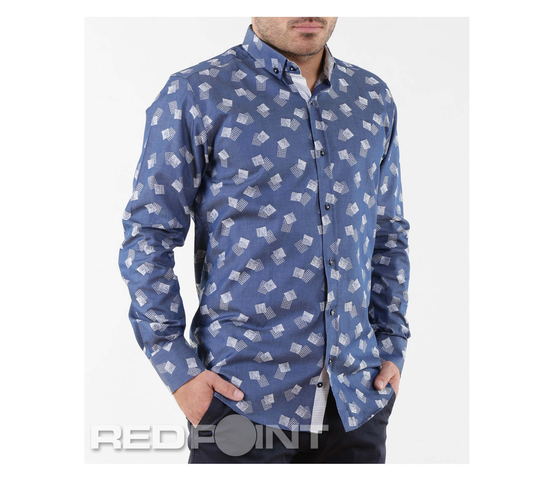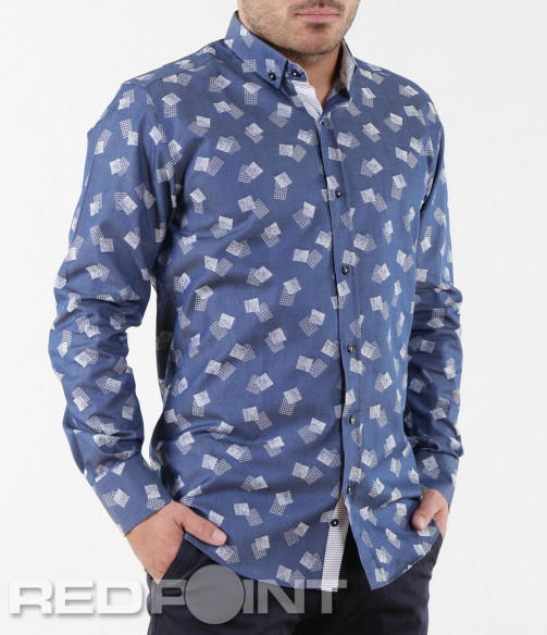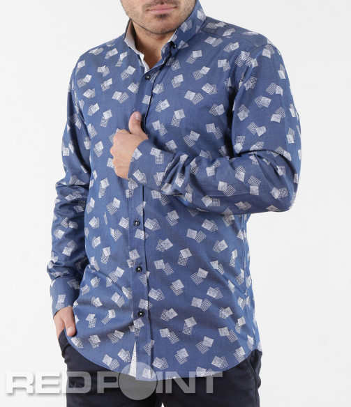 Описание на продукта: Спортно-елегантния стайлинг е на почитното първо място в последните модни течения. Комбинацията на свежа риза и дънки е сред най-предпочитаната, затова Ви представяме този изключителен модел мъжка синя риза. Основата й е декорирана с несиметрично разположени квадрати, които превръщат класическата риза в нещо по-екстравагантно и необикновено. С вталената си кройка, стандартна дължина и свеж принт, мъжката риза впечатлява освен с перфектен външен вид, а и със 100% гаранция за комфорт и качество. Закопчаването на моделът се състои от вертикално разположени малки копчета, които са и завършителен акцент. Перфектното съчетание може да получите с изчистени дънки, чифт боти и спортно-елеганто яке.