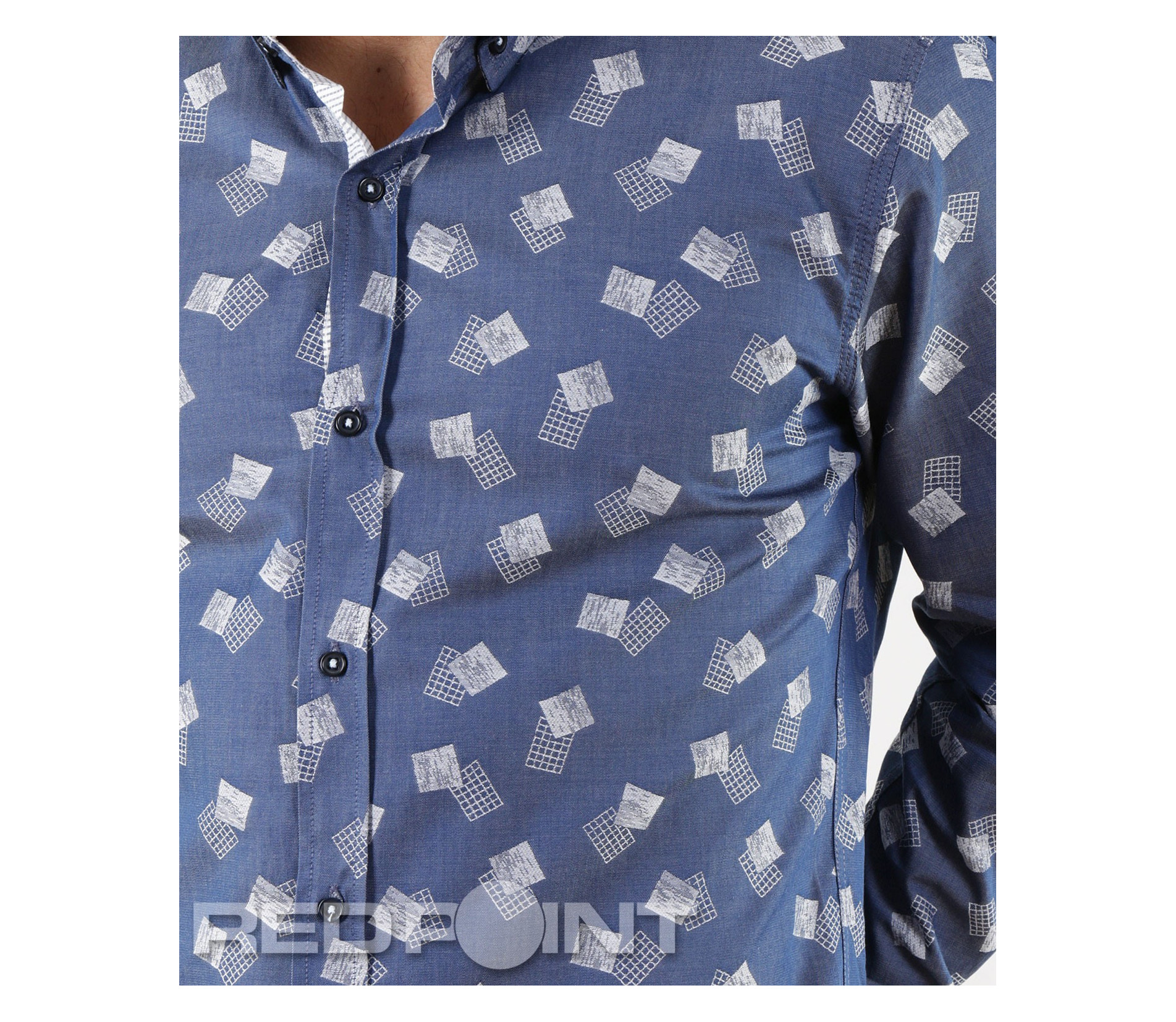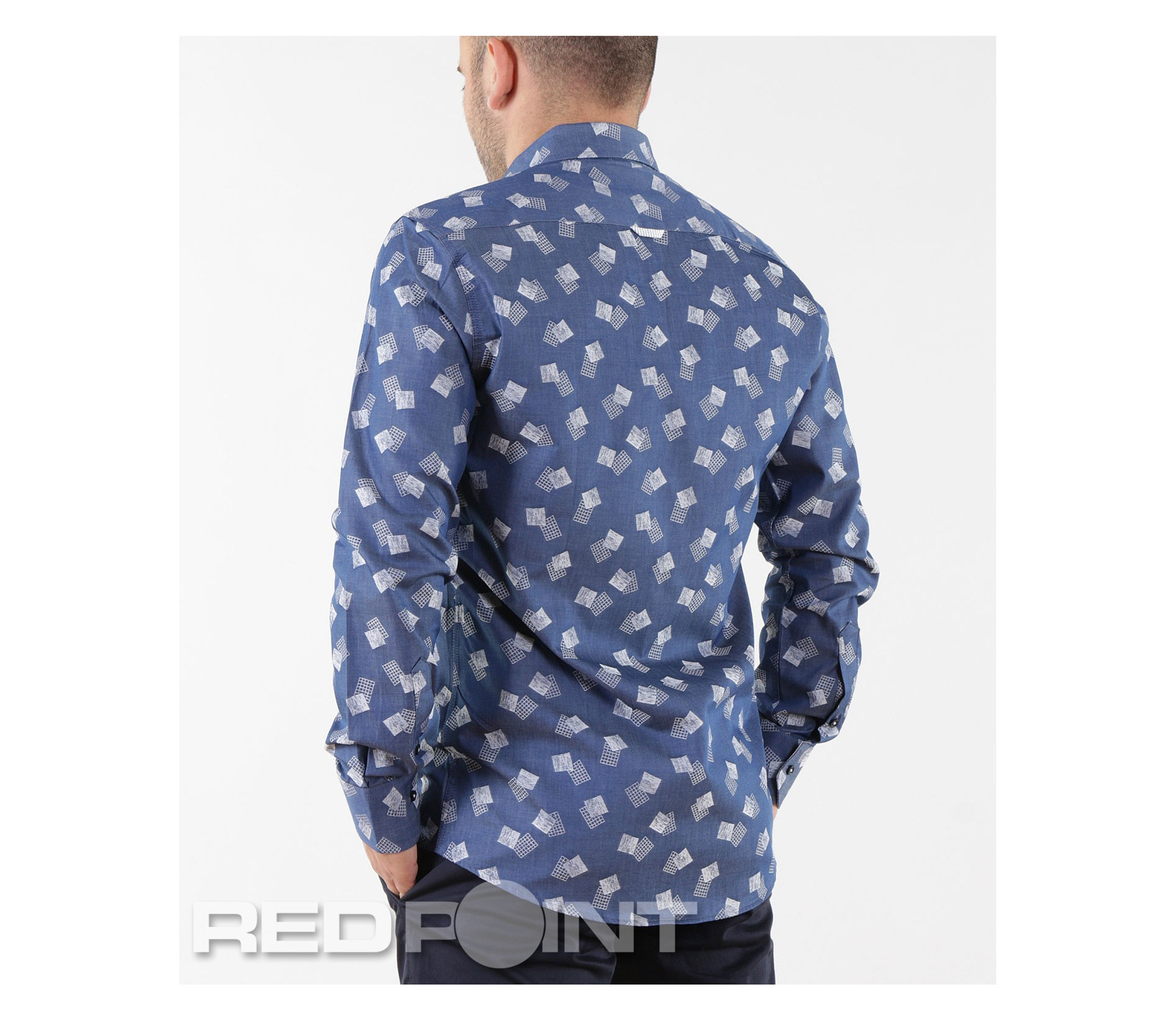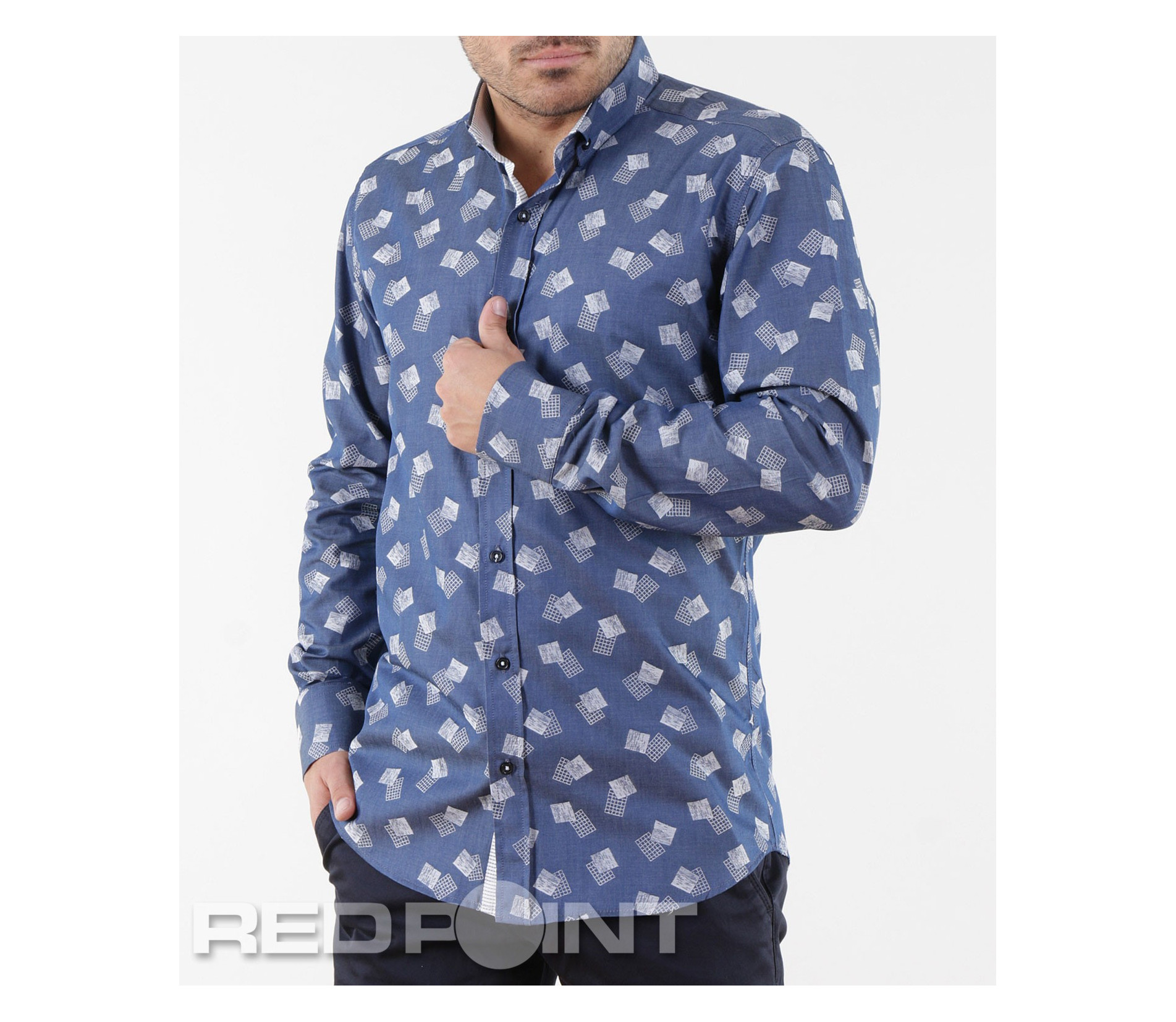 Описание на продукта: Спортно-елегантния стайлинг е на почитното първо място в последните модни течения. Комбинацията на свежа риза и дънки е сред най-предпочитаната, затова Ви представяме този изключителен модел мъжка синя риза. Основата й е декорирана с несиметрично разположени квадрати, които превръщат класическата риза в нещо по-екстравагантно и необикновено. С вталената си кройка, стандартна дължина и свеж принт, мъжката риза впечатлява освен с перфектен външен вид, а и със 100% гаранция за комфорт и качество. Закопчаването на моделът се състои от вертикално разположени малки копчета, които са и завършителен акцент. Перфектното съчетание може да получите с изчистени дънки, чифт боти и спортно-елеганто яке.