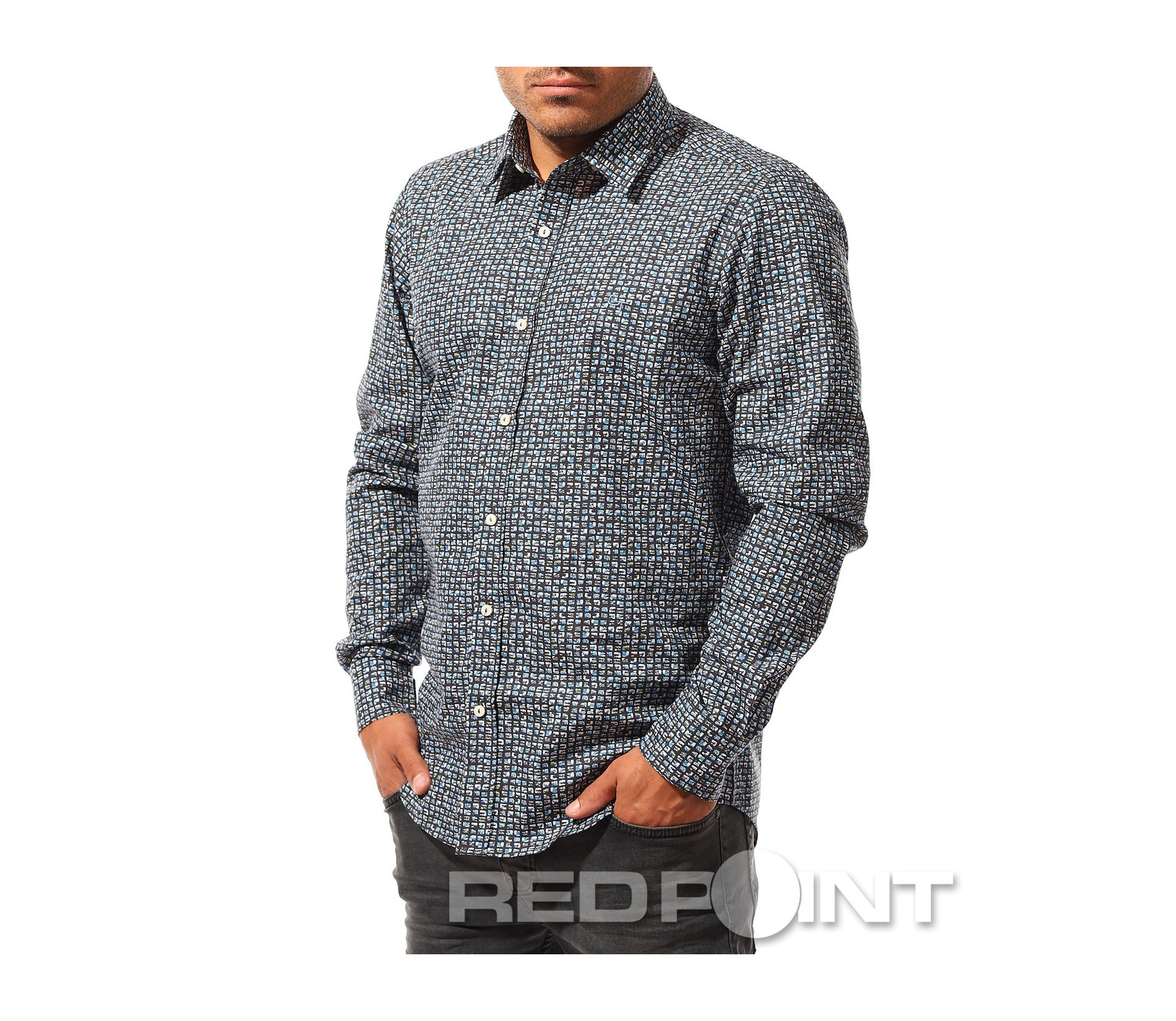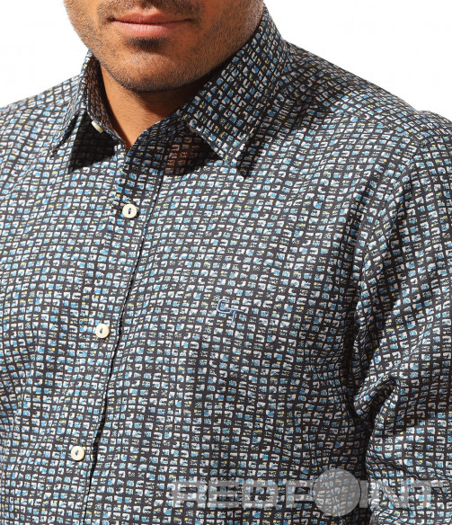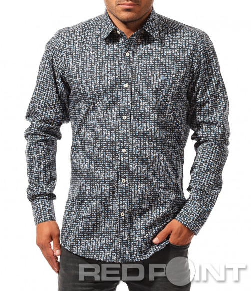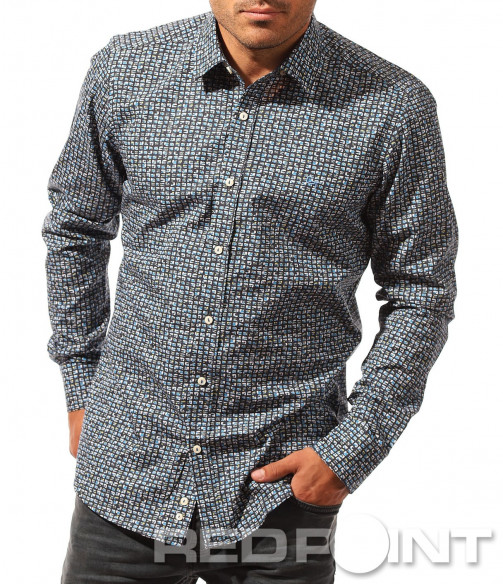 Описание на продукта: Независимо дали в ежедневния, офисиния или просто при суздаването на клубния Ви имидж имате нужда от риза, е задължително да подбирате моделите така, че да се чуовстате максимално в \"свои вводи\". Този модел е изграден изцяло по образ и предпочитания на тези от Вас, които са фенове на по-щурата и запомняща се визия. Макар и в класически дизайн, в лицето на леко вталена линия, стандартно закопчаване, включващо вертикално разположени копчета, пренесени и към ръкавите заедно с класическа яка, ввизията на този шърт може да Ви изненада. Основата му е поверена на пъстротата на лятото, за да оставяме топлия спомен от него. Включените малки квадратчета по цялата основа, декорирани с преливащи сини нюанси пресъздават така нужното ни настроение през по-студената част от годината. Възможността за широкото приложение е допълнителната причина да се сдобиете с един от най-любимите ни модели за тази година.