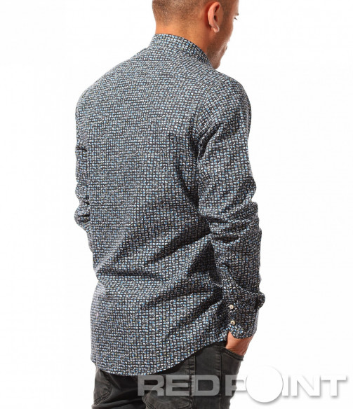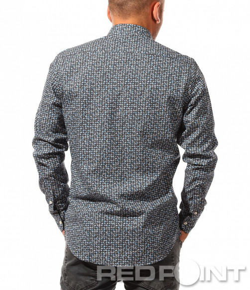 Ефектна риза с принт 8455 - Син