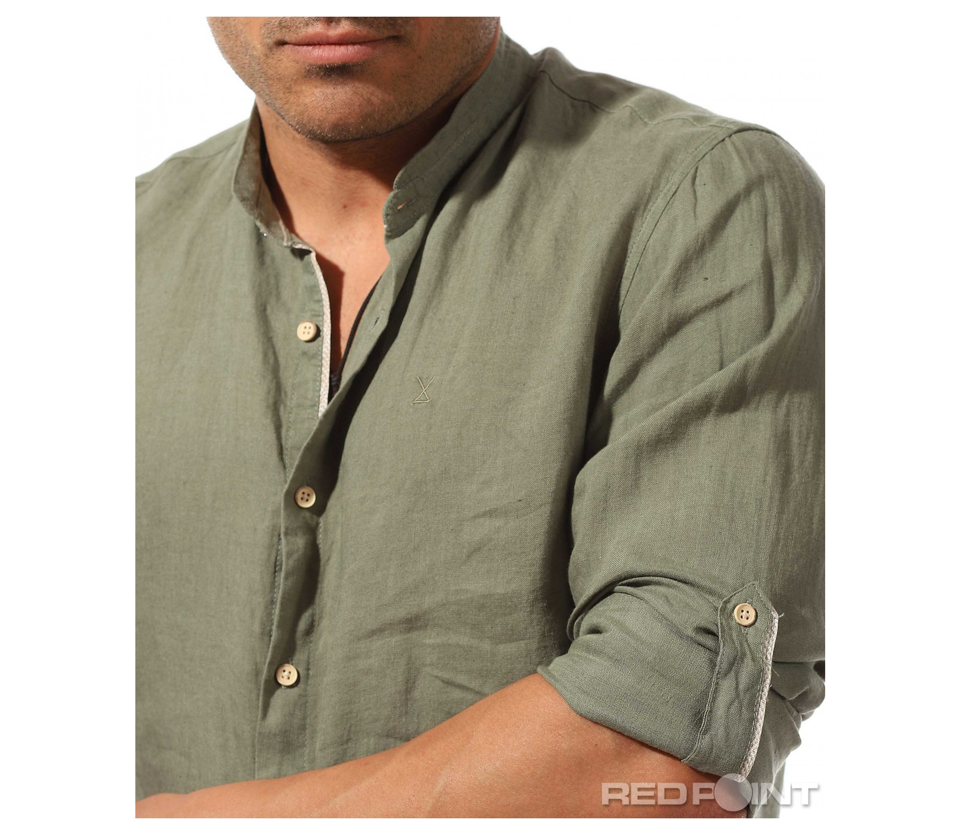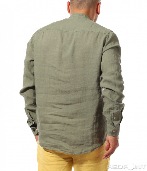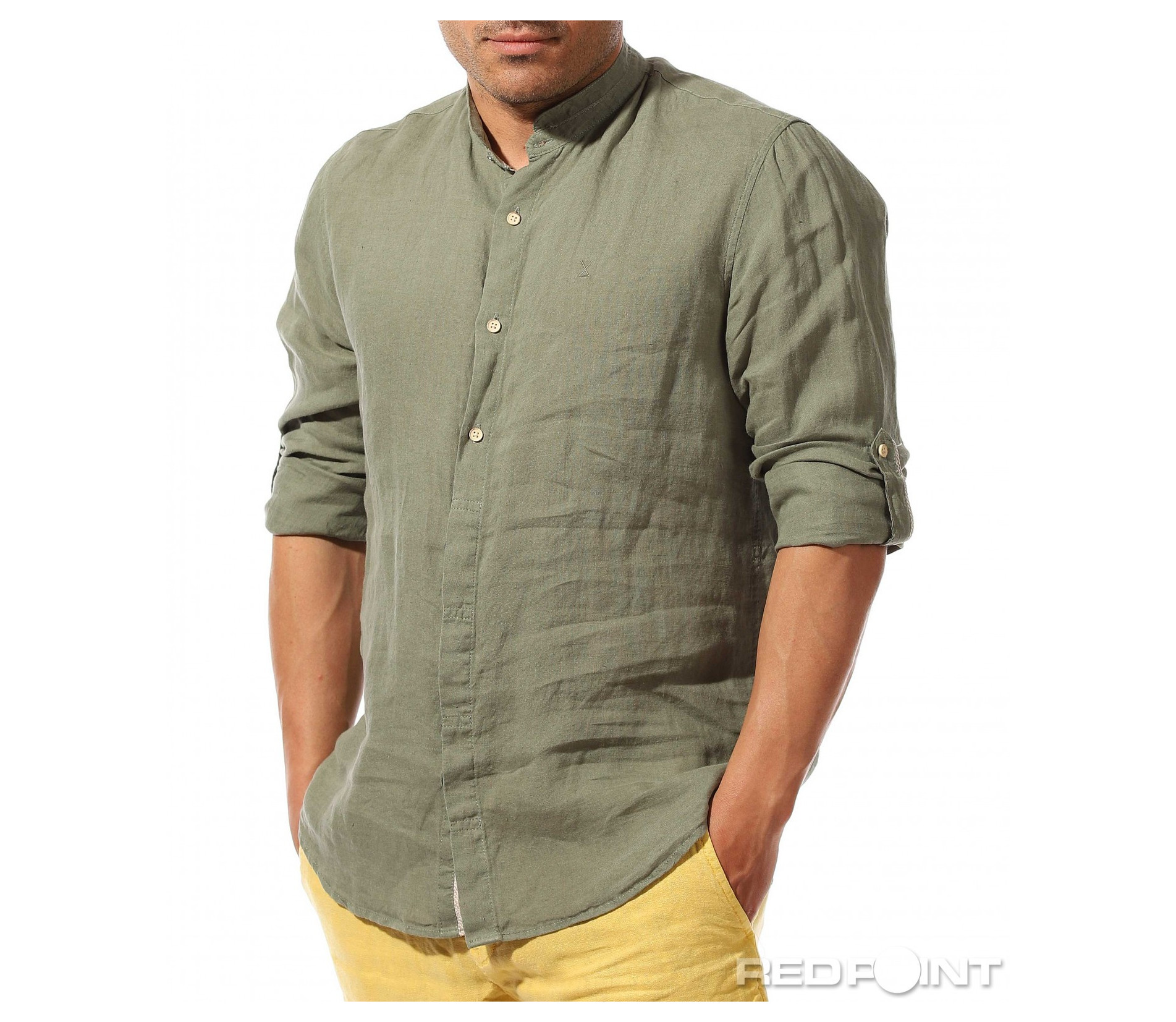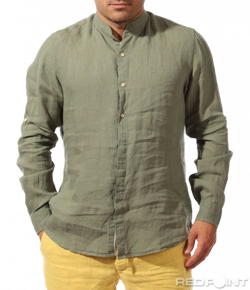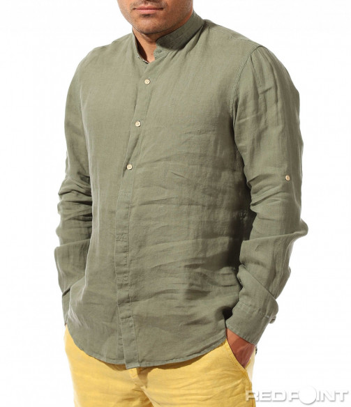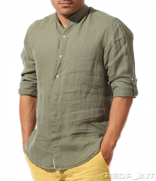 Описание на продукта: Плавно преминаваме и към по-елегантната част от мъжкия гардероб. Ако не сте фен на строгите и класически дрехи, които не пасват на ежеденвието или вкуса Ви, то ние имаме правилното решение, което ще вдъхне доза ефектност, без да нарушава комфротта Ви. Този модел мъжка ленена риза изгражда напълно нов облик заради актуалният и различен вид. Основата и е поверена на тютюнеявия цвят, който създава и вгражда urban визия, която лесно може да прилегне на всеки вкус. Яката на shirt-a е ниска, тип попска, от която в продължението и надолу се спуска и закопчаването. То се състои от няколко външни копчета, стигащи до средата на гърдите, а останалите надолу са покрити от маншет. Видните копчета са изпъстрени в светлокафяв цвят, който перфектно се съчетава с основата. Мотивът от тях е пренесен и към ръкава, където е разположено по едно, с помощта на което може лесно да подвиете ръкава.