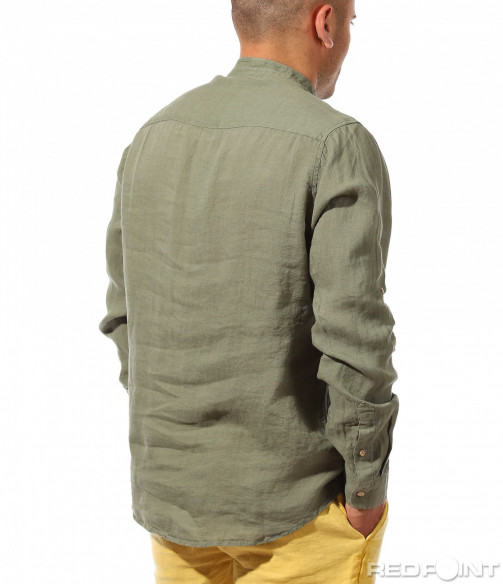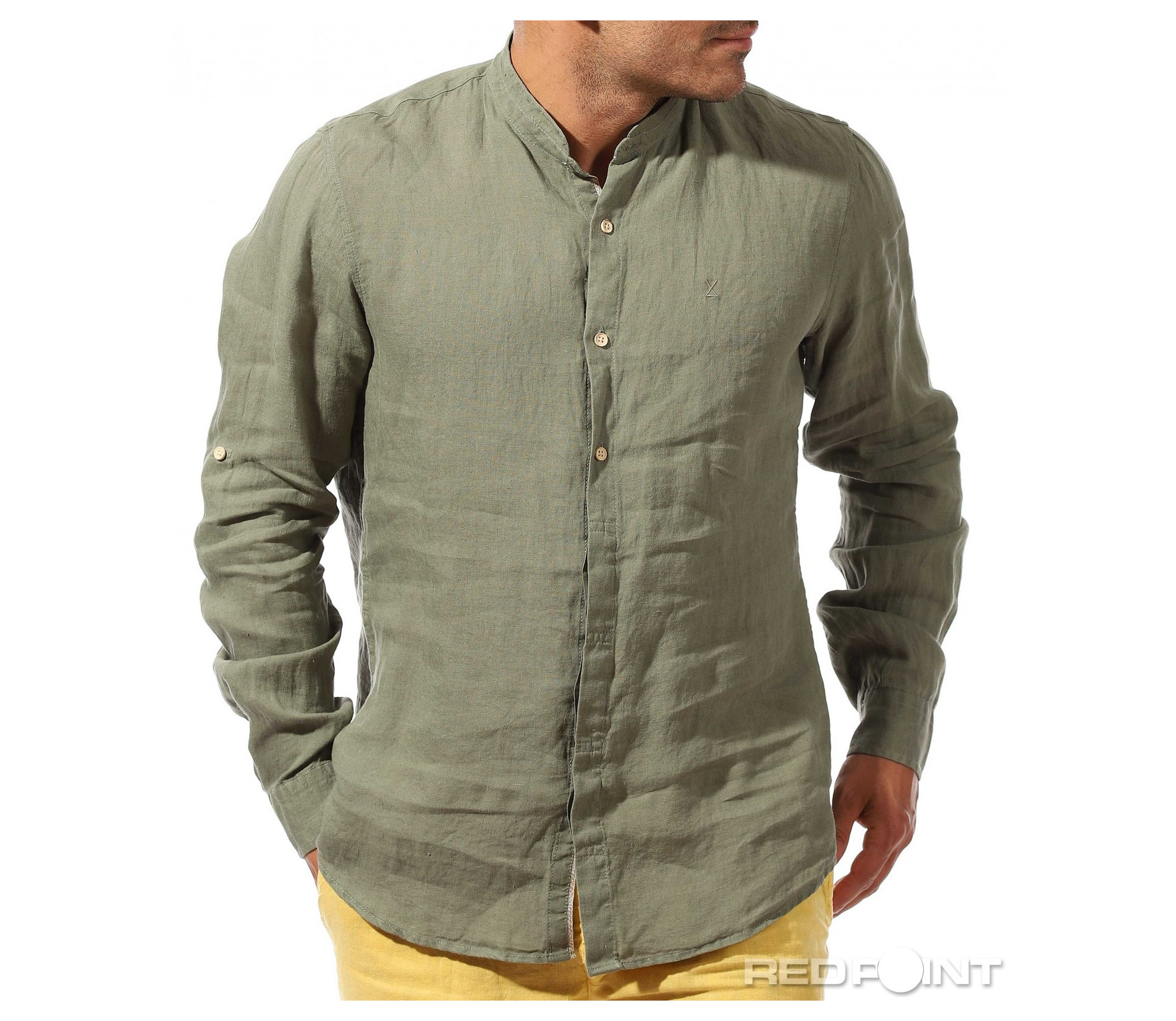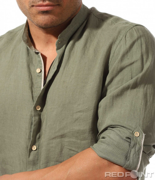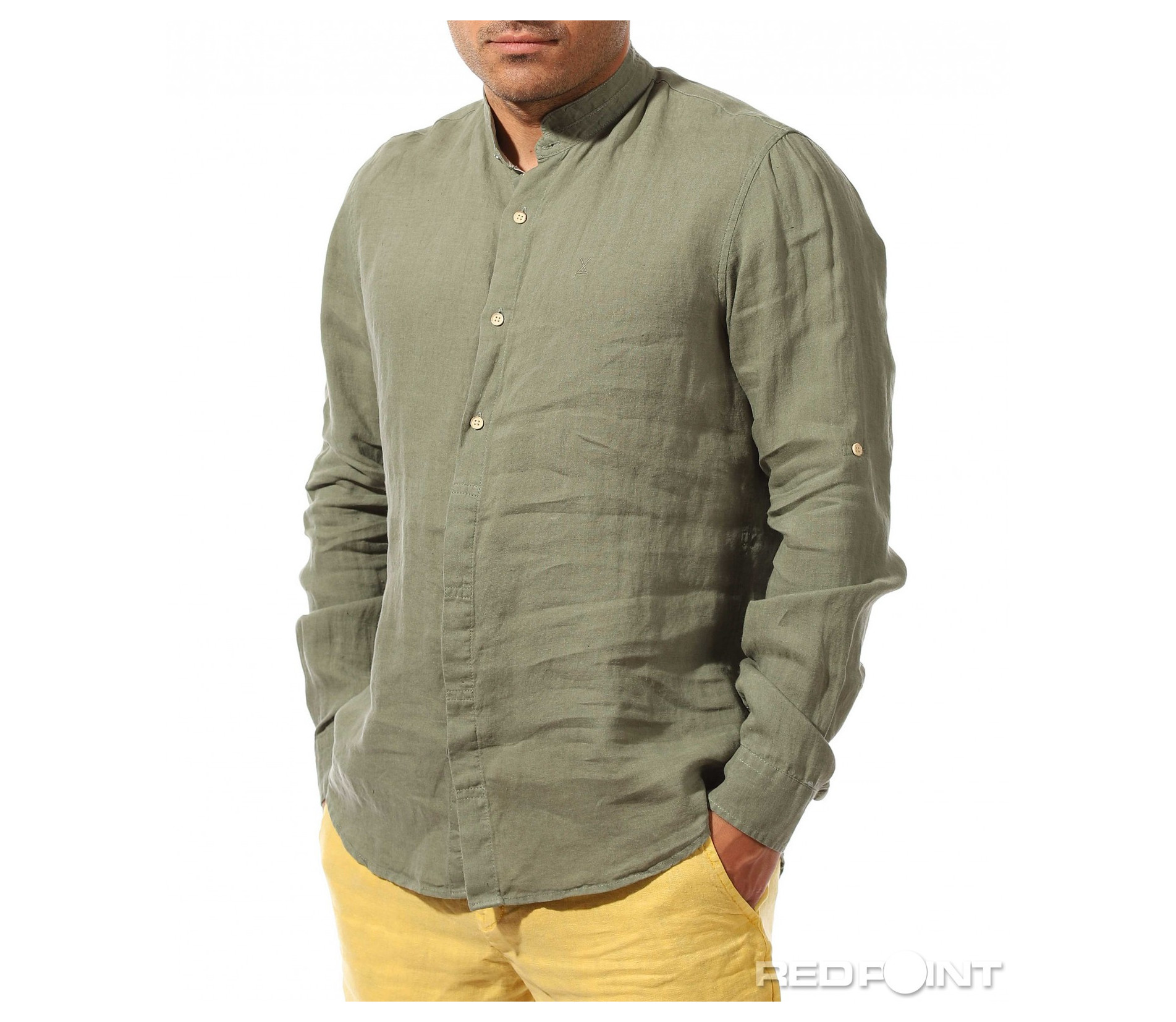 Описание на продукта: Плавно преминаваме и към по-елегантната част от мъжкия гардероб. Ако не сте фен на строгите и класически дрехи, които не пасват на ежеденвието или вкуса Ви, то ние имаме правилното решение, което ще вдъхне доза ефектност, без да нарушава комфротта Ви. Този модел мъжка ленена риза изгражда напълно нов облик заради актуалният и различен вид. Основата и е поверена на тютюнеявия цвят, който създава и вгражда urban визия, която лесно може да прилегне на всеки вкус. Яката на shirt-a е ниска, тип попска, от която в продължението и надолу се спуска и закопчаването. То се състои от няколко външни копчета, стигащи до средата на гърдите, а останалите надолу са покрити от маншет. Видните копчета са изпъстрени в светлокафяв цвят, който перфектно се съчетава с основата. Мотивът от тях е пренесен и към ръкава, където е разположено по едно, с помощта на което може лесно да подвиете ръкава.